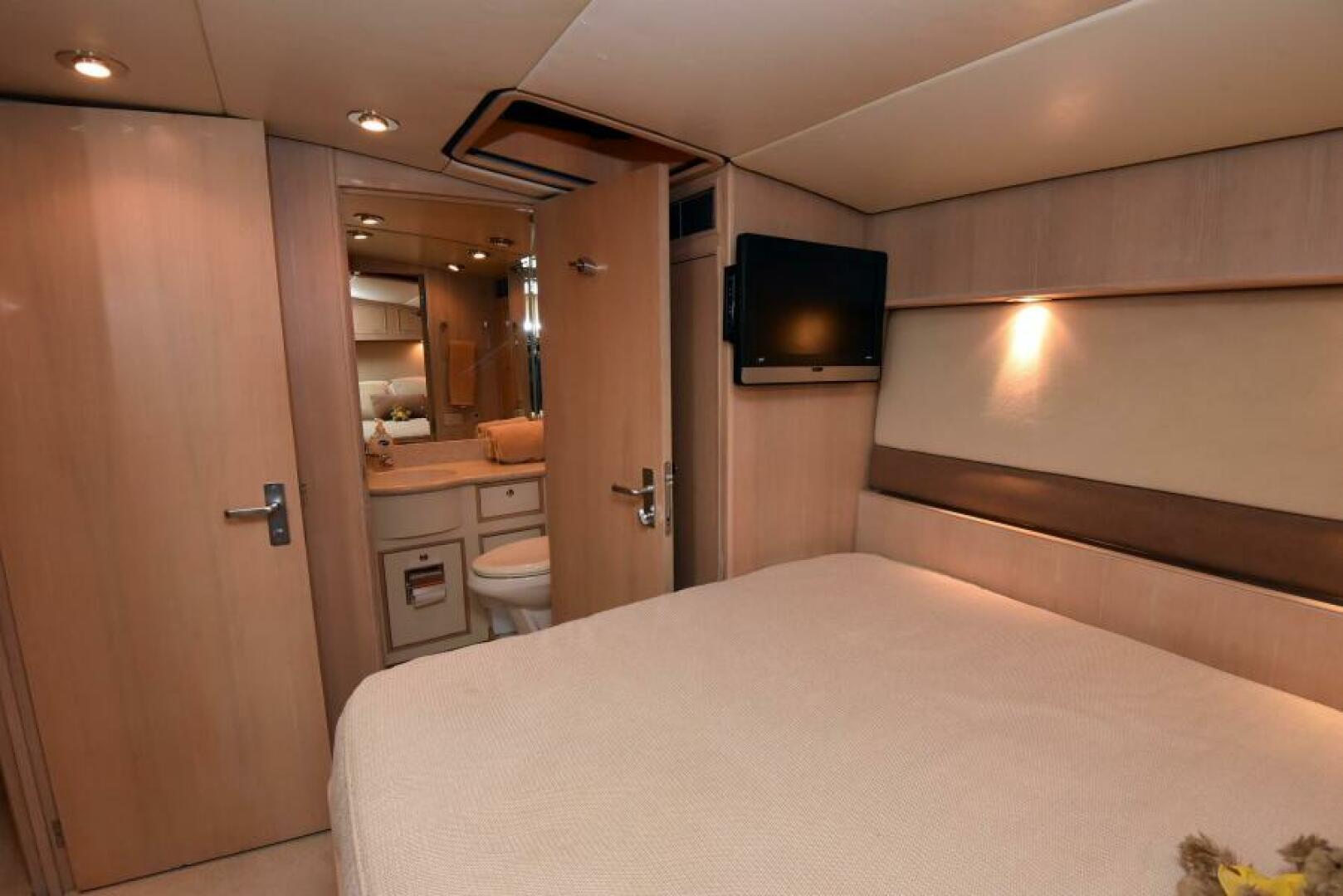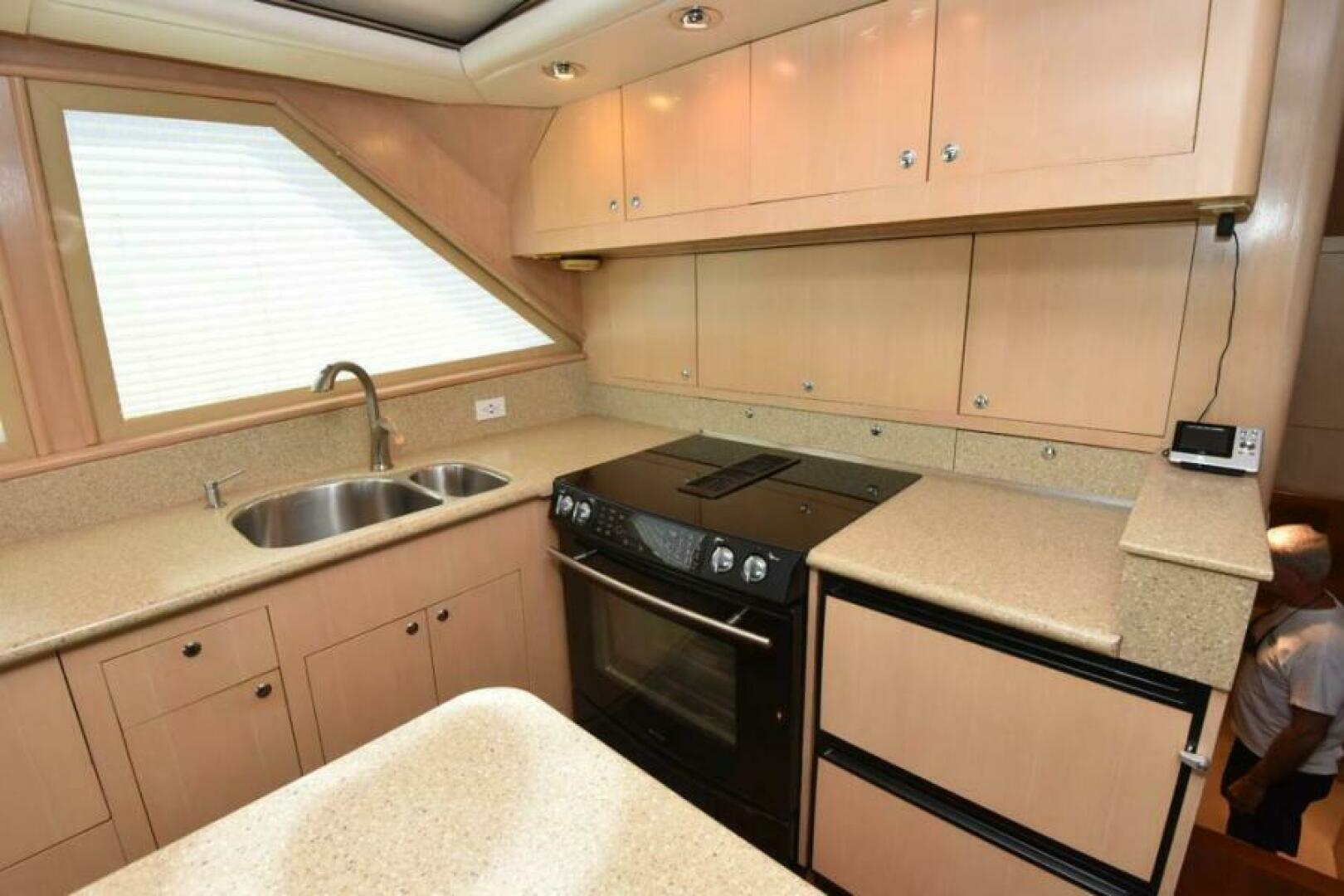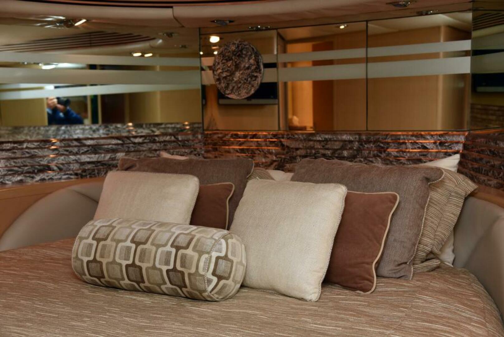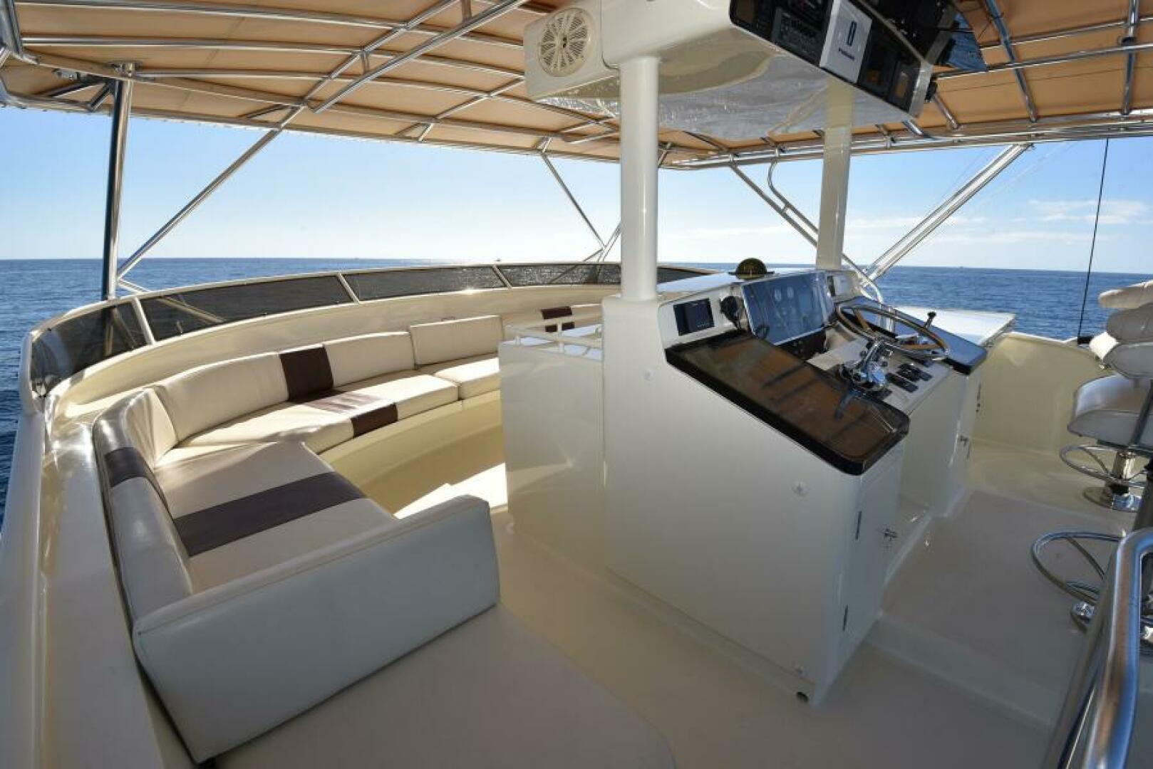 "TALISMAN" has been completely refurbished, in and out. The interior is stunning, upon entering the salon through automatic doors which creates a 6' wide passageway and combines the cockpit and salon into one huge indoor/outdoor unit, the first thing you'll notice are the polished teak flooring throughout. The interior is huge, with 6'8" headroom and with full advantage taken of the 21' beam. New countertops & cabinetry in the galley. Custom dinette with table and seating for (7-8), Galley Island for extra counter space. There is a Dayhead in the salon with access from both salon and cockpit. Sleeps 6 in 3 stateroom, 4 head layout. Large Master forward with King berth, VIP stateroom to starboard with double berth and bunk room to port, each with ensuite head and shower. The Master stateroom forward has a centerline King berth, His & Hers hanging lockers, custom teak flooring around berth, head with shower with enclosure and head. The VIP is well appointed with double berth, hanging locker & drawer storage, wall covering, ensuite head with shower. The Guest stateroom to port has upper & lower berths with upper being a Pullman, ensuite head and shower, desk and reading lights. Up to the huge open bridge which has seating for 12 people and extremely comfortable with great visibility!