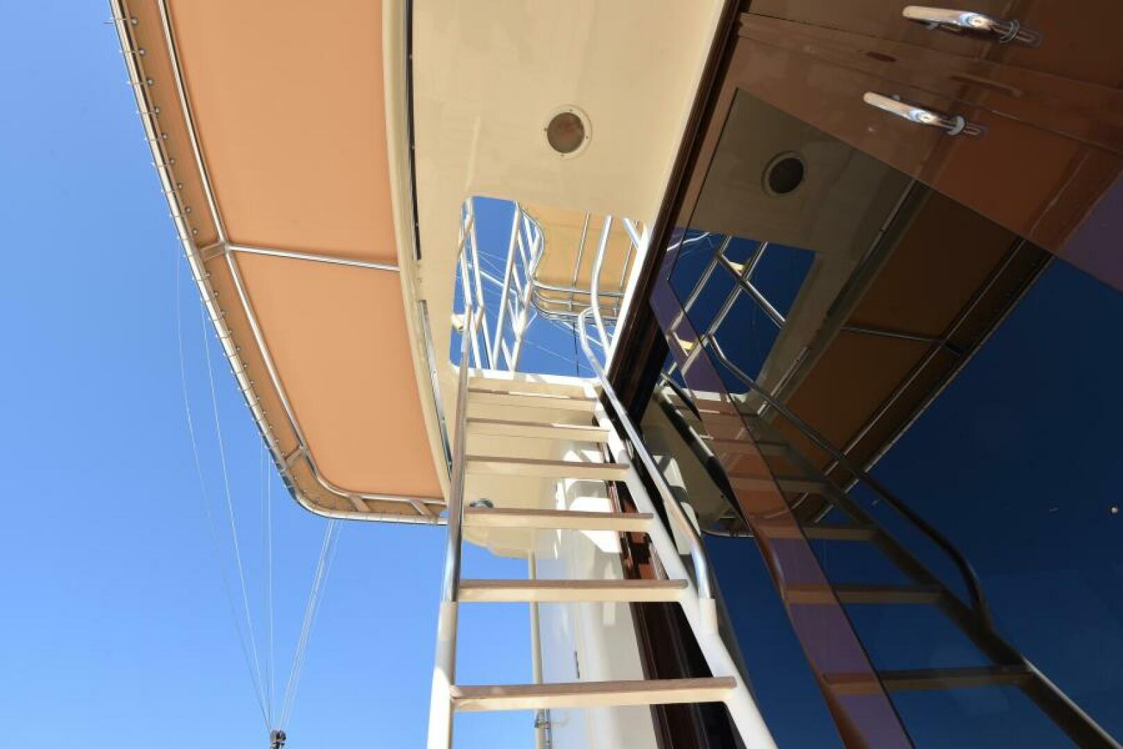 The unique Striker hull also allows you to run straight and true on a single screw without the "pushing" or steering effect caused by deep-V designs. She turns 8' seas into a light chop. The sharp entry cuts waves like butter, and wide, double chines create extraordinary stability while deflecting spray at the same time. She's also 3' wider than most yachts her length, that and her aluminum construction, which has the strength of steel at one-third the weight and the Pentapolymetic hull gives her a rock-solid ride that has to be felt to believe.