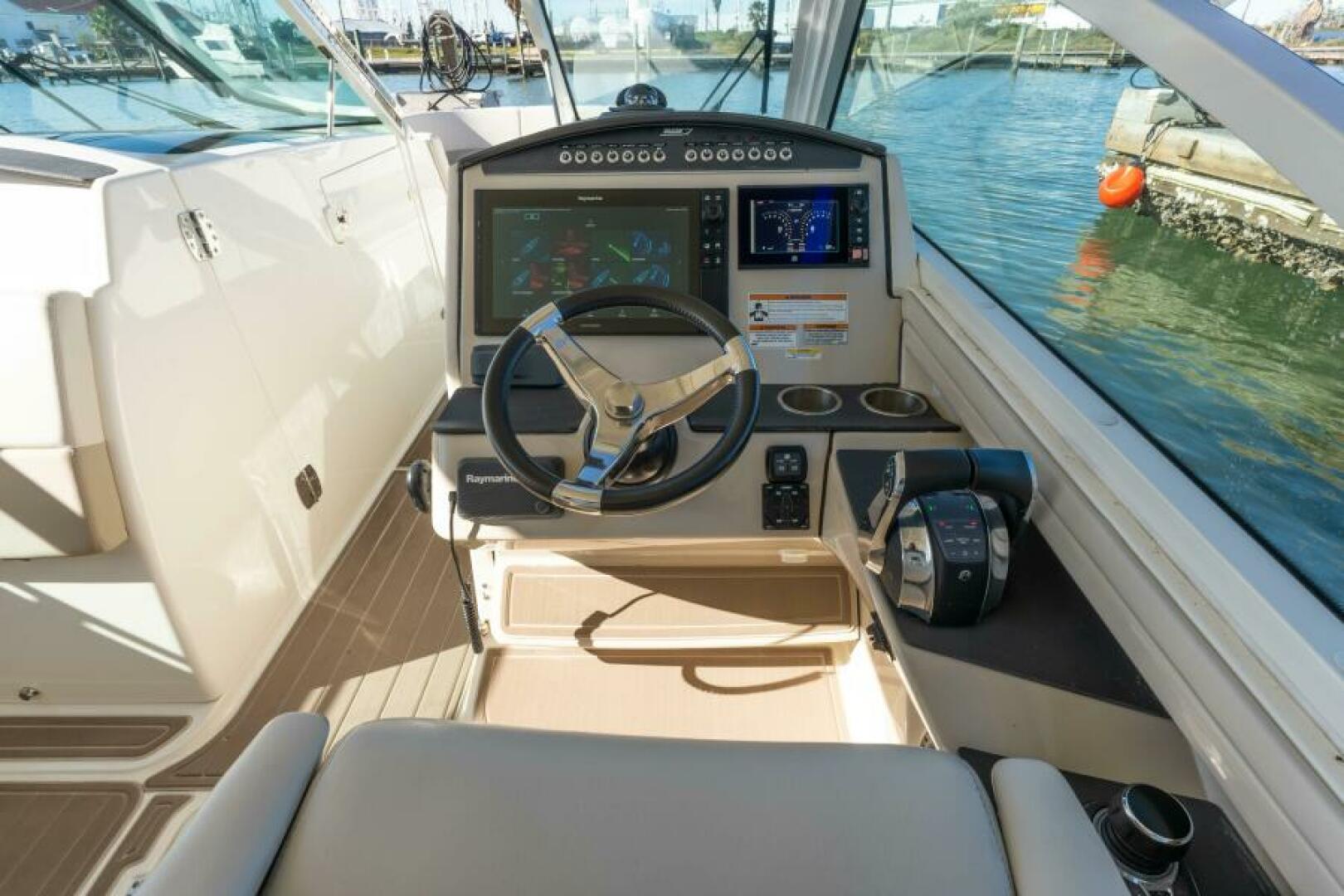 There is not a more well-suited boat for the family, whether its cruising or fishing, the 320 Vantage by Boston Whaler provides the best of both worlds. Powered by twin Mercury 350 Verado engines, your trips to the fishing grounds or the sandbar will be enjoyable and efficient. Loaded with comfortable amenities and options, the 320 Vantage leaves nothing to be desired. With top-of-the-line Raymarine electronics, navigation to your final destination has never been easier. Also equipped with a joystick, docking is a breeze, making even the amateur captain, look like a seasoned veteran. The large cockpit and forward bow offer ample seating and room throughout for entertaining on those extended cruising and fishing excursions. And its well thought out layout includes, a port side cabin and starboard head compartment, equipped with both an electric toilet and sink allowing you and your guest the opportunity to get out of the elements and relax in comfort and privacy. So, if you have been searching for a multi-faceted boat that will fulfill all of your boating needs, look no further than this extremely well-maintained vessel, as she will not last long!