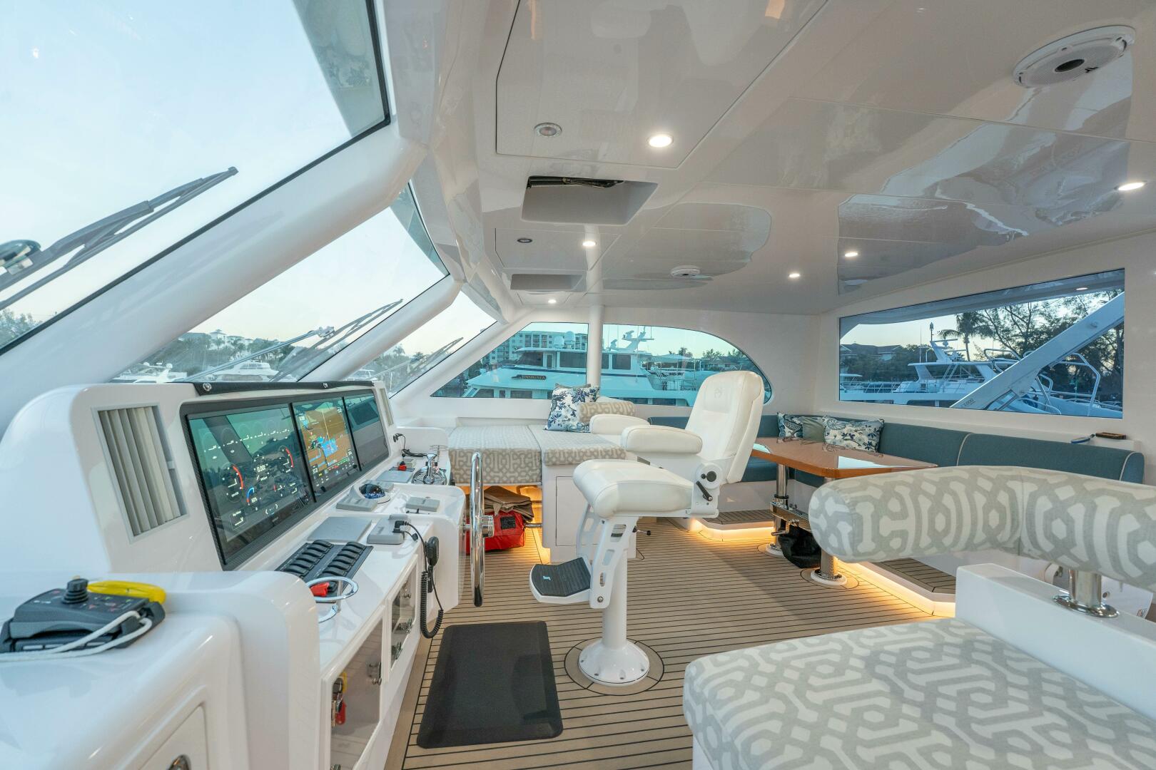 This 2021 Horizon PC60 features the highly sought-after on-deck, full-beam master stateroom and a fully enclosed skylounge flybridge complete with a convenient day head, creating an ideal layout for both extended cruising and entertaining. Powered by twin MAN 800HP engines, recently completing their full 4-year service, the vessel delivers confident performance with exceptional reliability. Accommodations include four staterooms and four heads, offering generous space and privacy for owners and guests alike.
