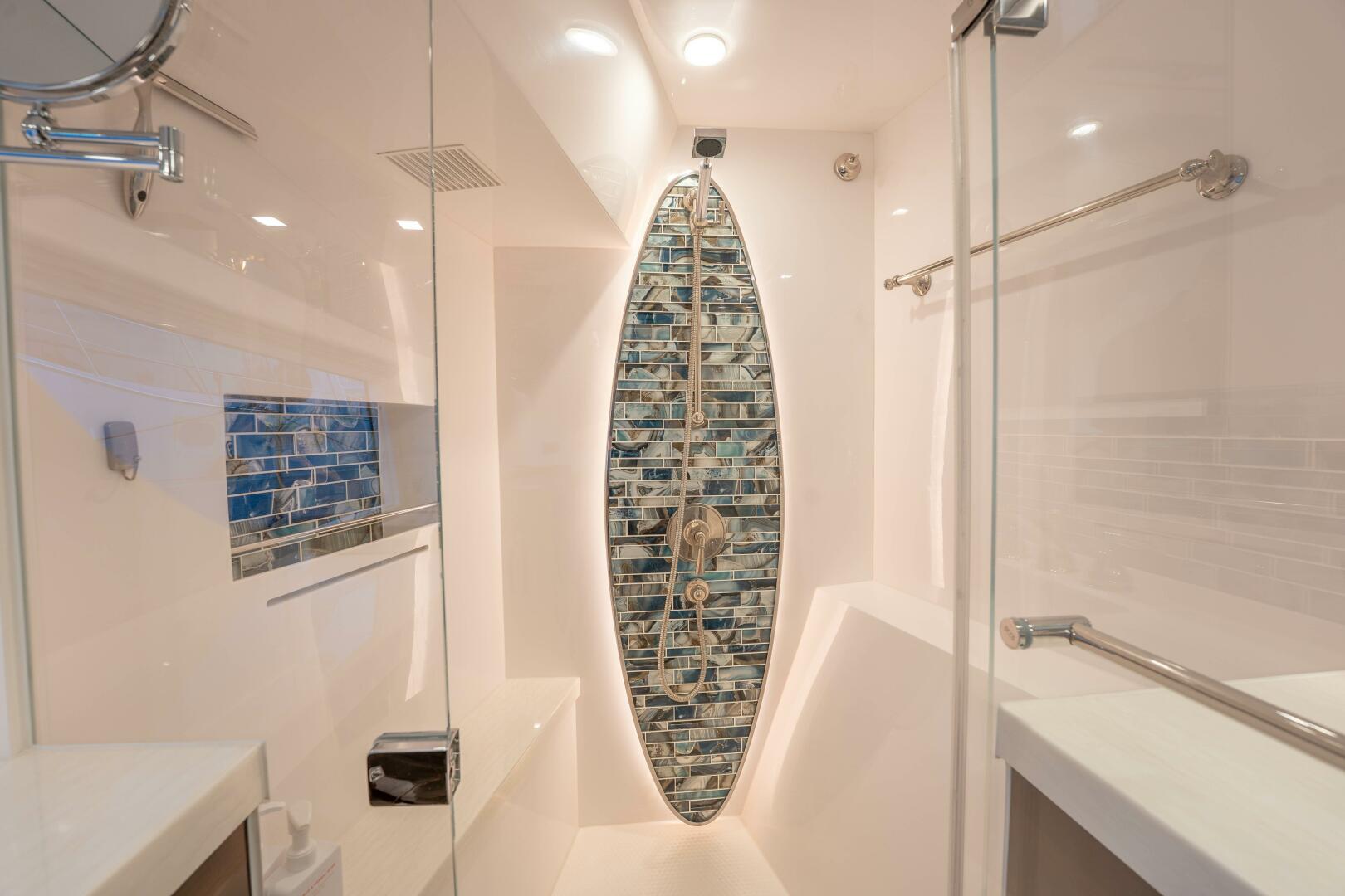 - Install hot water and shower head on upper aft deck