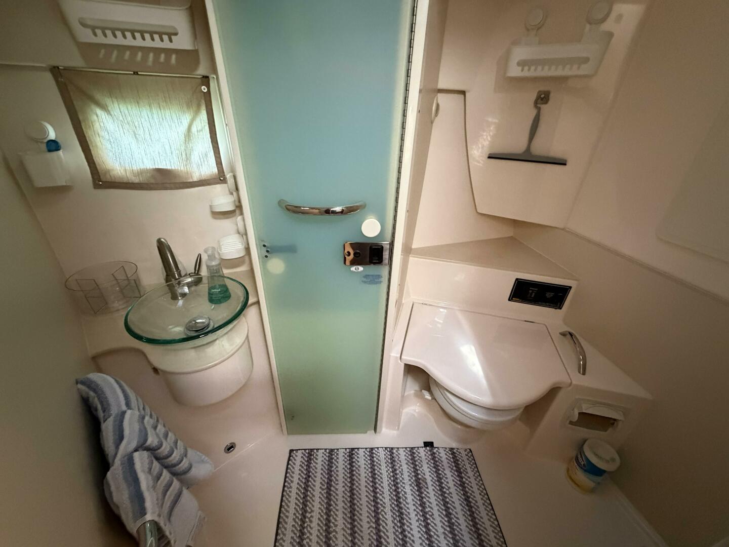 - Fiberglass enclosed head compartment with Corian® countertop