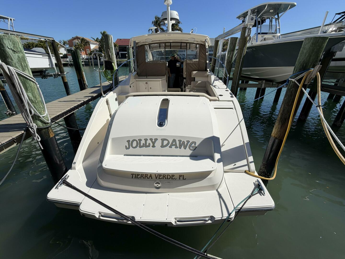 - 10” pop-up cleats (4) on stern and 10” Hershoff spring and bow cleats (4)