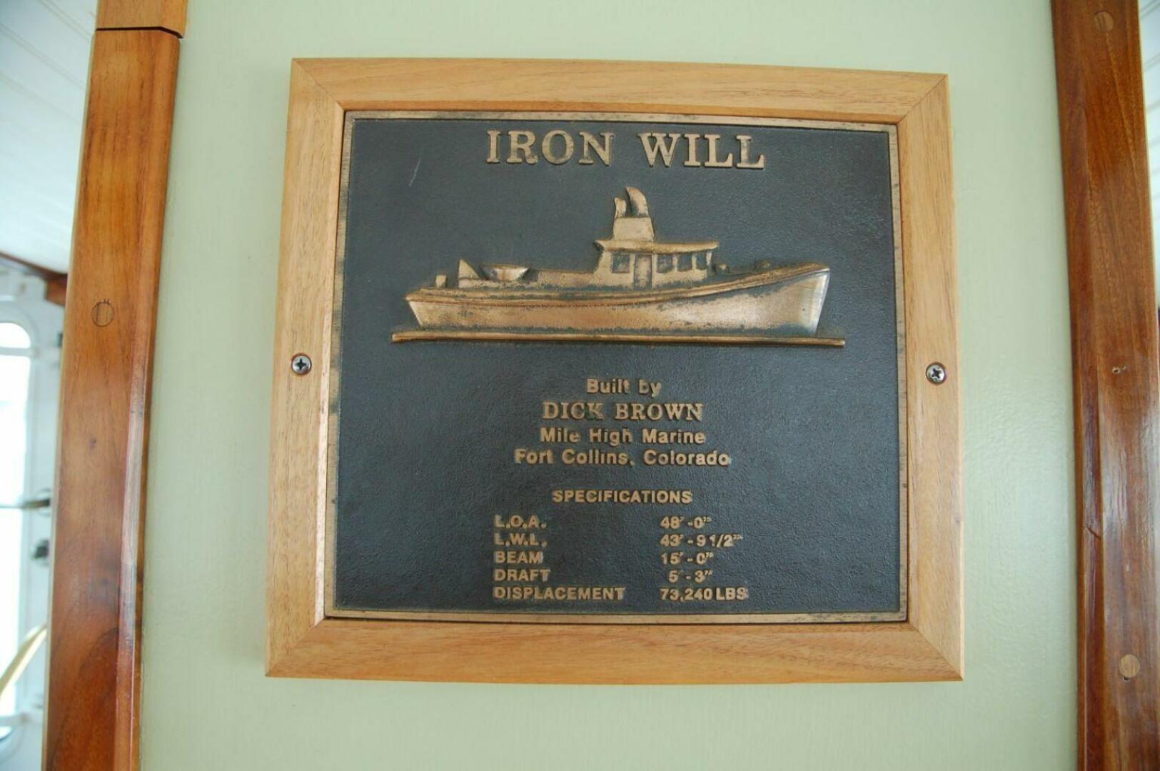 IRON WILL is a custom long range steel trawler designed by Bainbridge Island-based naval architect Scott Sprague and built by Dick Brown of Mile High Marine in Ft. Collins, CO.
