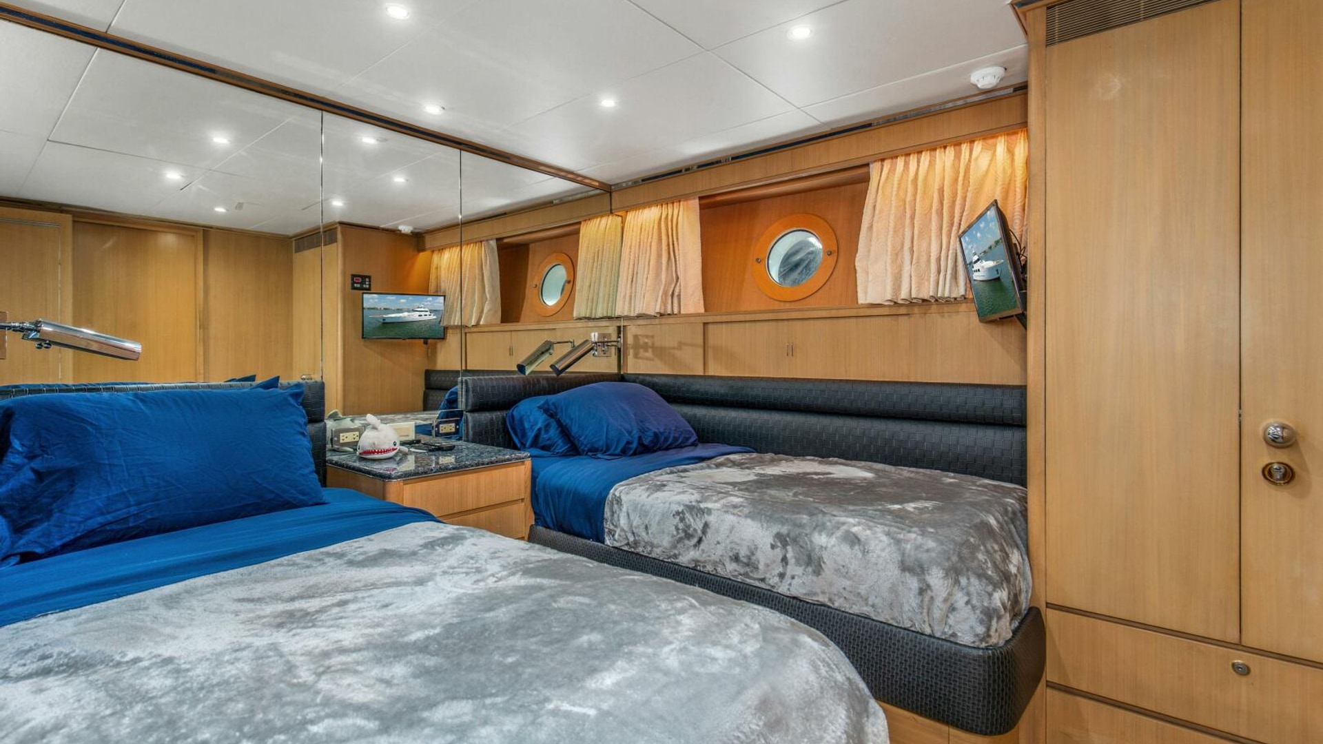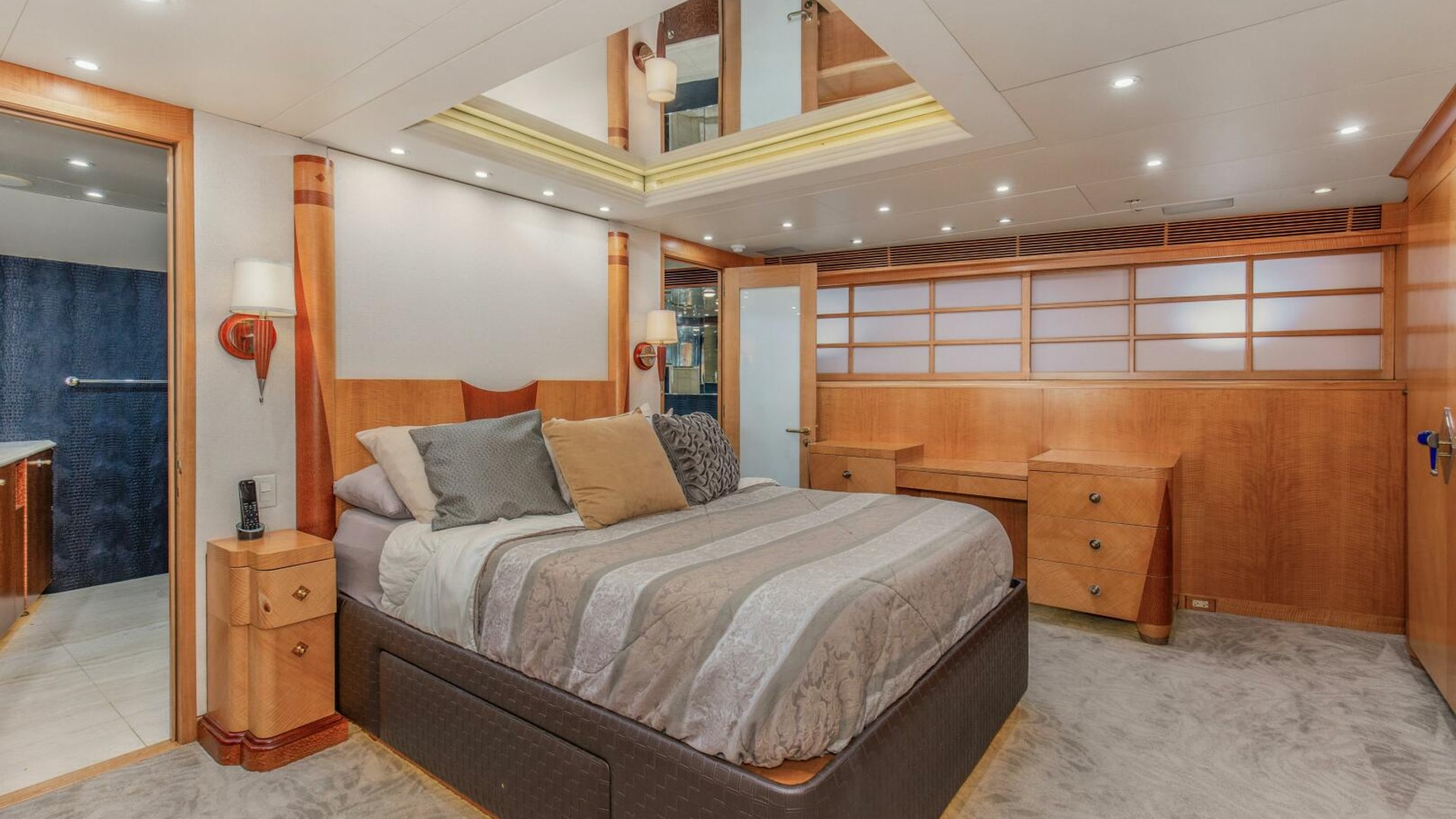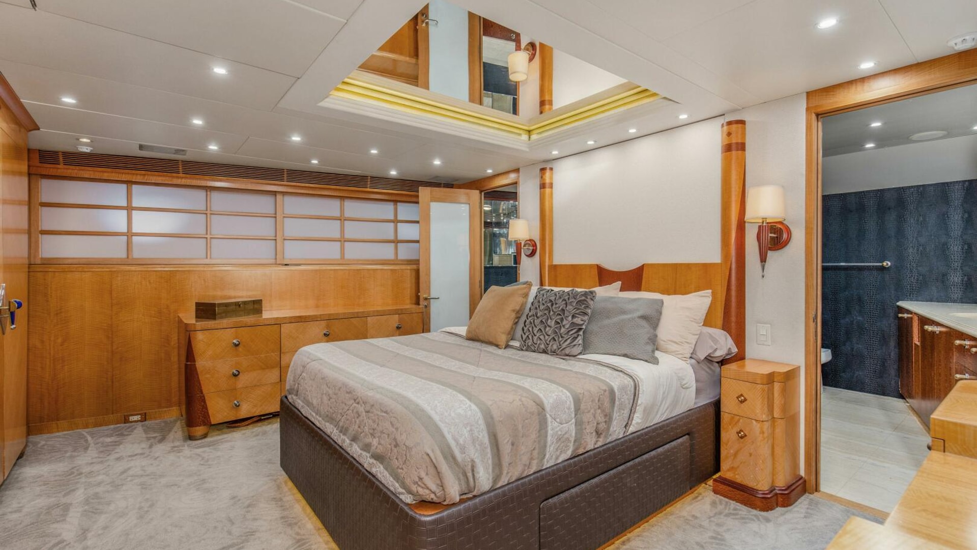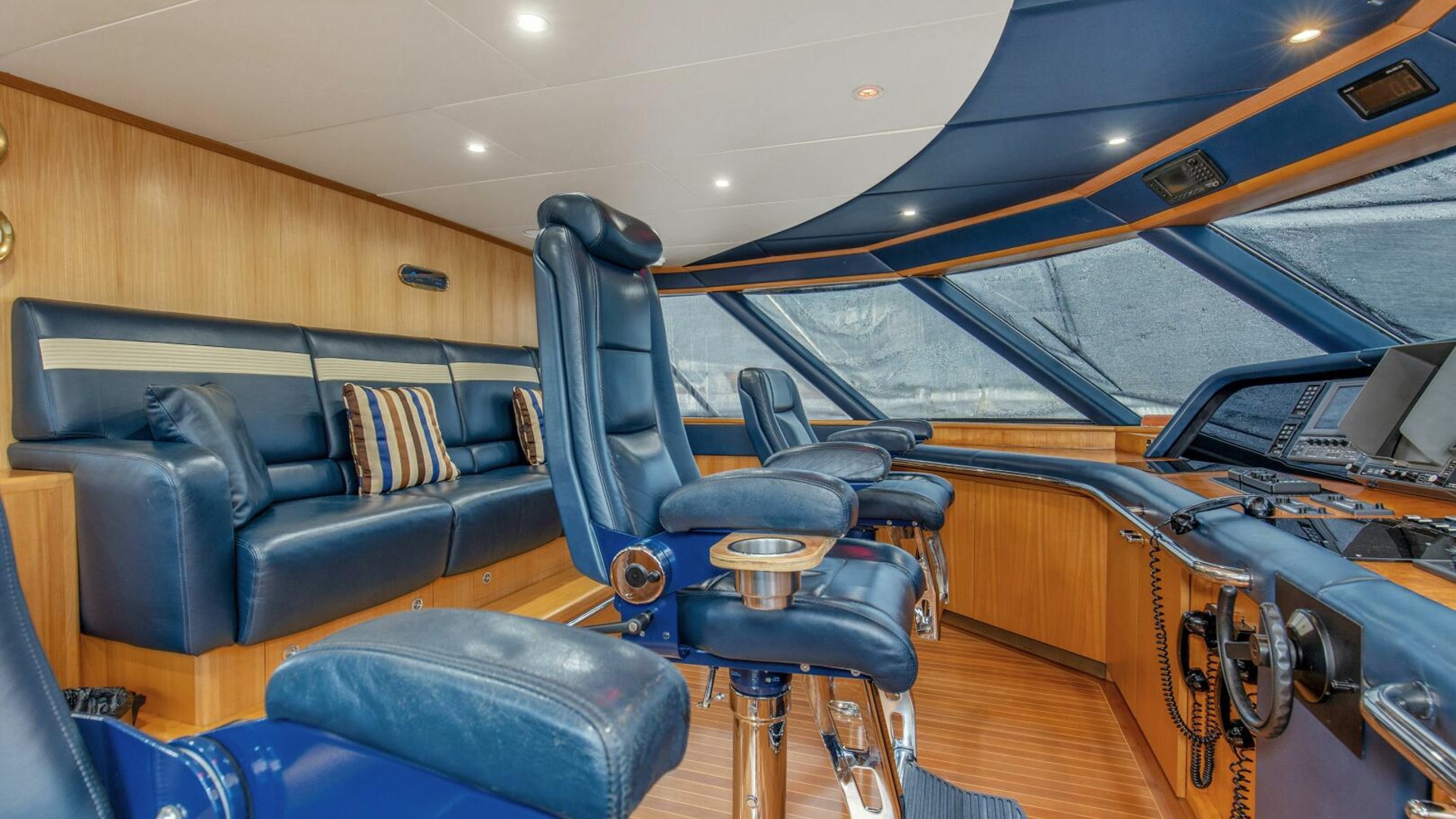- Private Captains Quarters and private head on the bridge deck off of the helm area