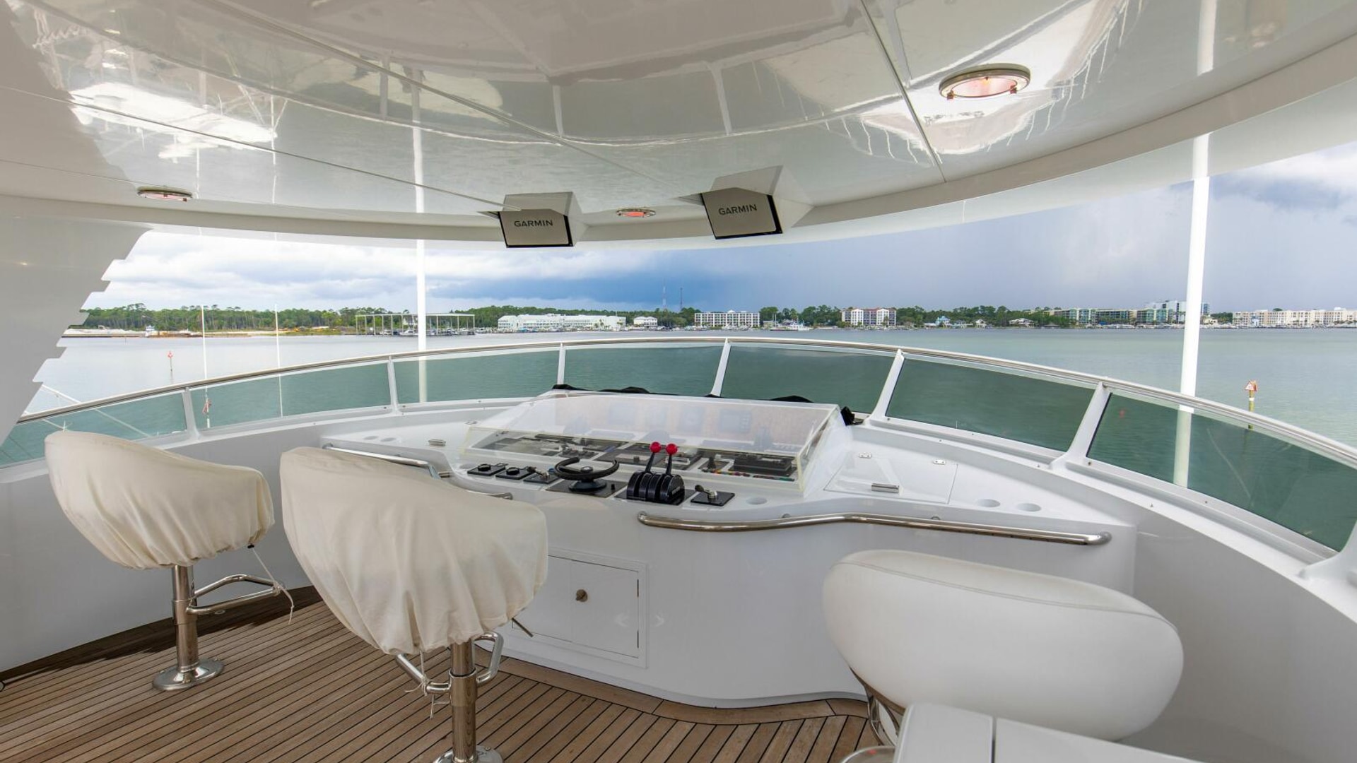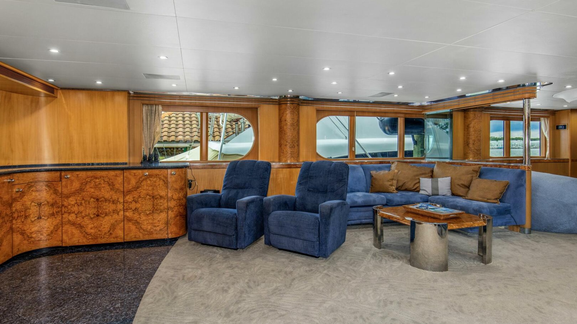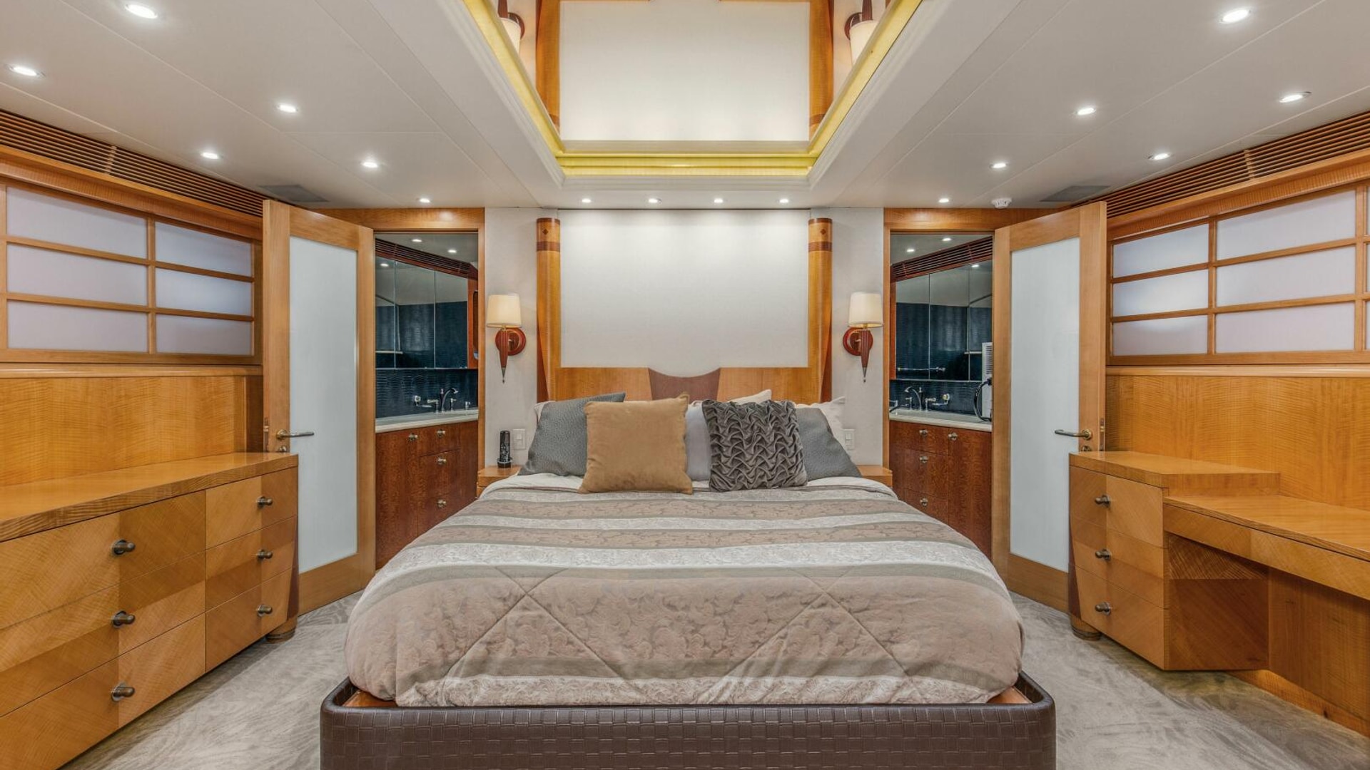 - Private Captains Quarters and private head on the bridge deck off of the helm area