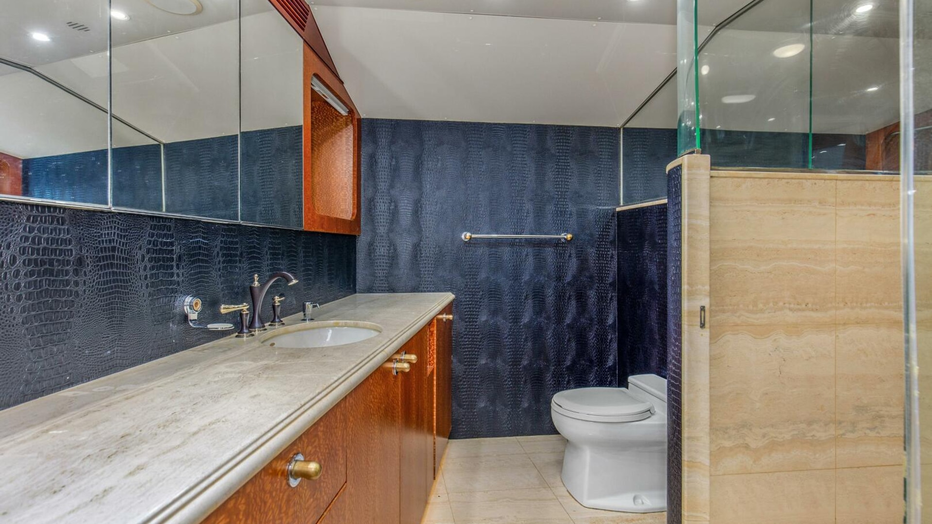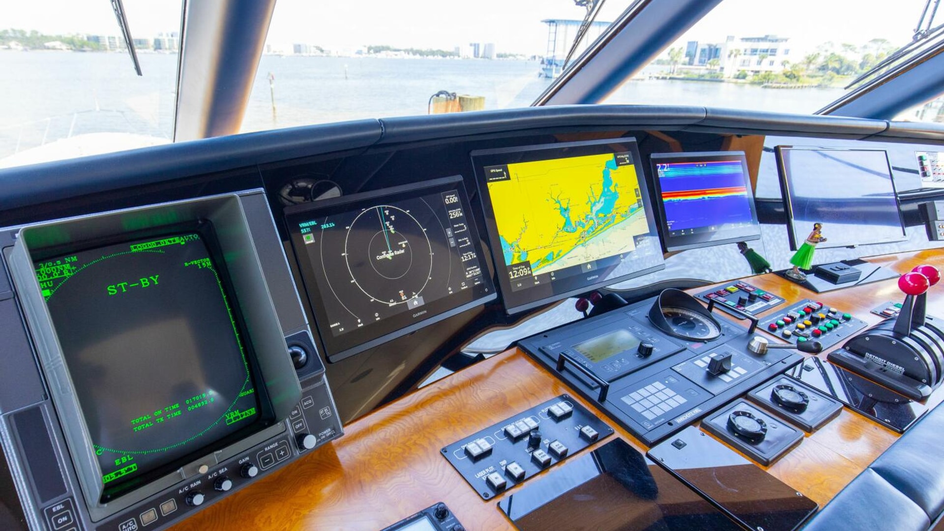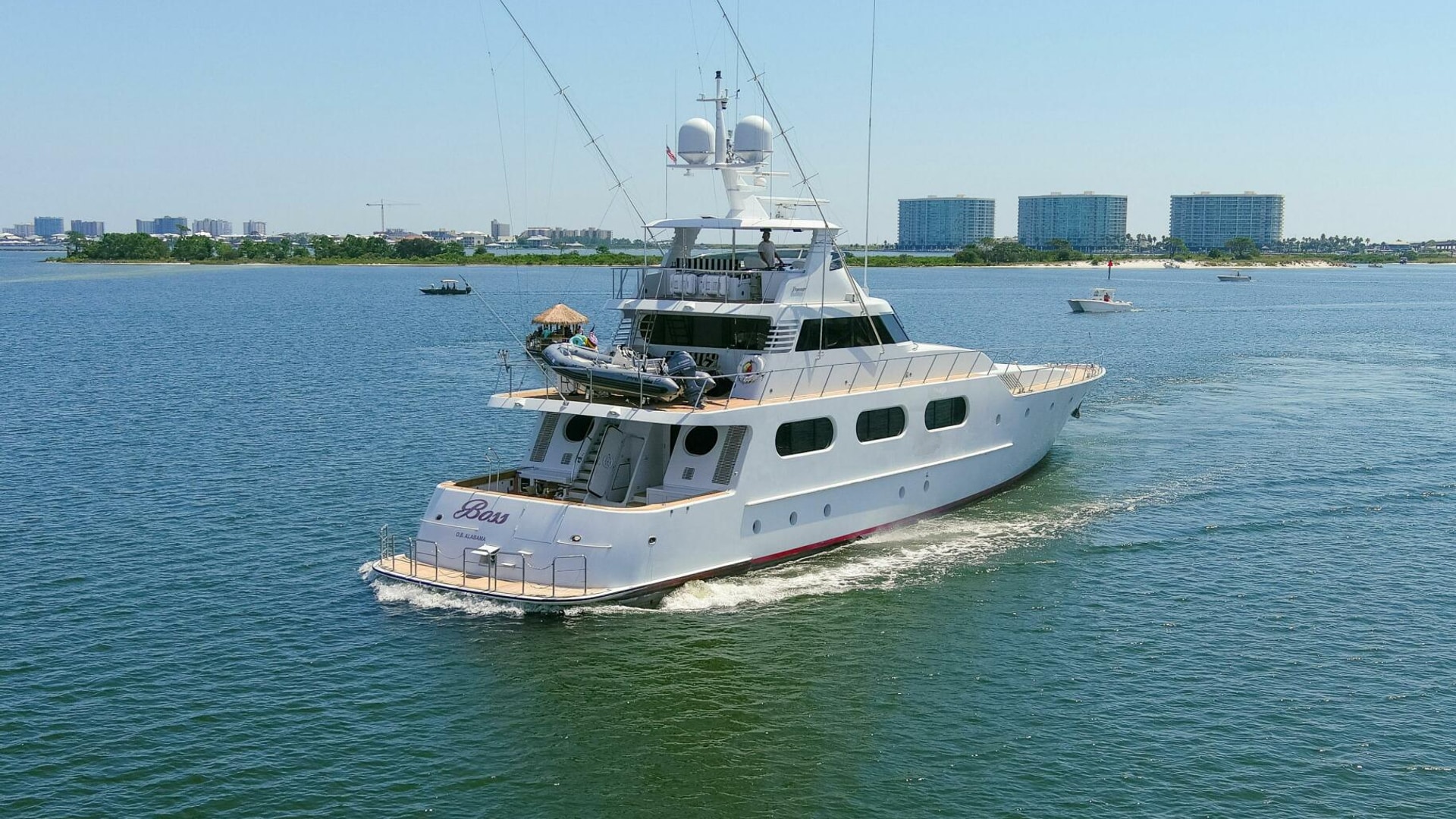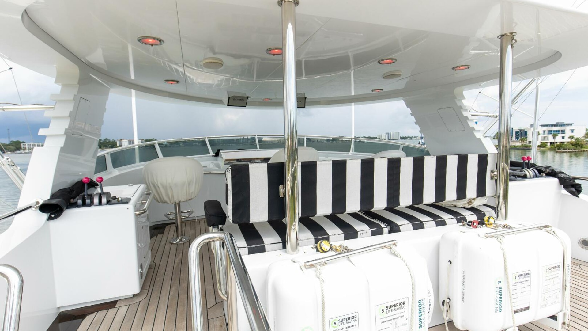 - Private Captains Quarters and private head on the bridge deck off of the helm area