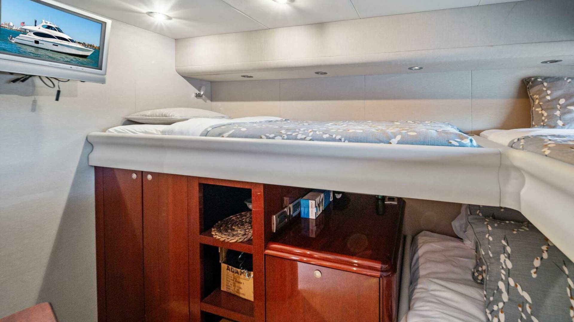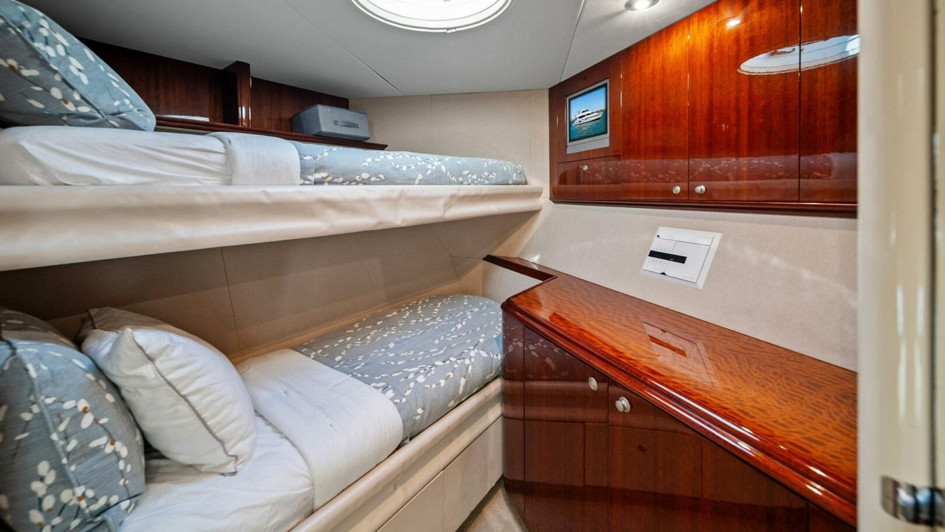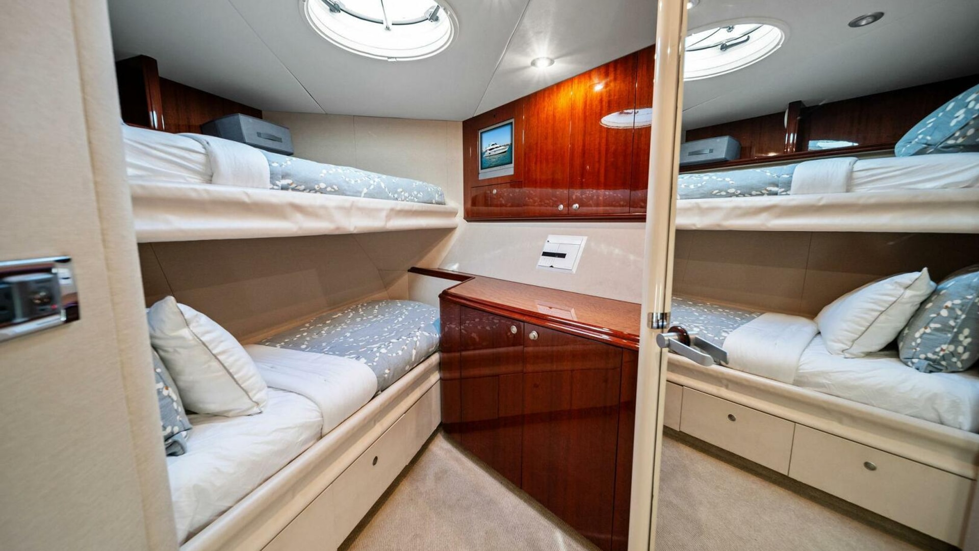 - Two forward guest staterooms with multiple bunks, ideal for family or crew