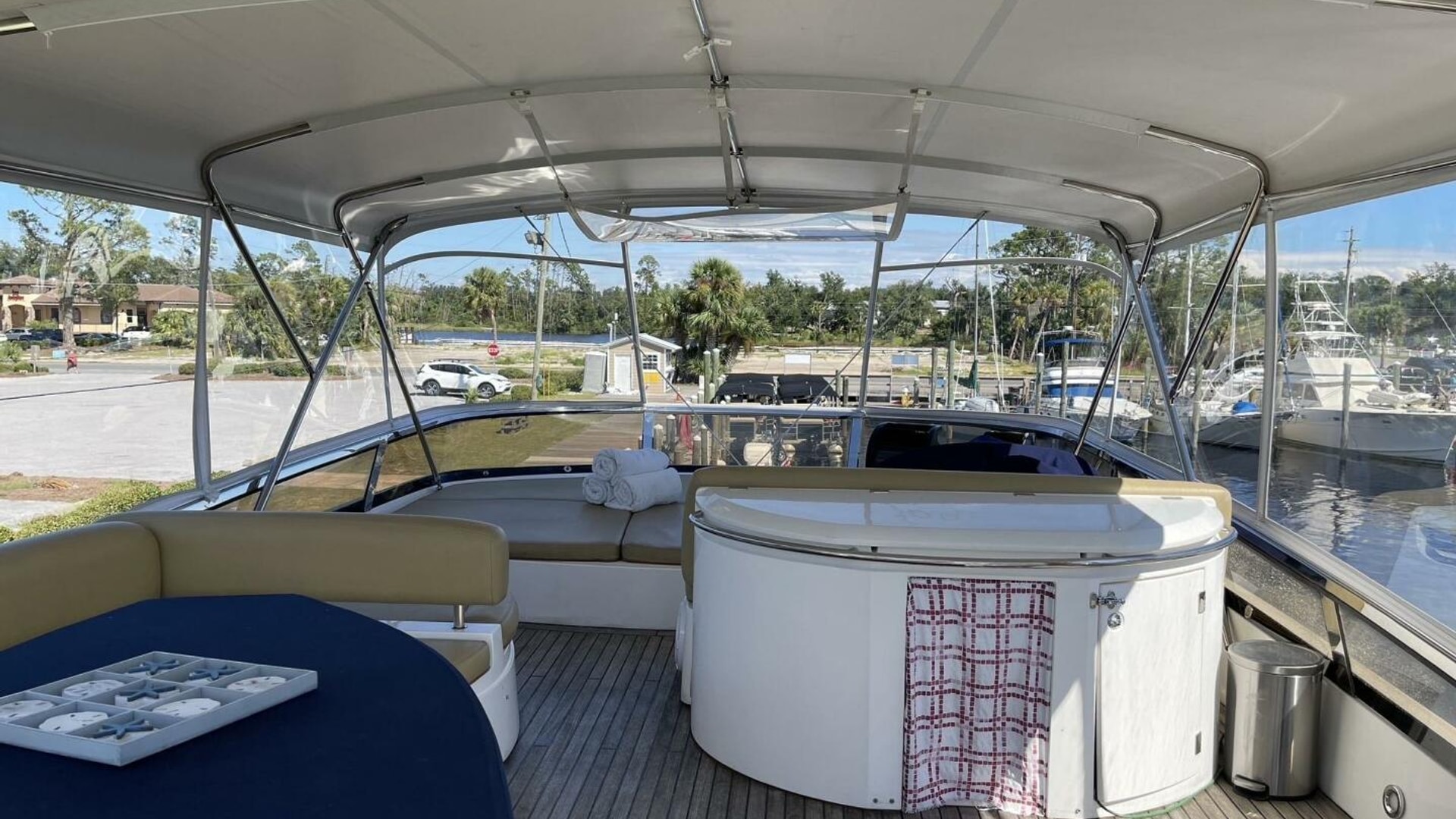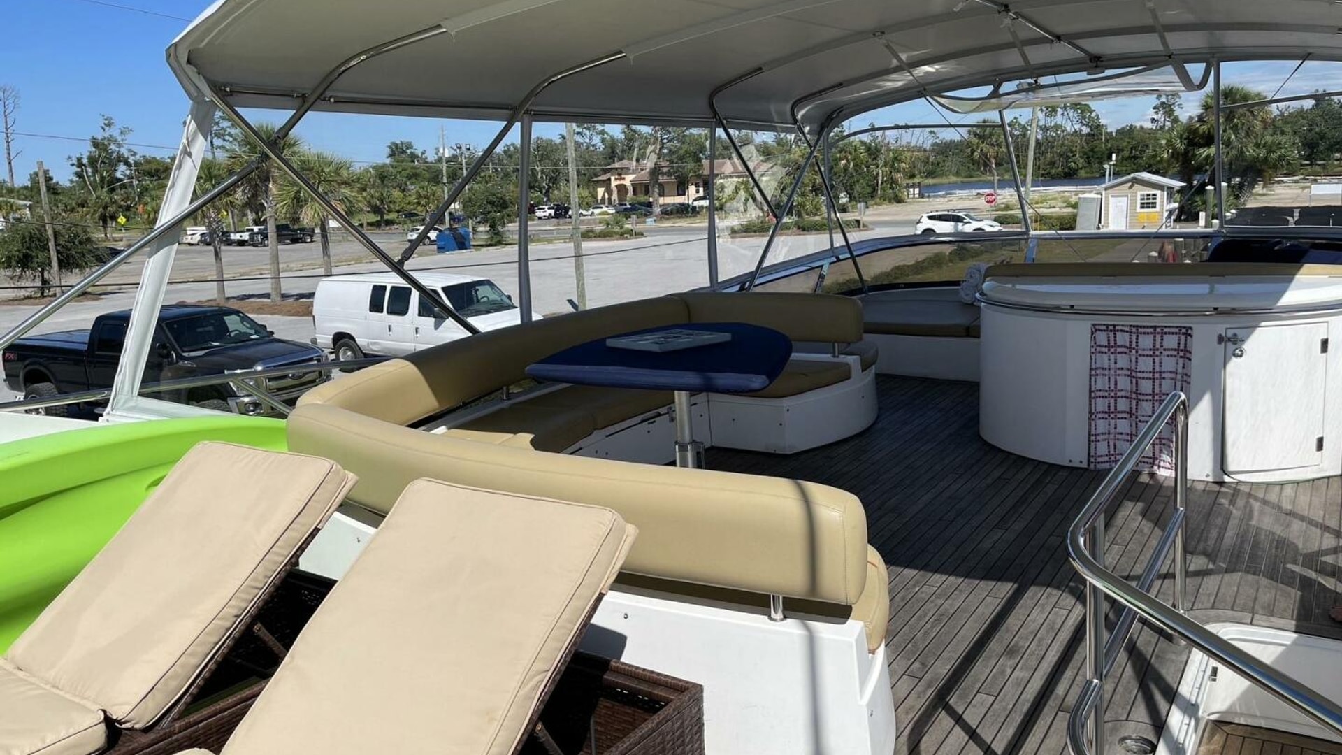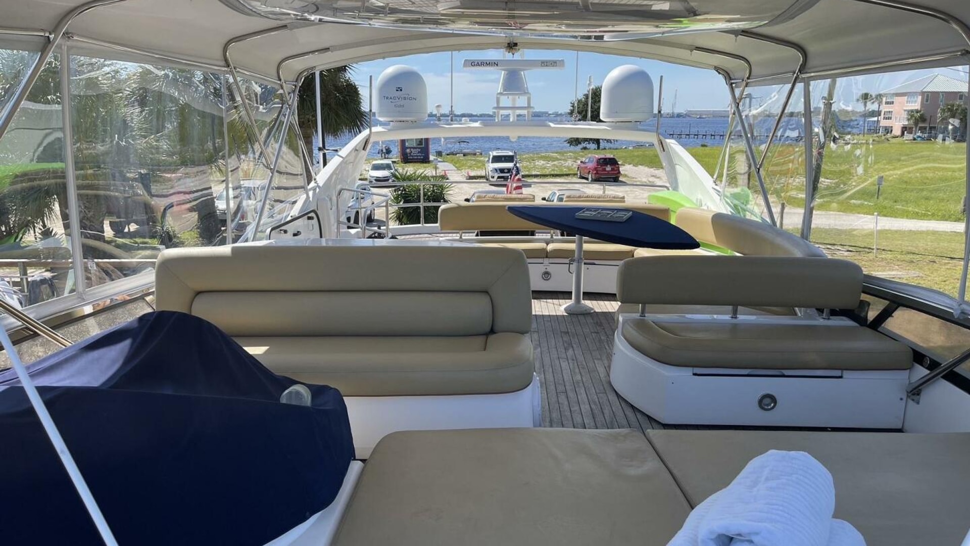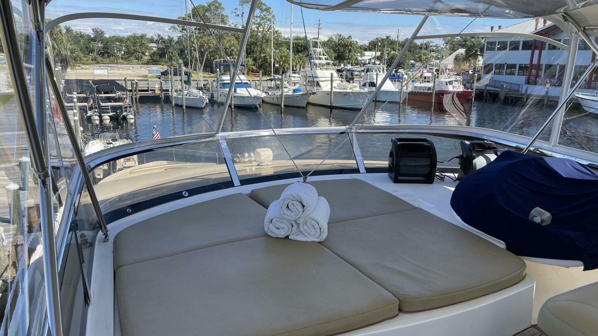 - Fore deck sun pad and bench seats w/ drink holders and canvas covers