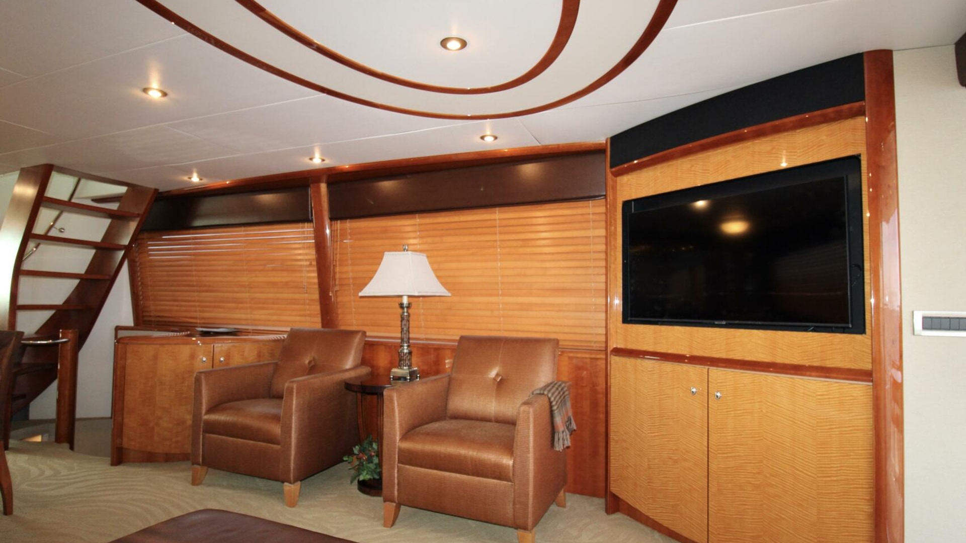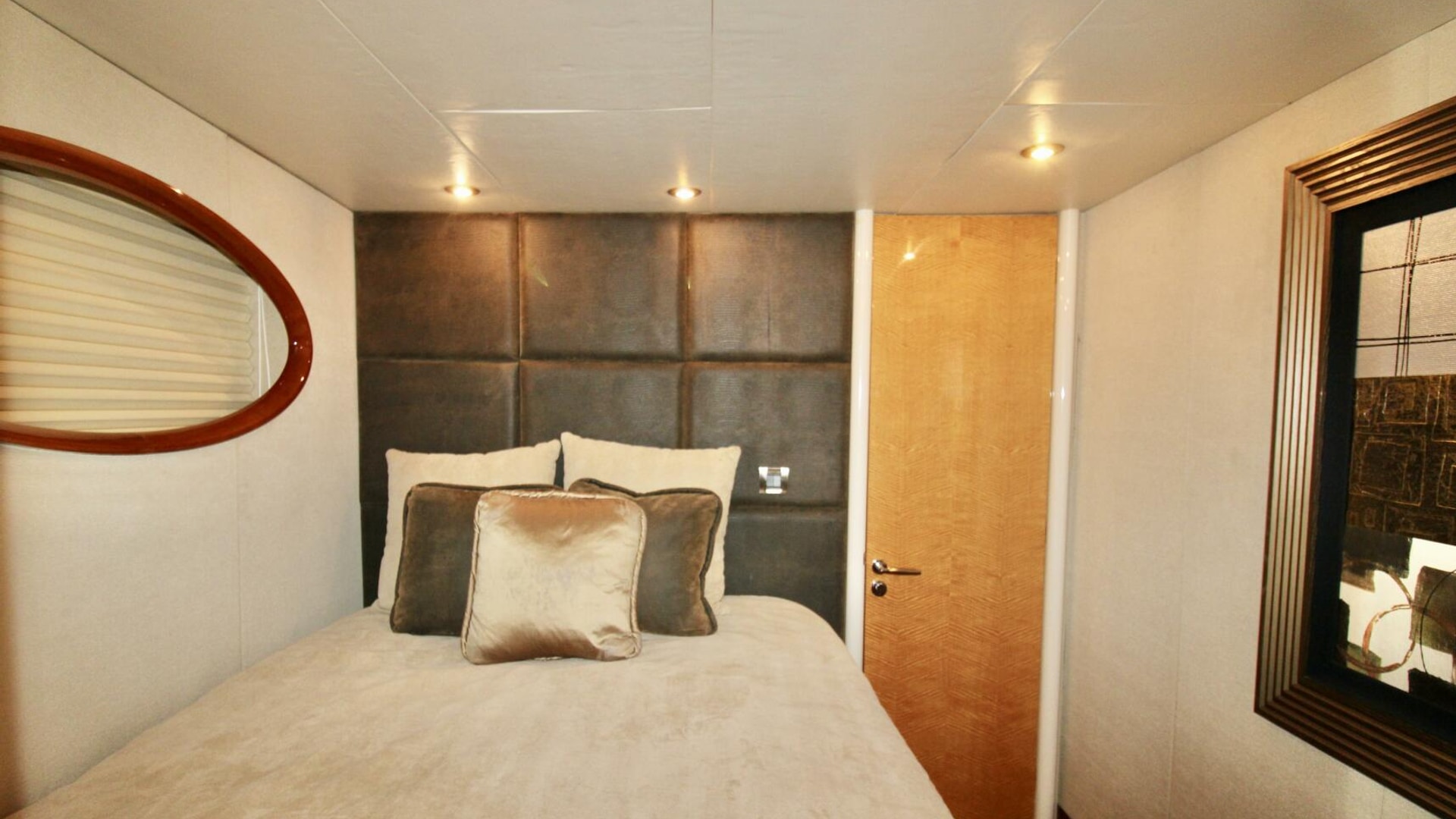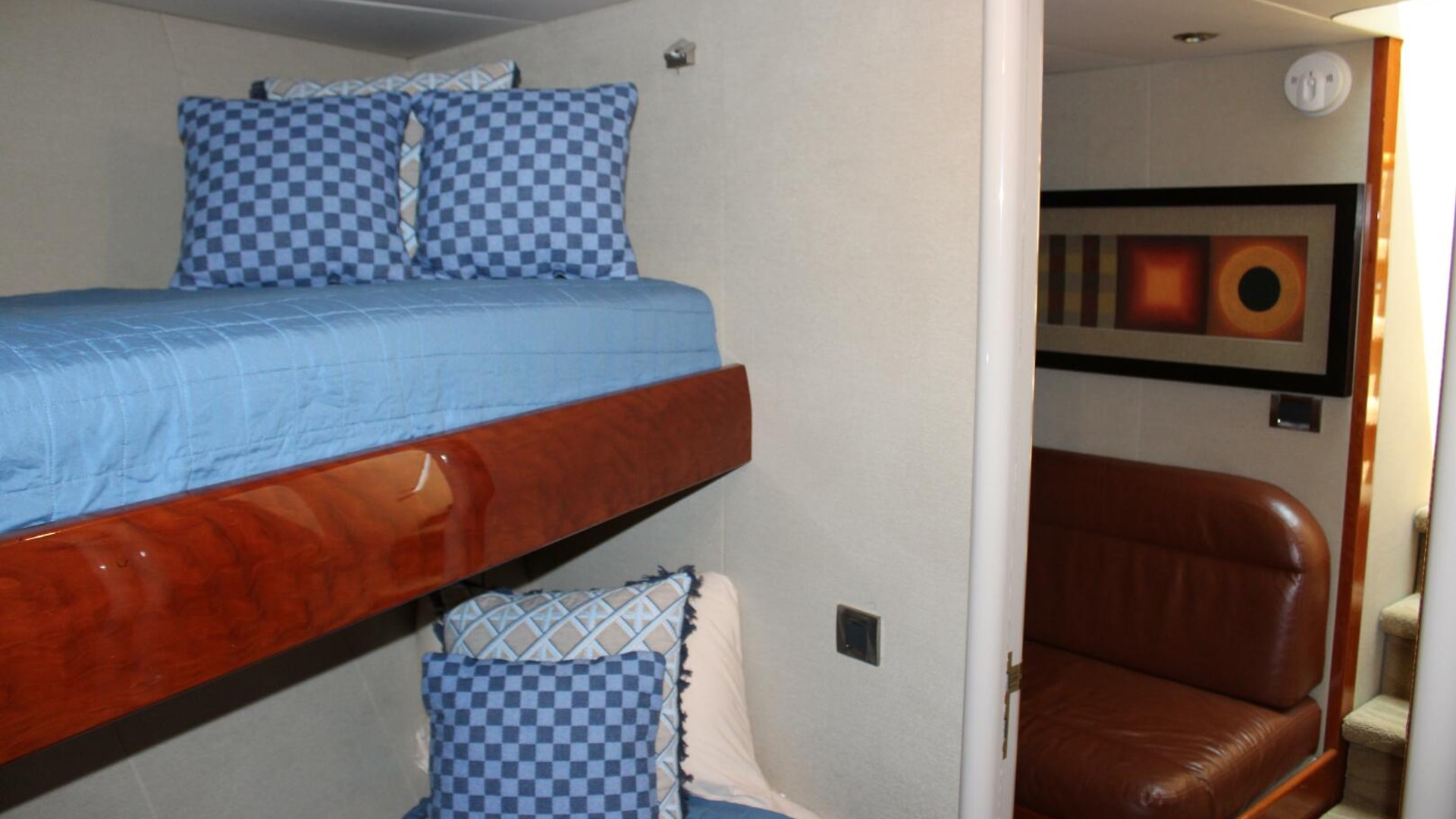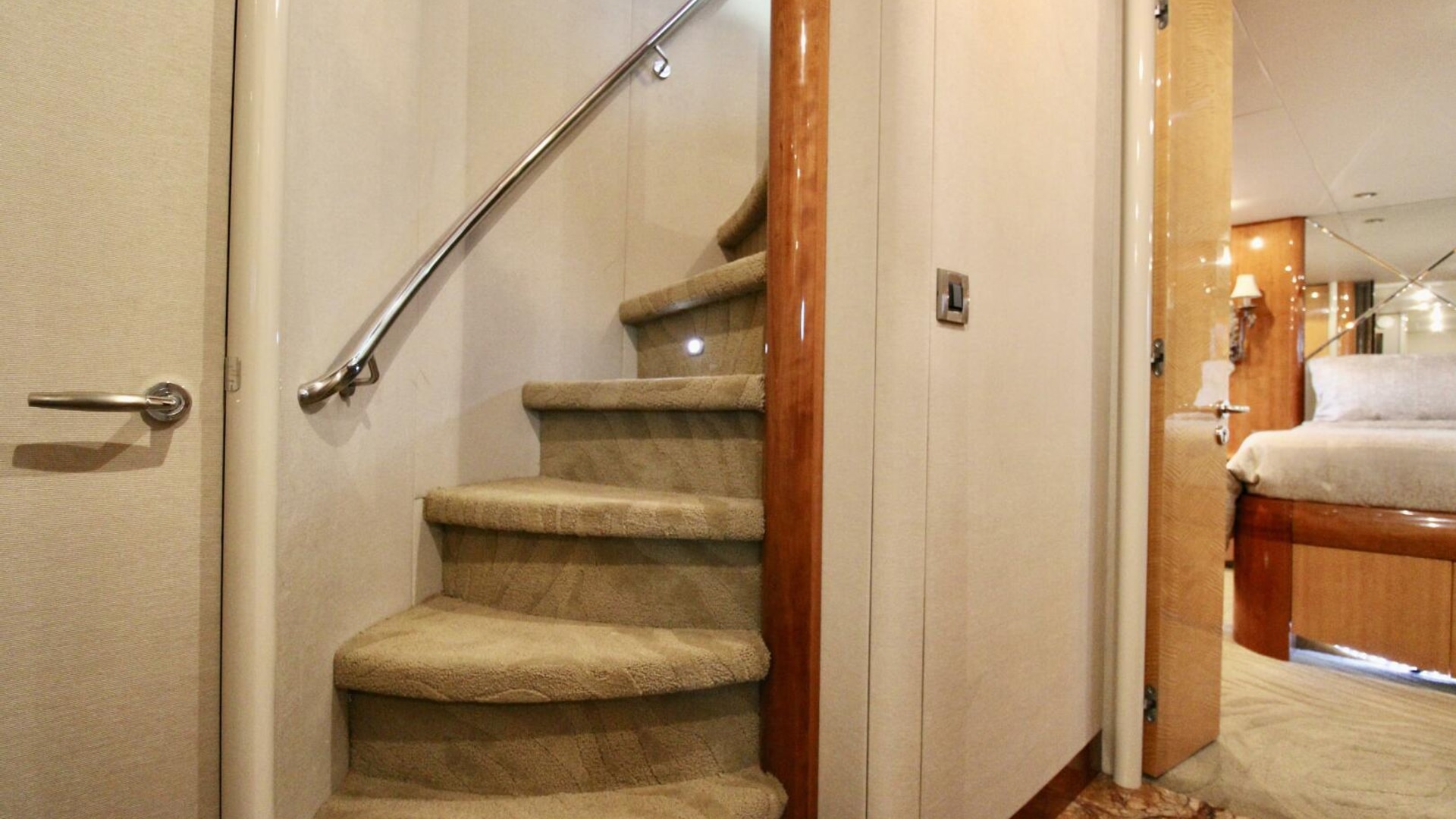 - This area is below deck with access to two guest staterooms as well as the master stateroom.