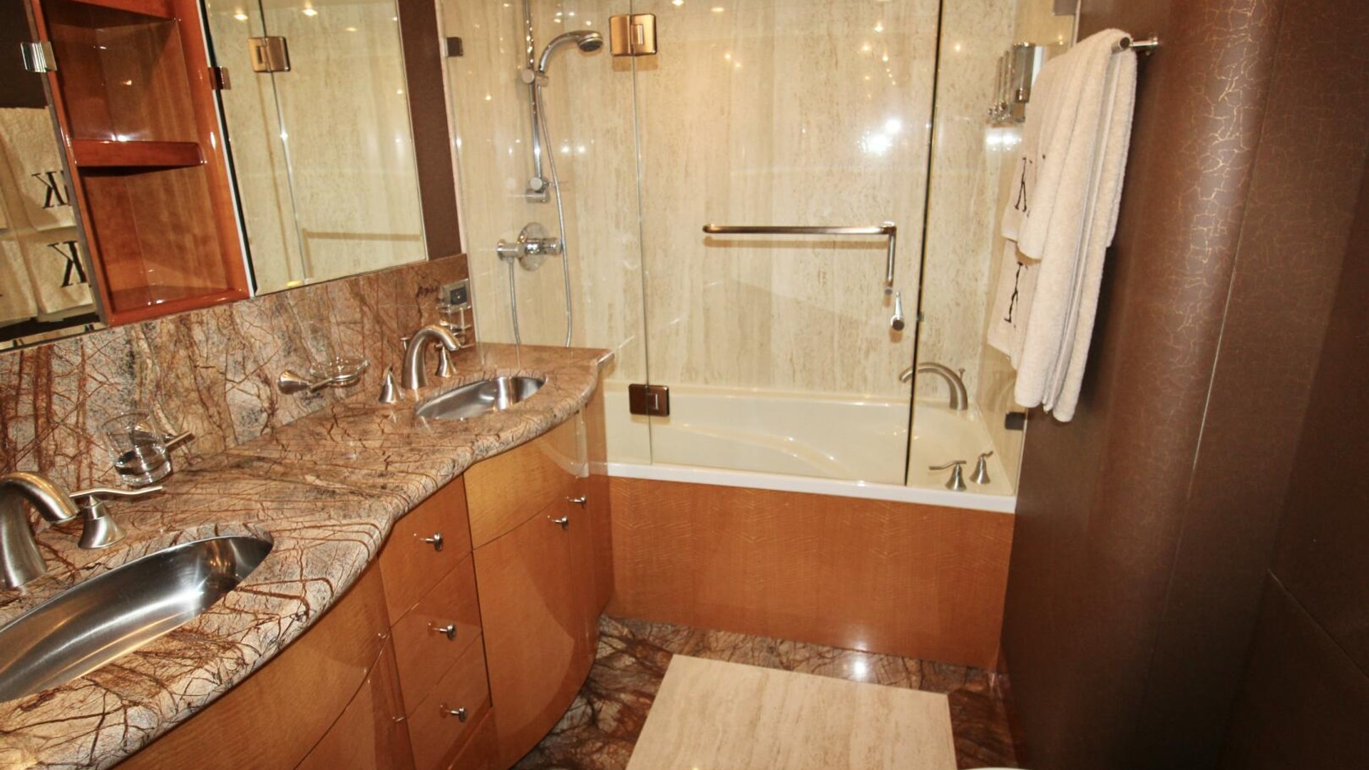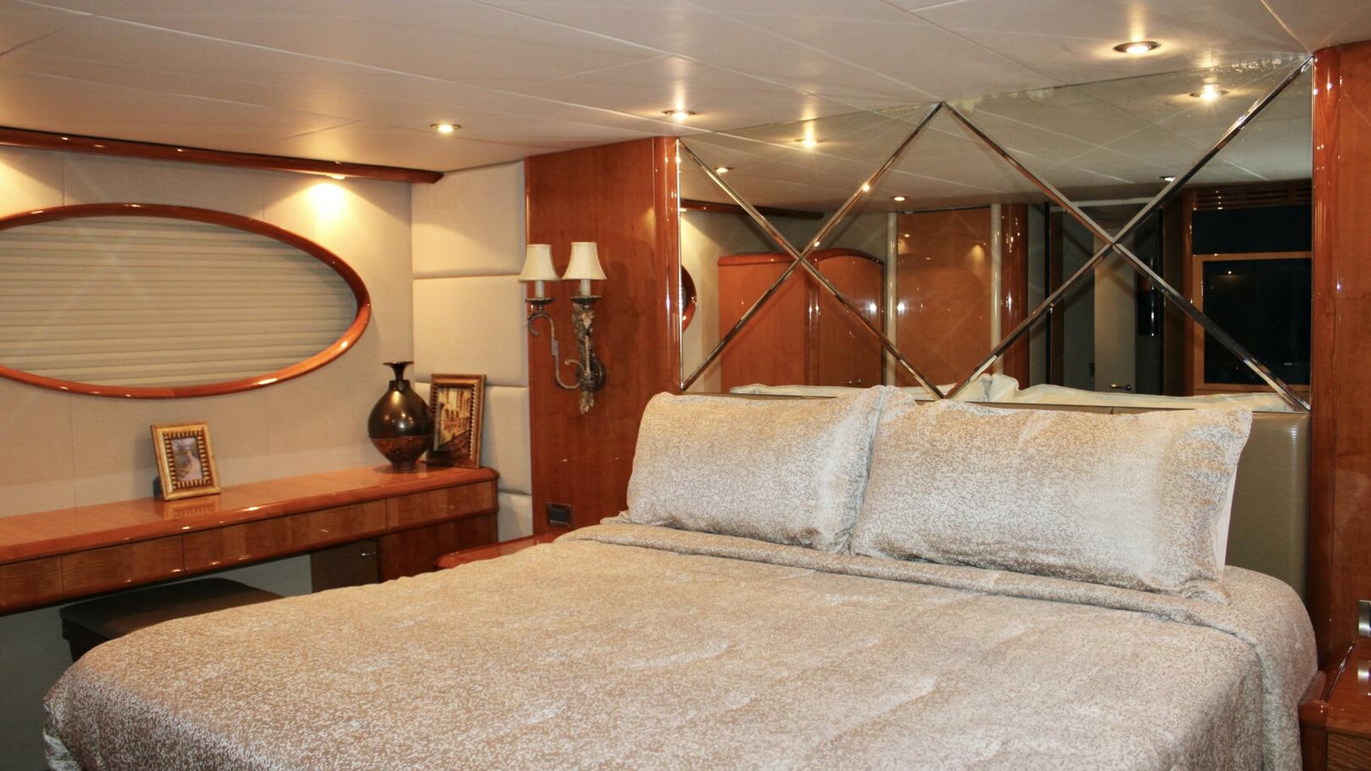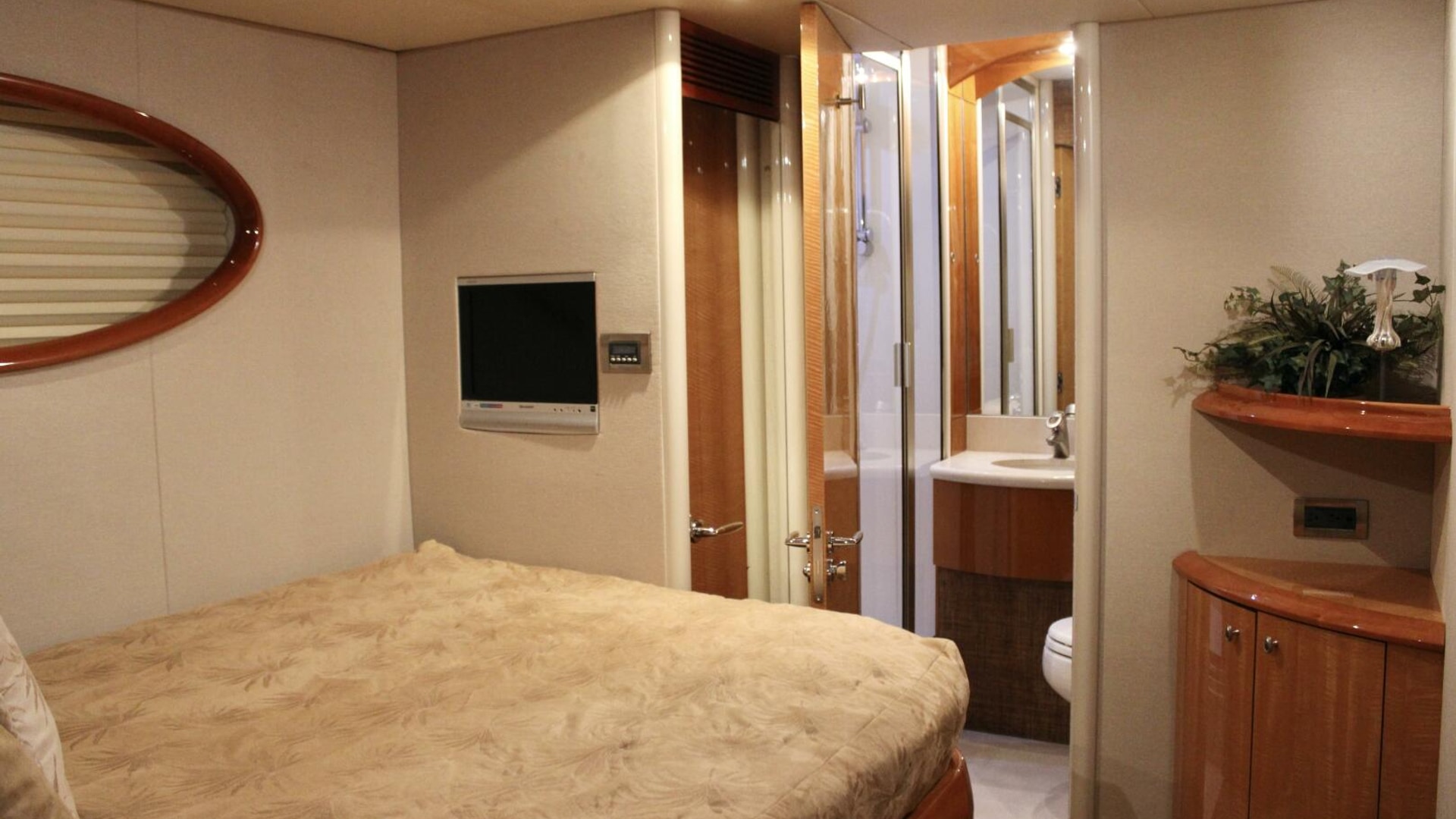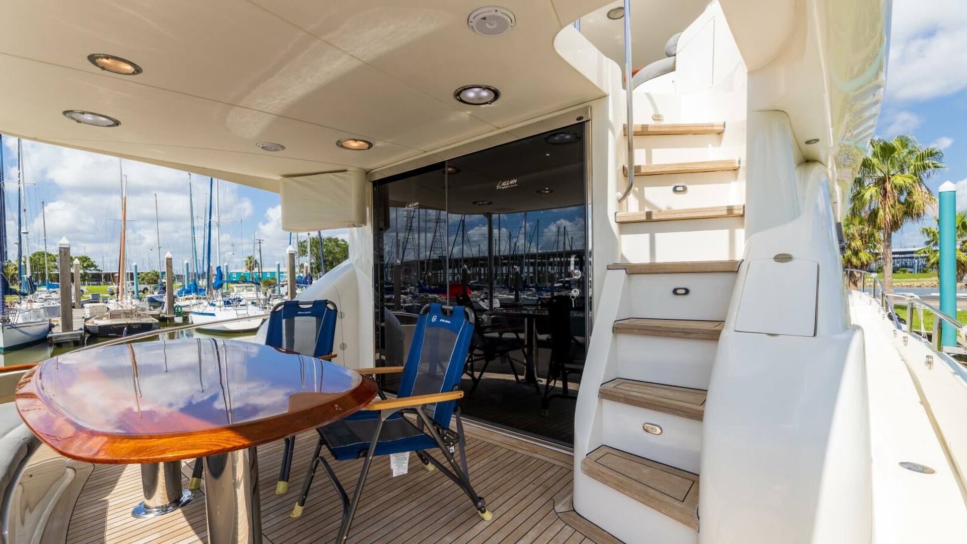 - This area is below deck with access to two guest staterooms as well as the master stateroom.
