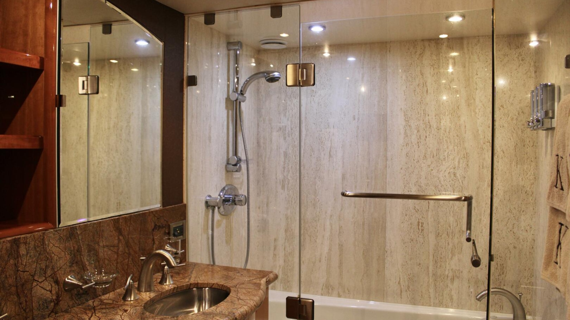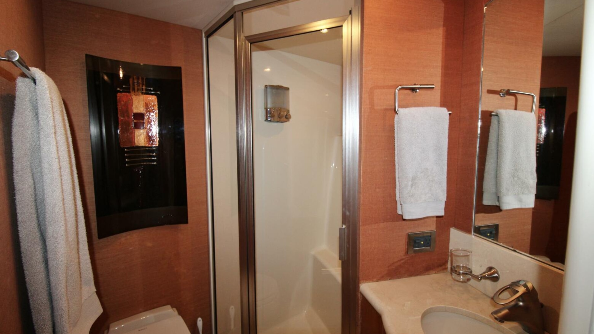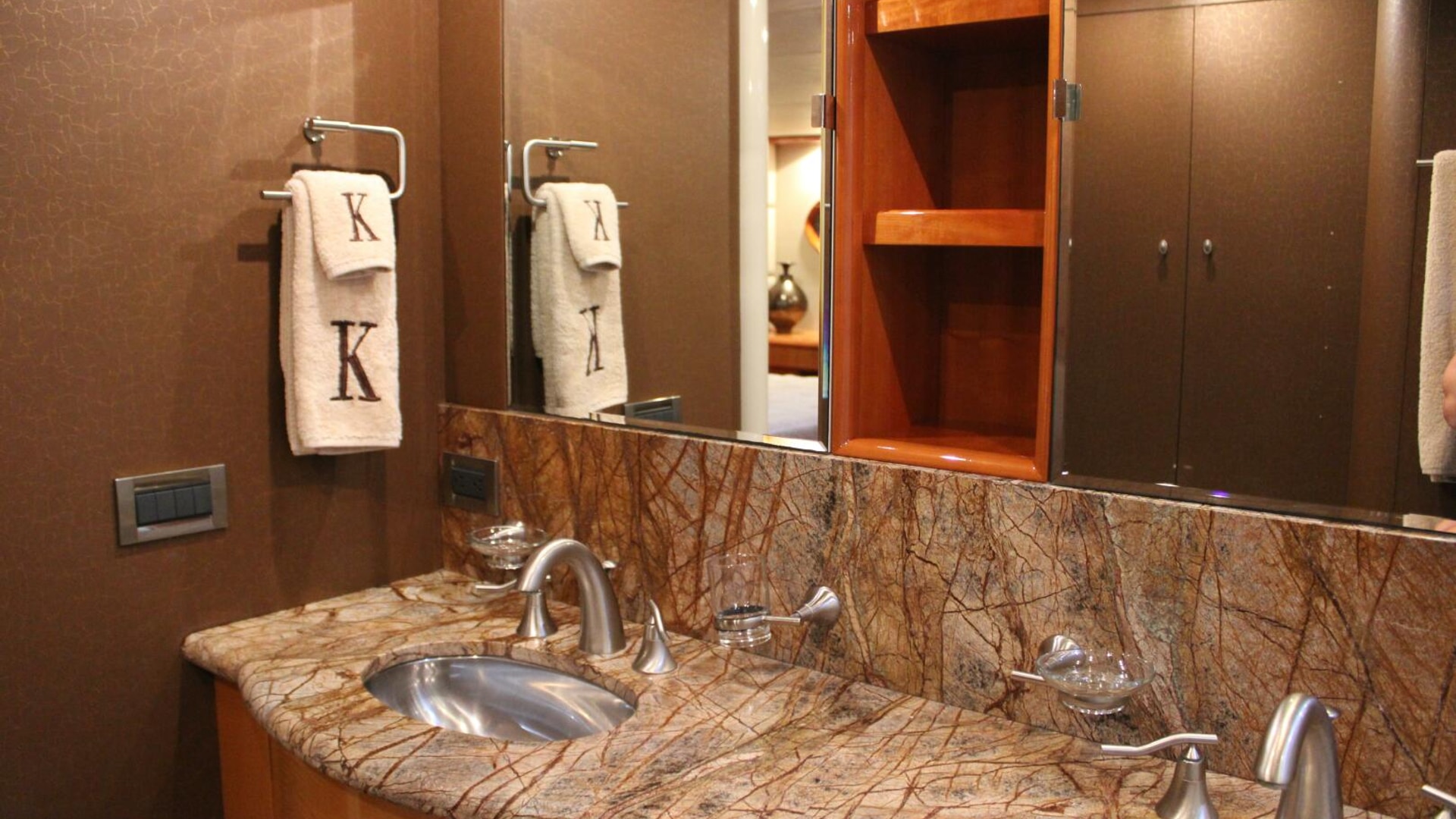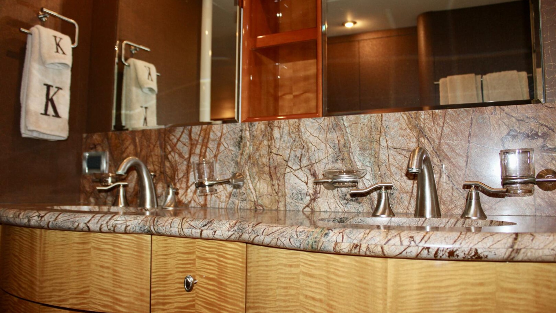 This vessel is absolutely stunning ! If you are looking for a Private yacht that offers spacious accommodations and comfort, Kathleen is for you. With a draft of 4’2” you can take her anywhere your heart desires. With excellent crew accommodations she can equally serve as a charter vessel if so desired. She is Fin Stabilized for calming sloppy sea conditions while underway. Her twin C-18 Caterpillar diesels offer great cruising speeds and economy. Her twin generators insure adequate electrical supply while underway or at anchor.. She features 4 staterooms with each having it’s own private head. In addition there is a day head on deck for the comfort of your guests. Whether you plan on a visit to the Bahamas or Virgin Islands, This is the perfect vessel for you.