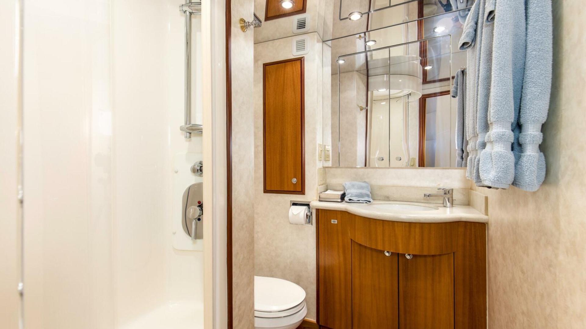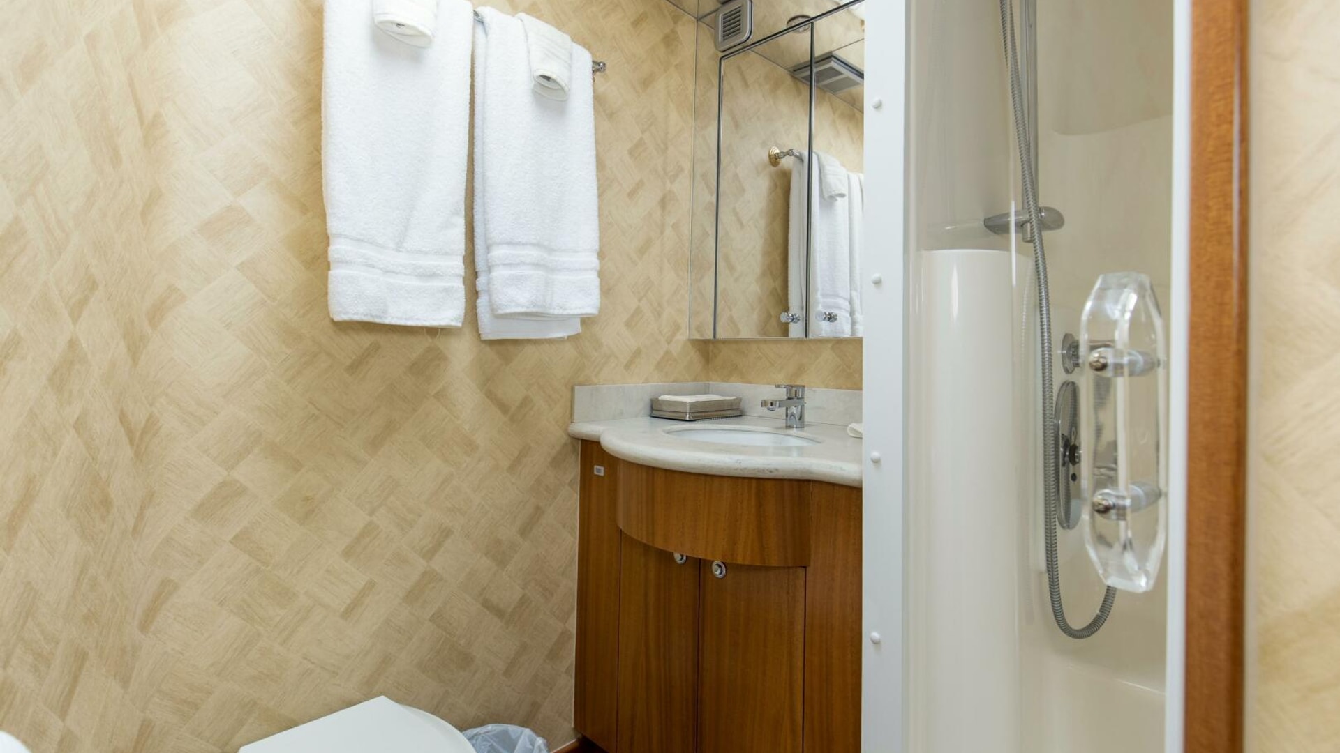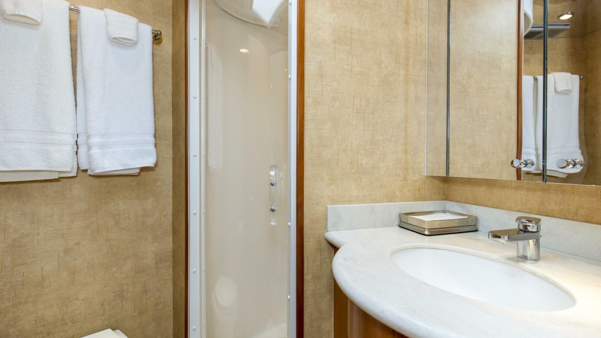 - Air conditioning dispersed through fluted valances, port and starboard
