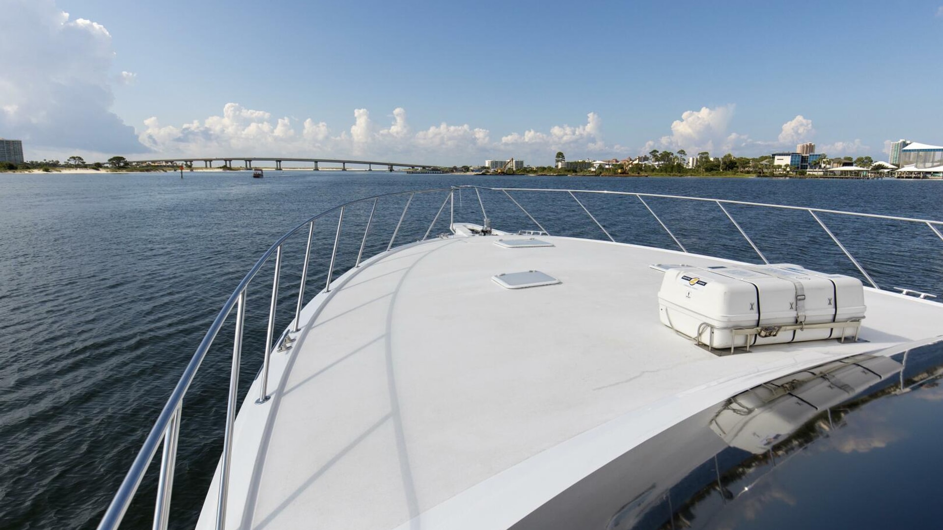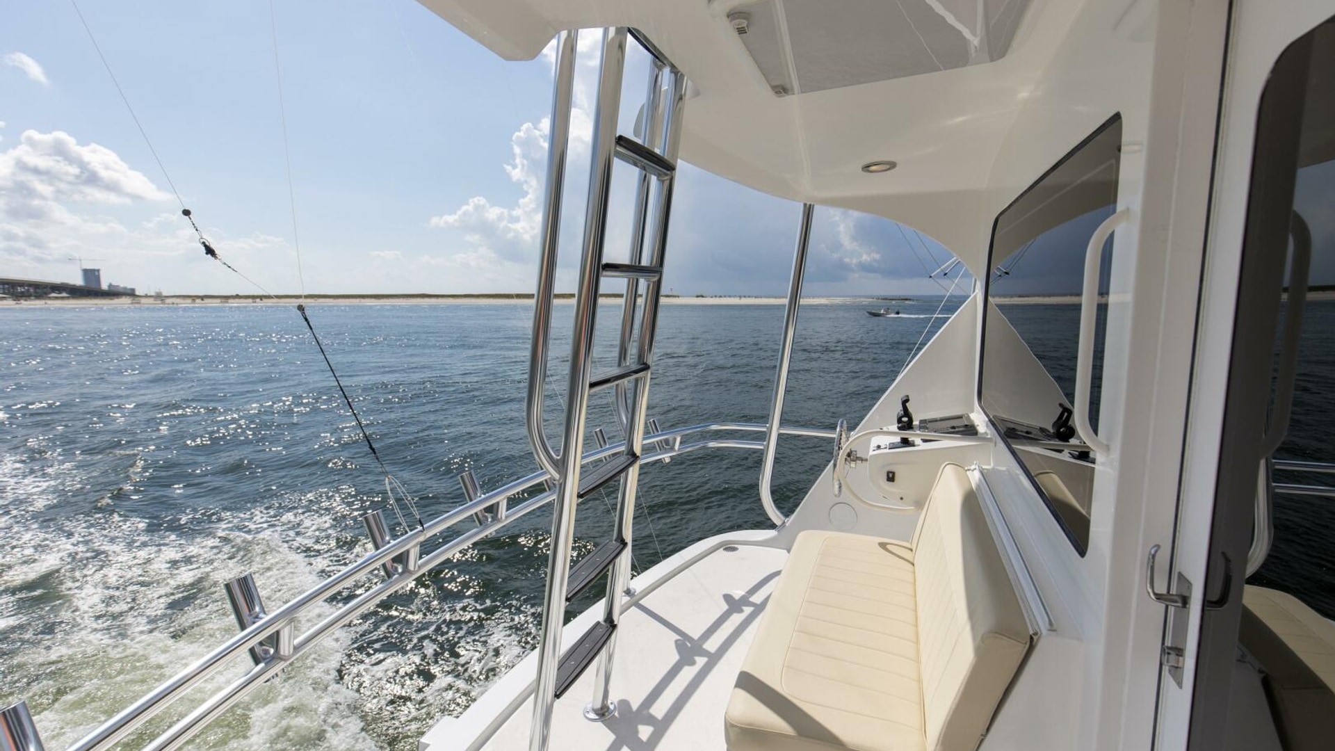 - Powder-coated grab rails on cabin side and flybridge