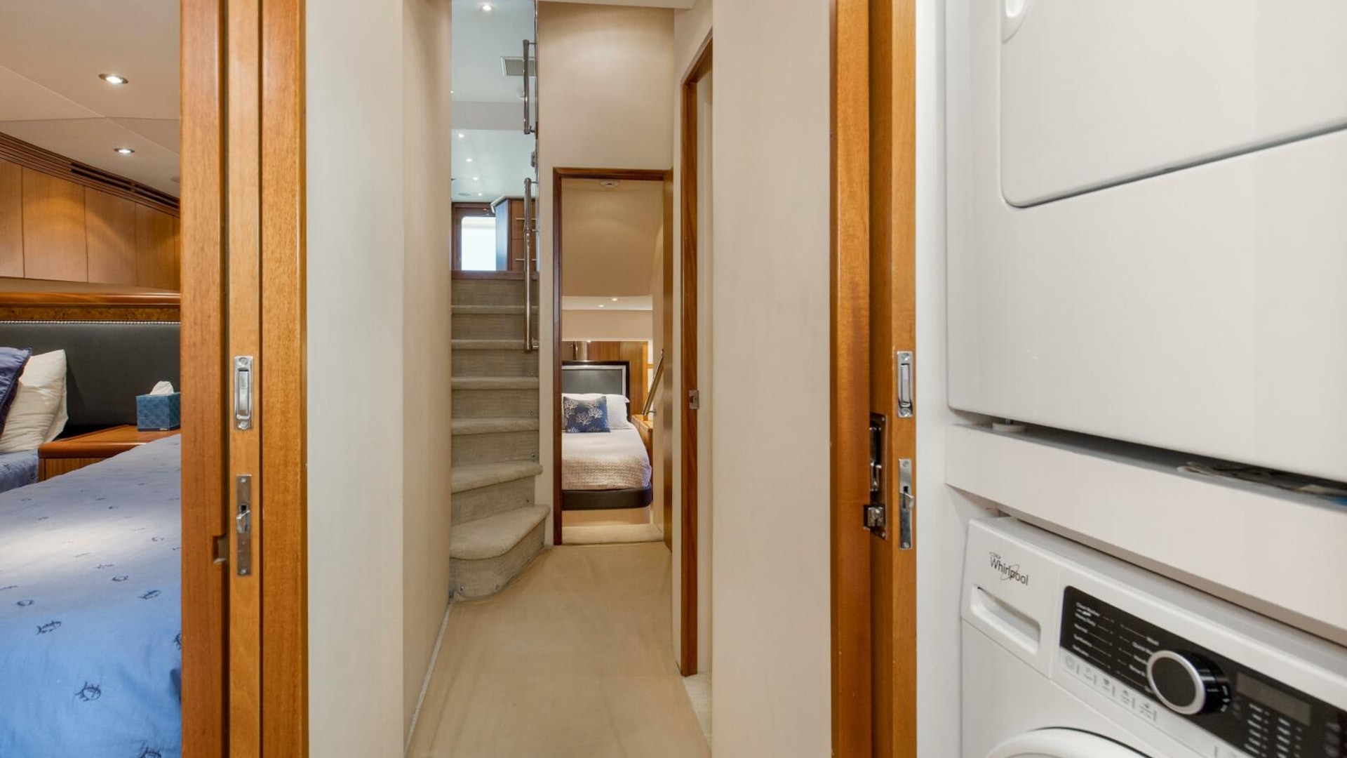 As you egress through to the companionway, you'll notice oversized walkways and doorways like you would see on larger yachts of this class.