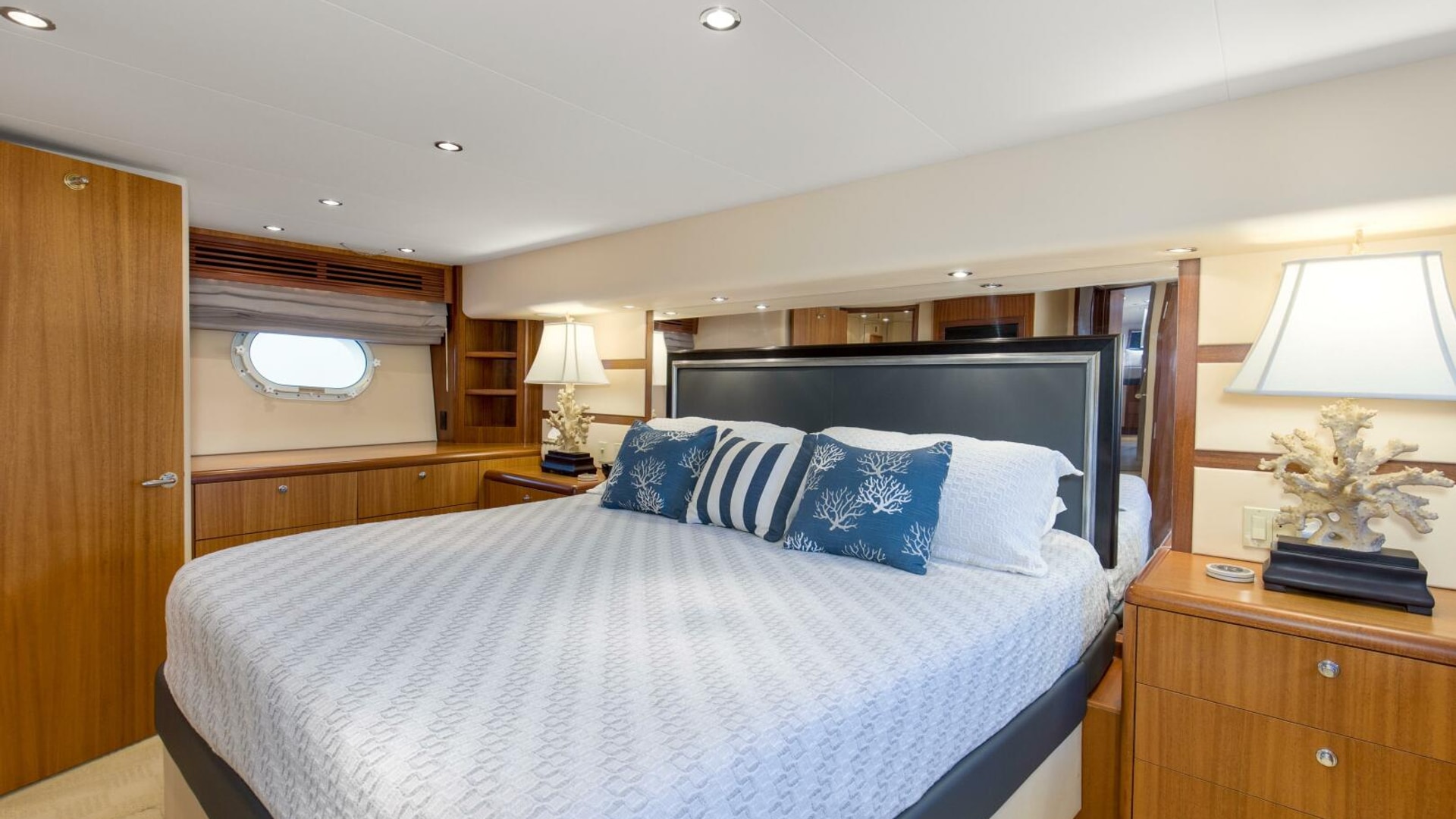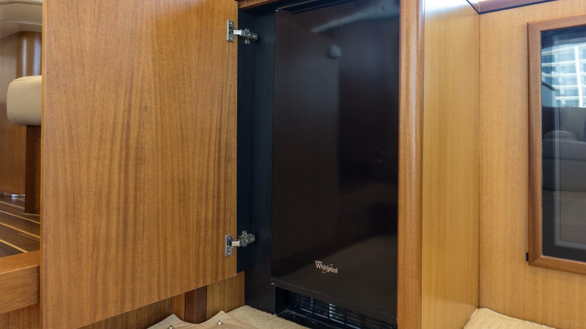 - Finished wood bulkheads with satin finish in genuine African Mahogany