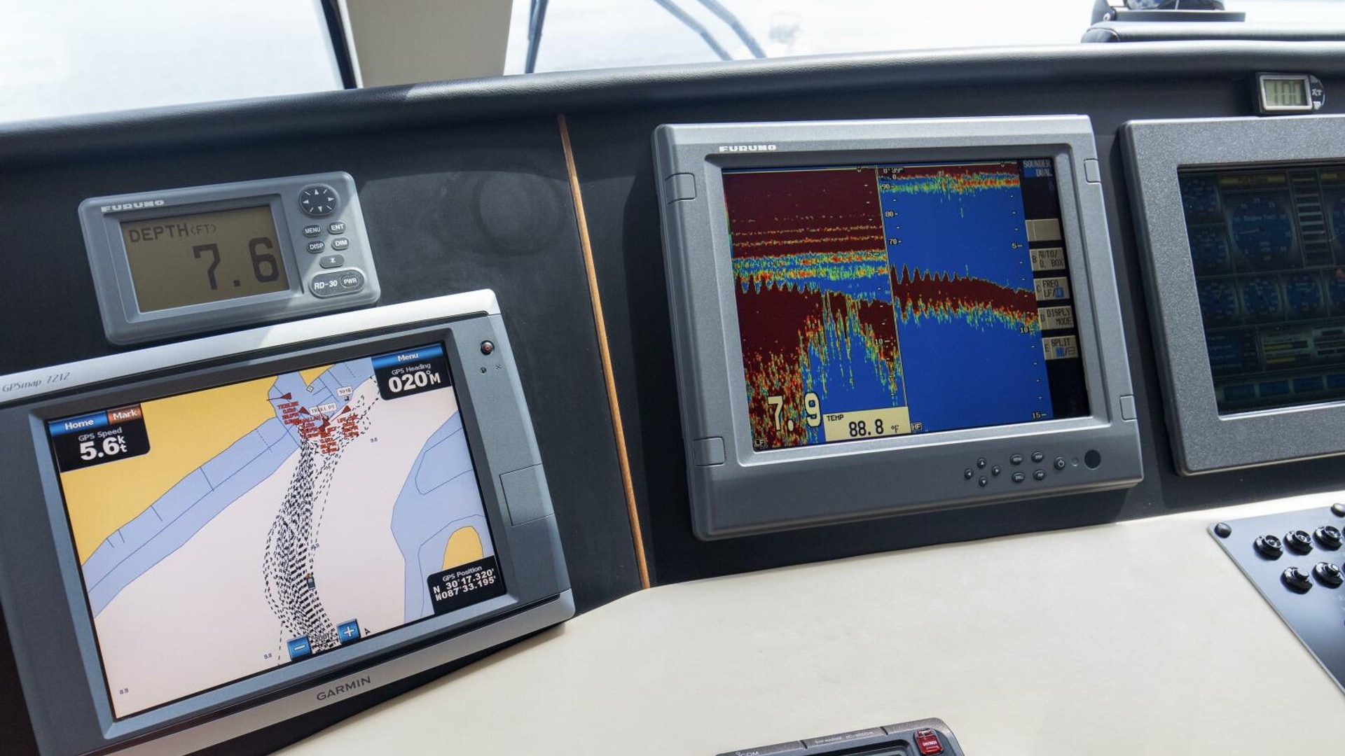 - (1) Furuno Nav Net C-Map NT MAX aft enclosed flybridge helm