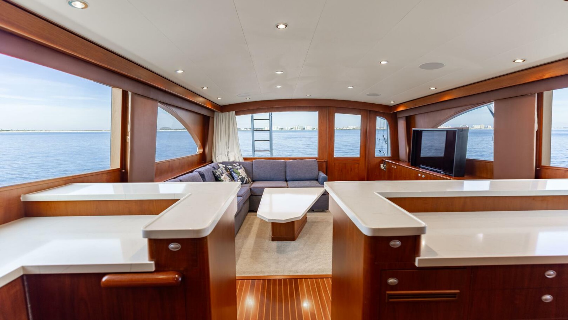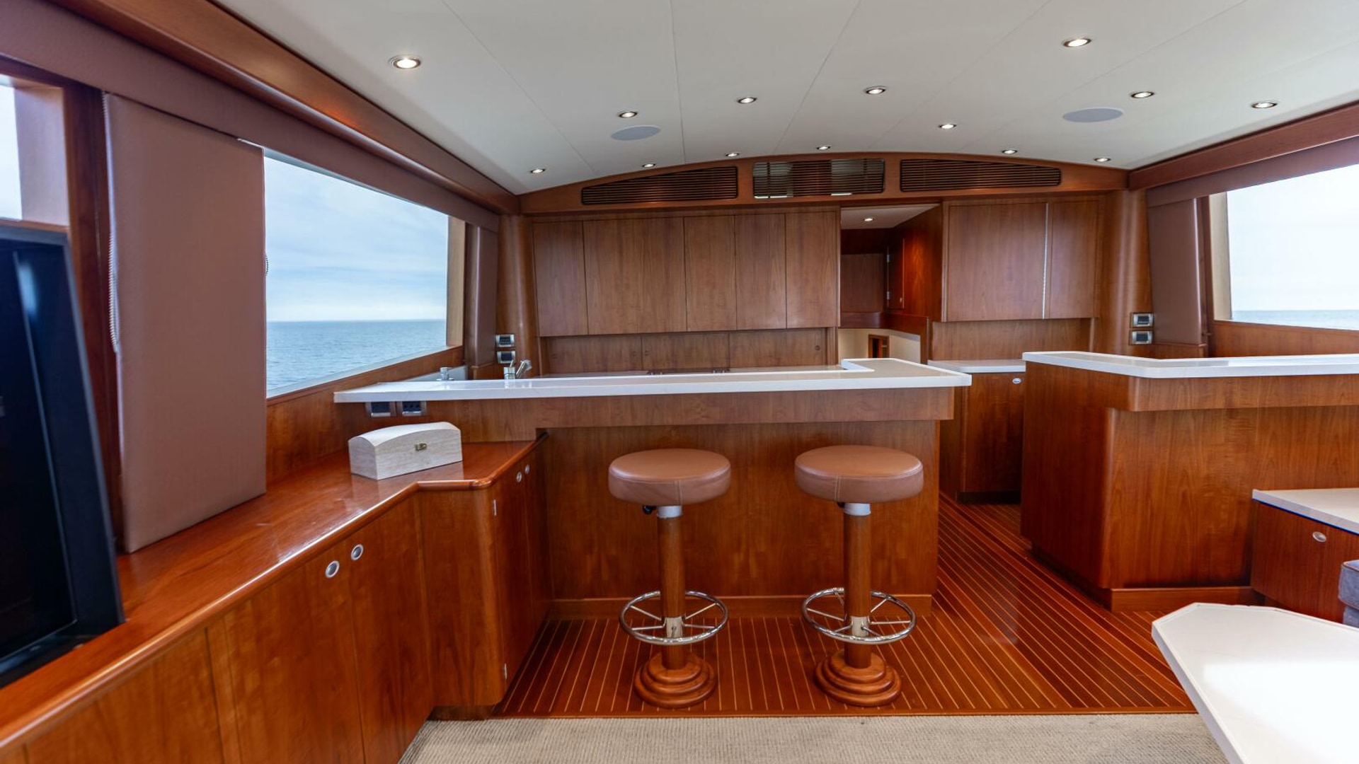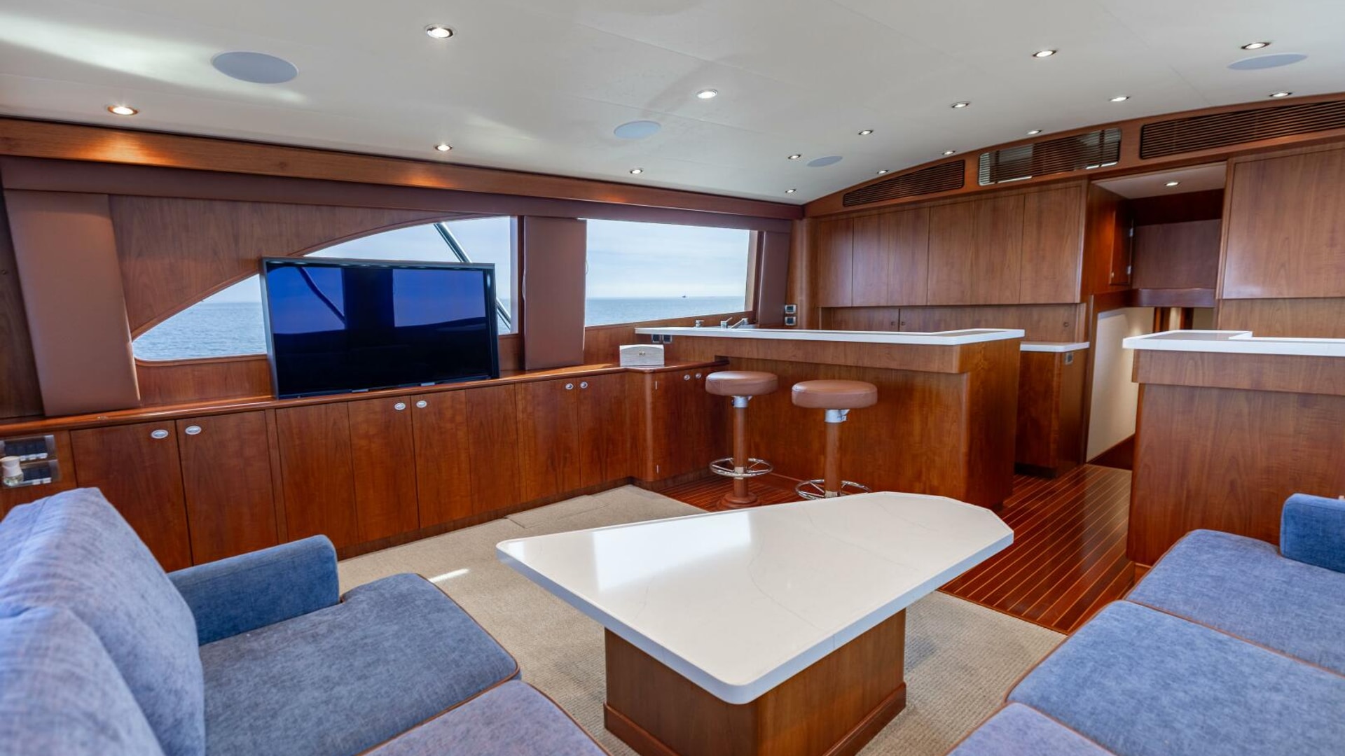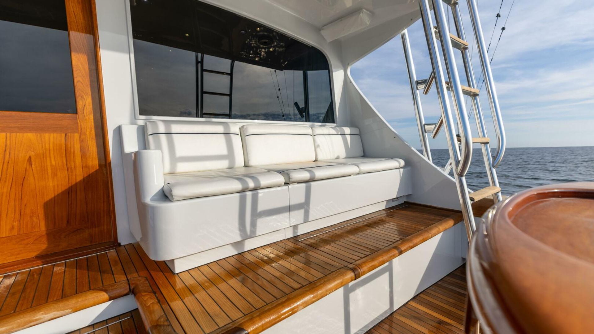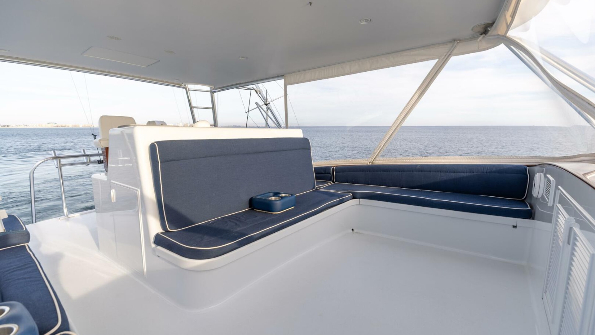 The Bridge layout is quite impressive, with its completely redesigned, updated custom helm area, with all recently updated electronics as well. This area is fully air-conditioned and offers seating for 10 people. EZ2CY enclosure, Full PB Tower With Hardtop, RUPP riggers, and Faux Teak by Monique.