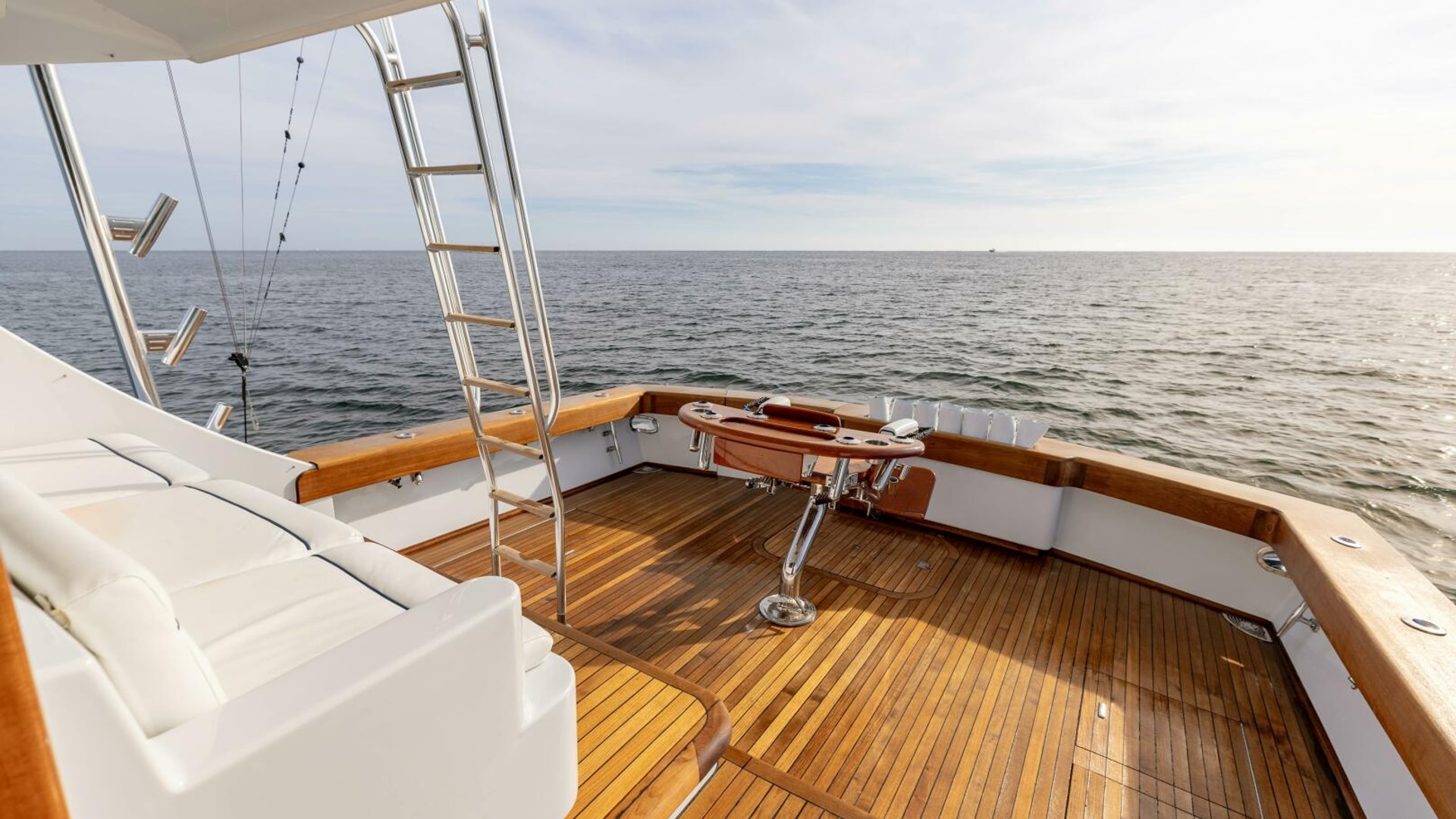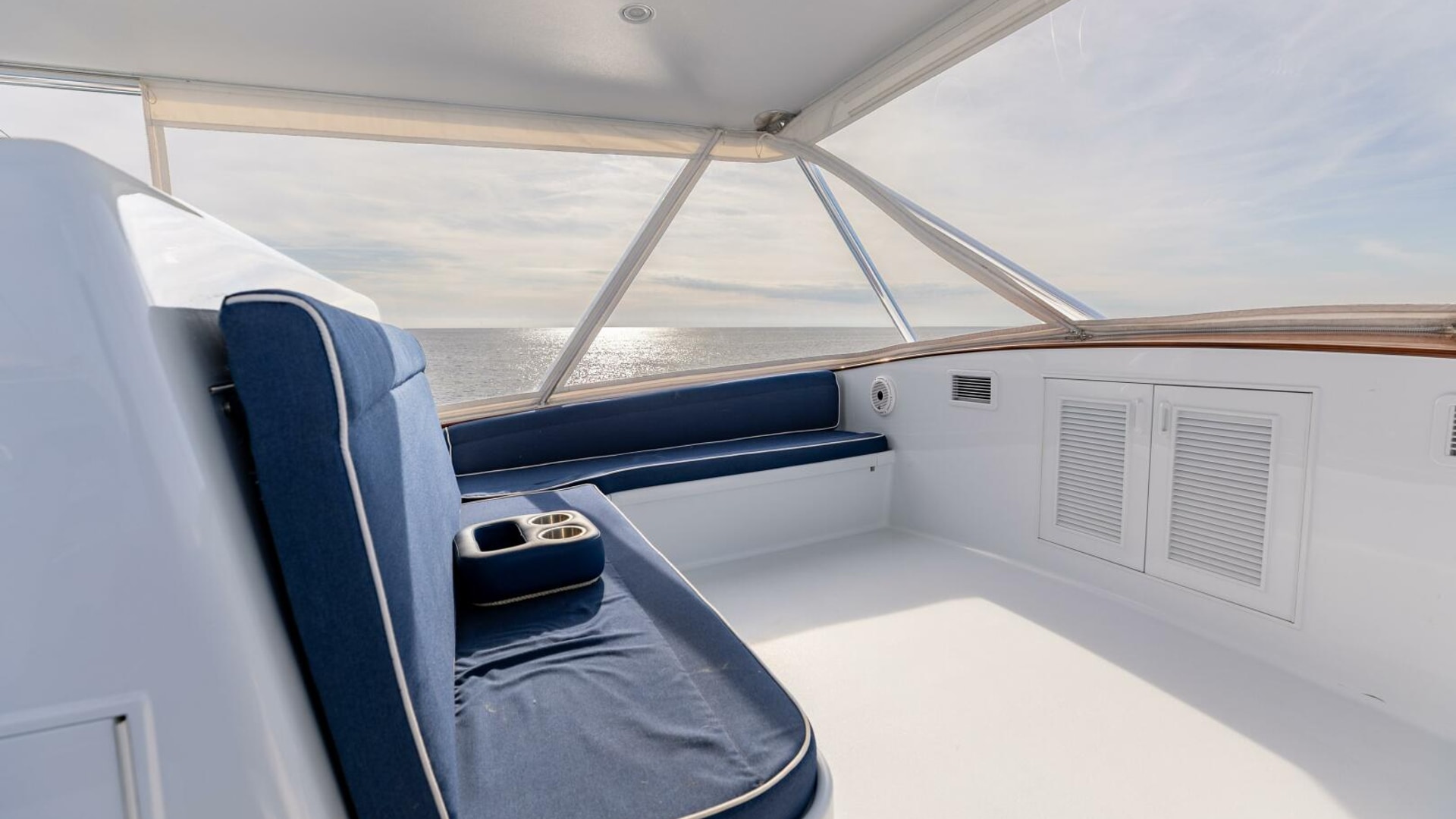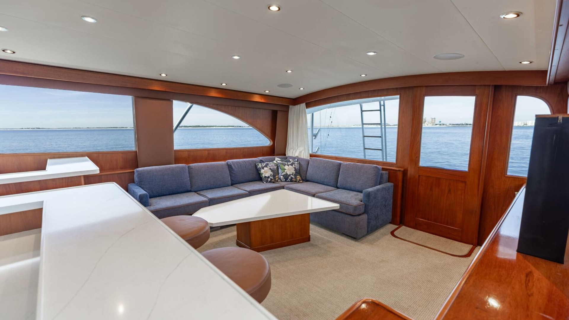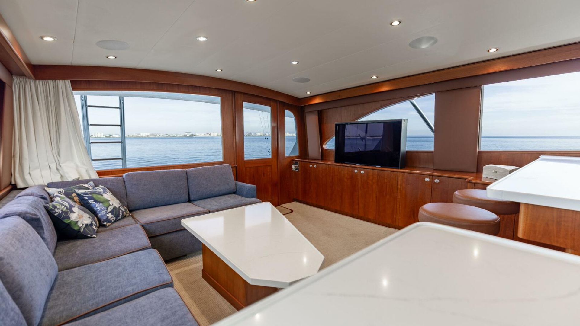 The Bridge layout is quite impressive, with its completely redesigned, updated custom helm area, with all recently updated electronics as well. This area is fully air-conditioned and offers seating for 10 people. EZ2CY enclosure, Full PB Tower With Hardtop, RUPP riggers, and Faux Teak by Monique.