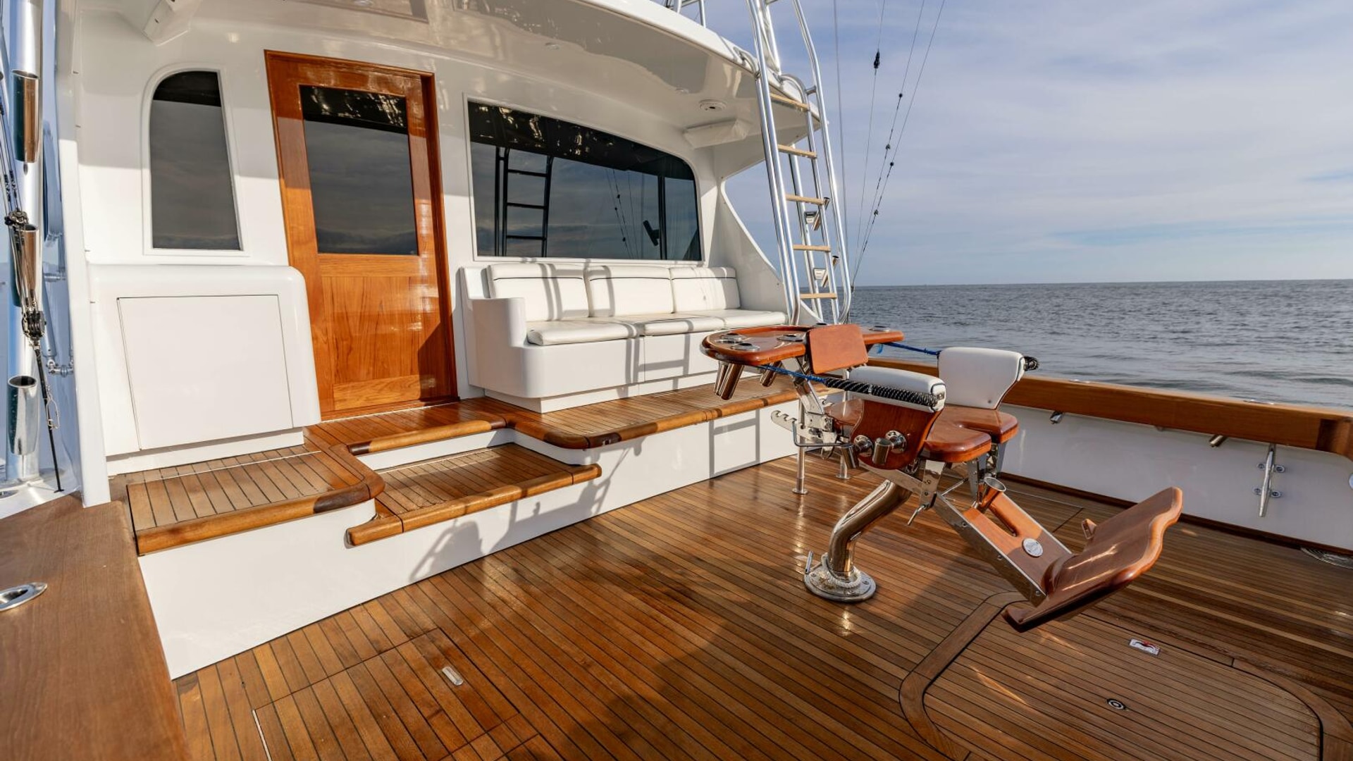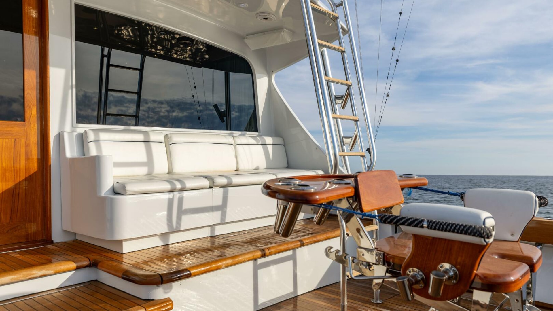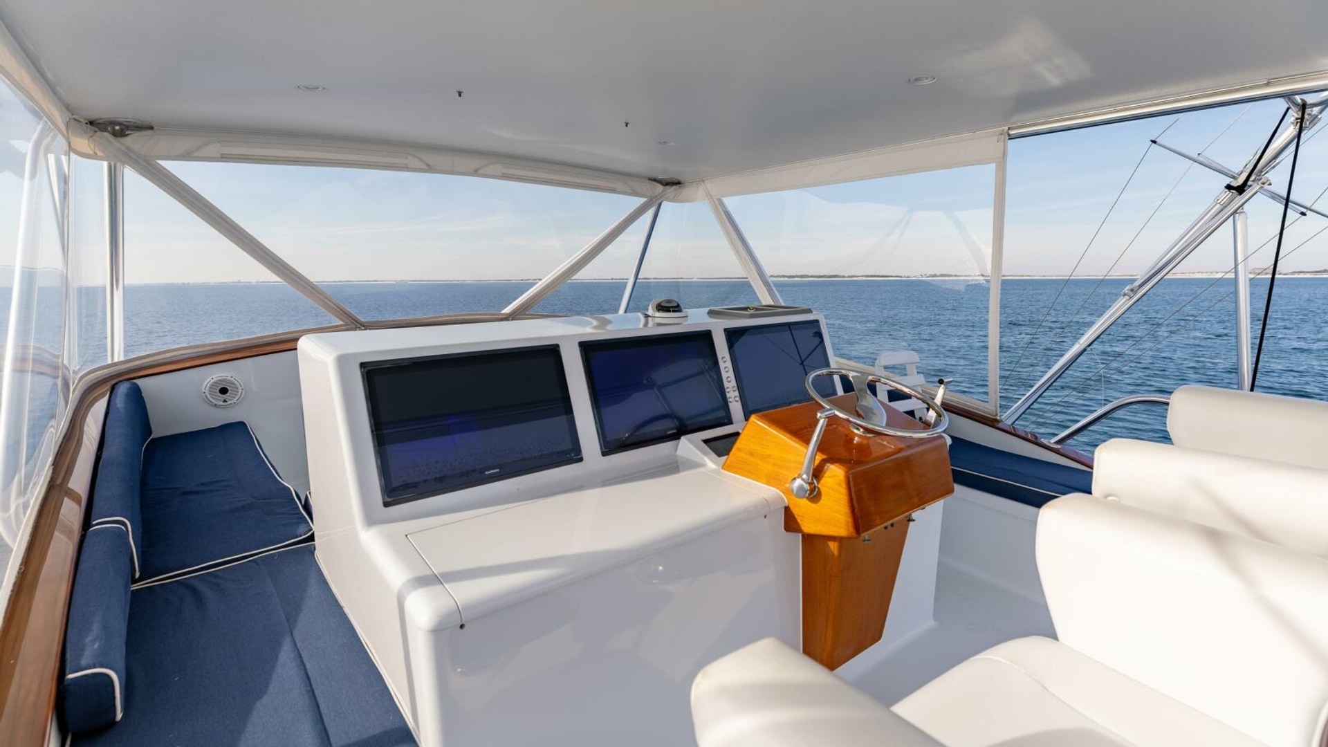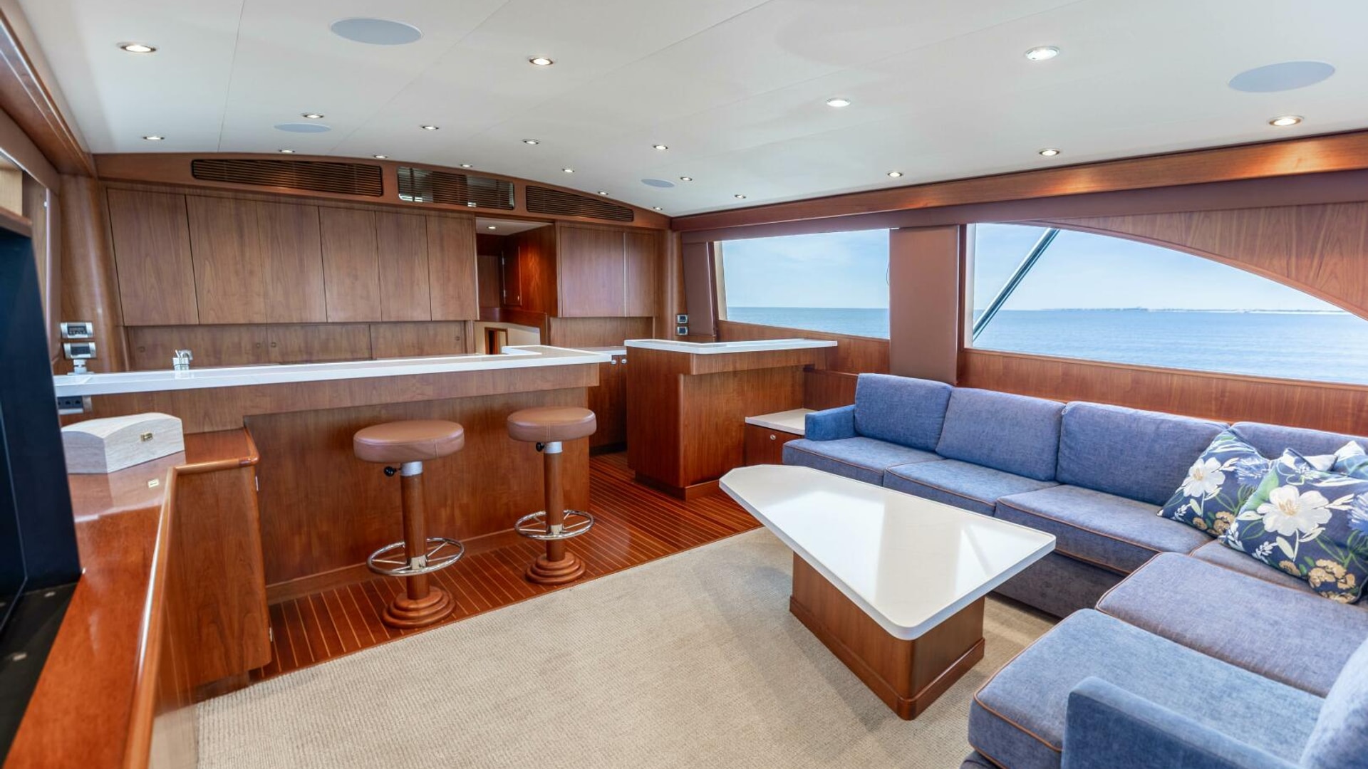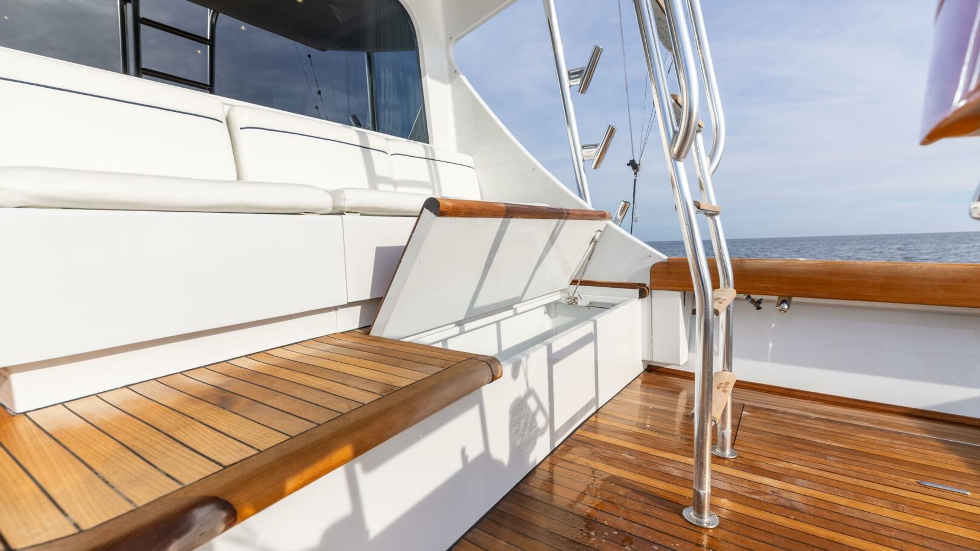 The Bridge layout is quite impressive, with its completely redesigned, updated custom helm area, with all recently updated electronics as well. This area is fully air-conditioned and offers seating for 10 people. EZ2CY enclosure, Full PB Tower With Hardtop, RUPP riggers, and Faux Teak by Monique.