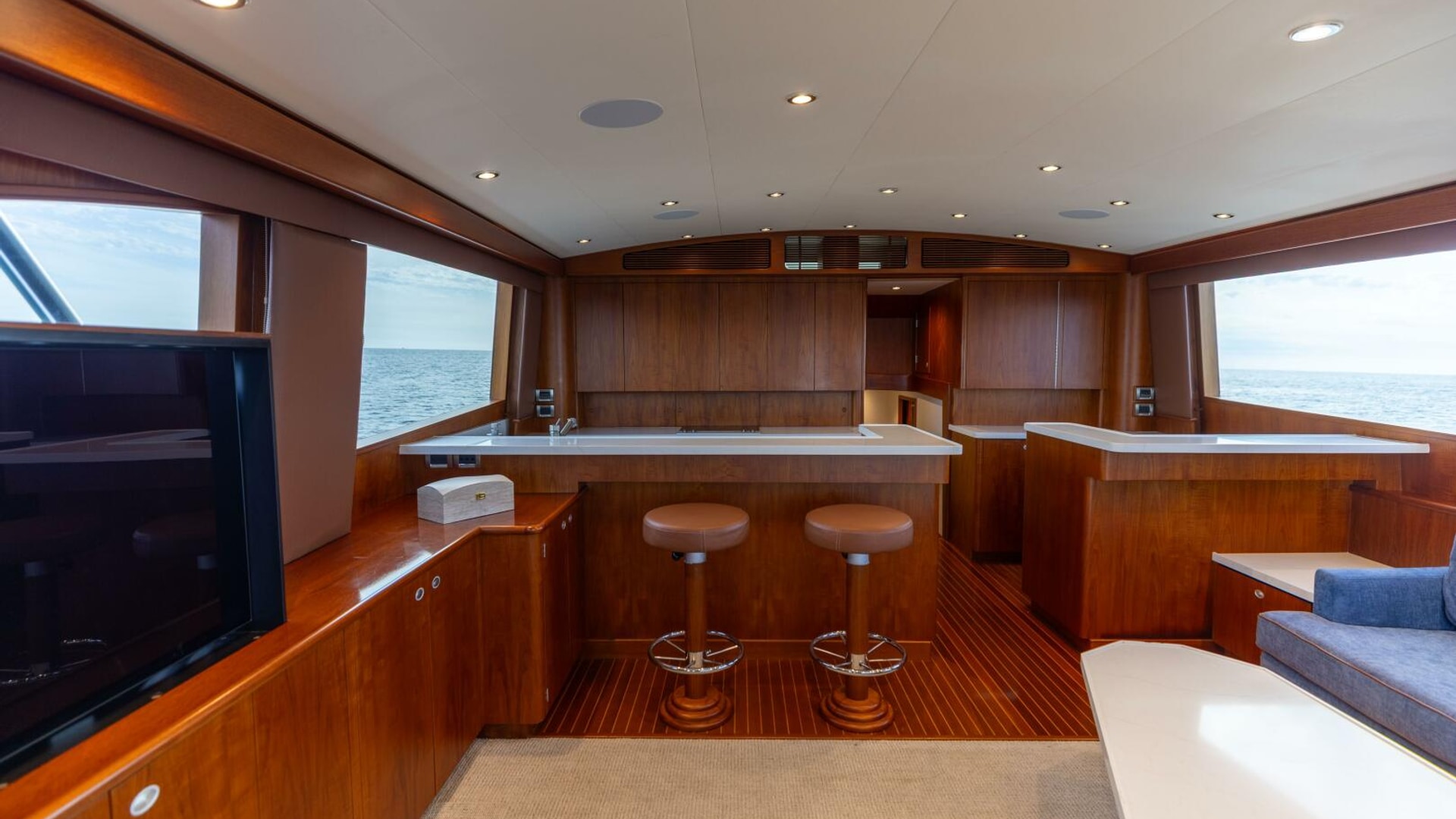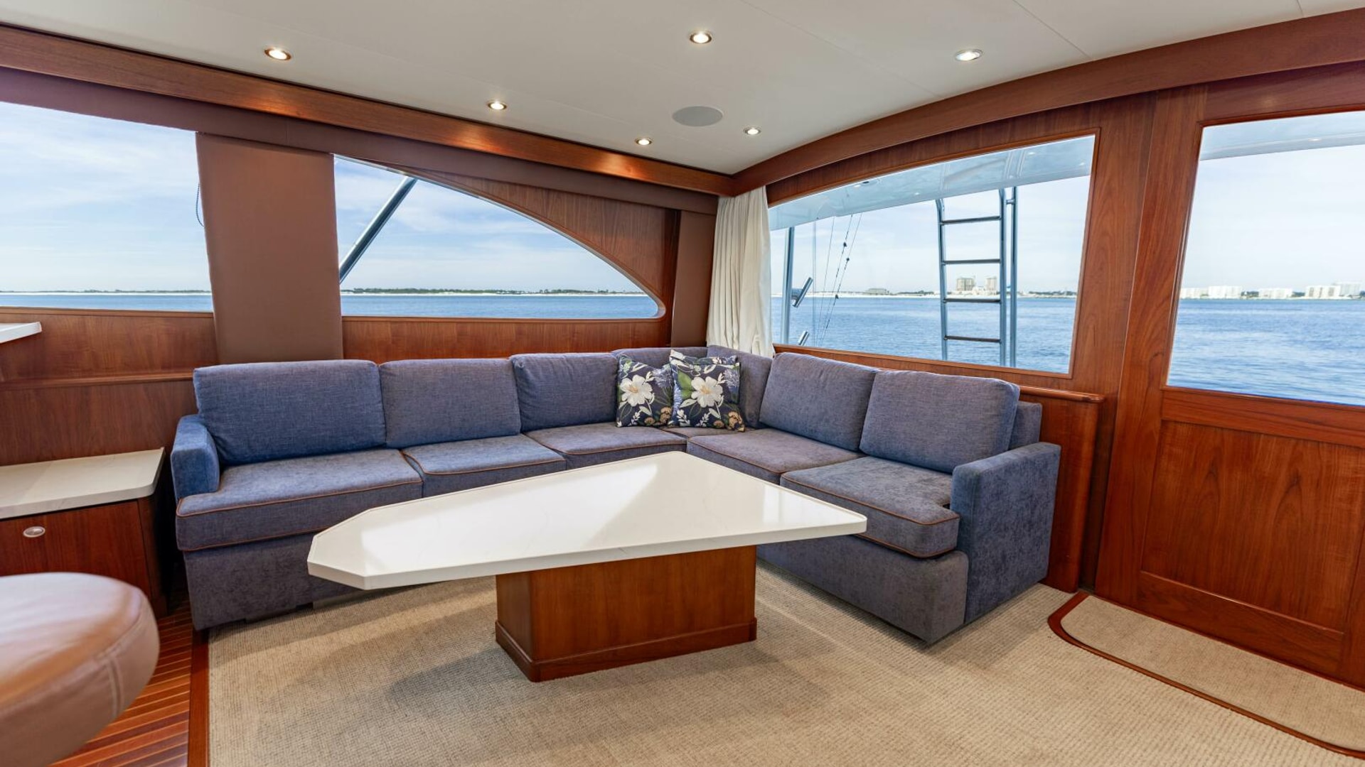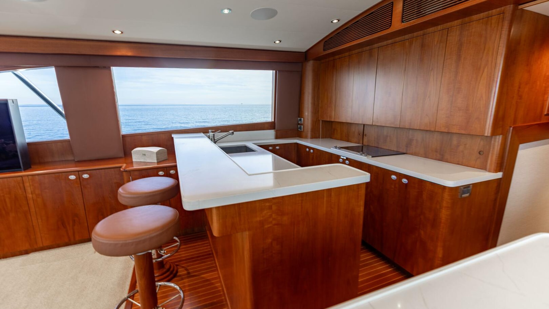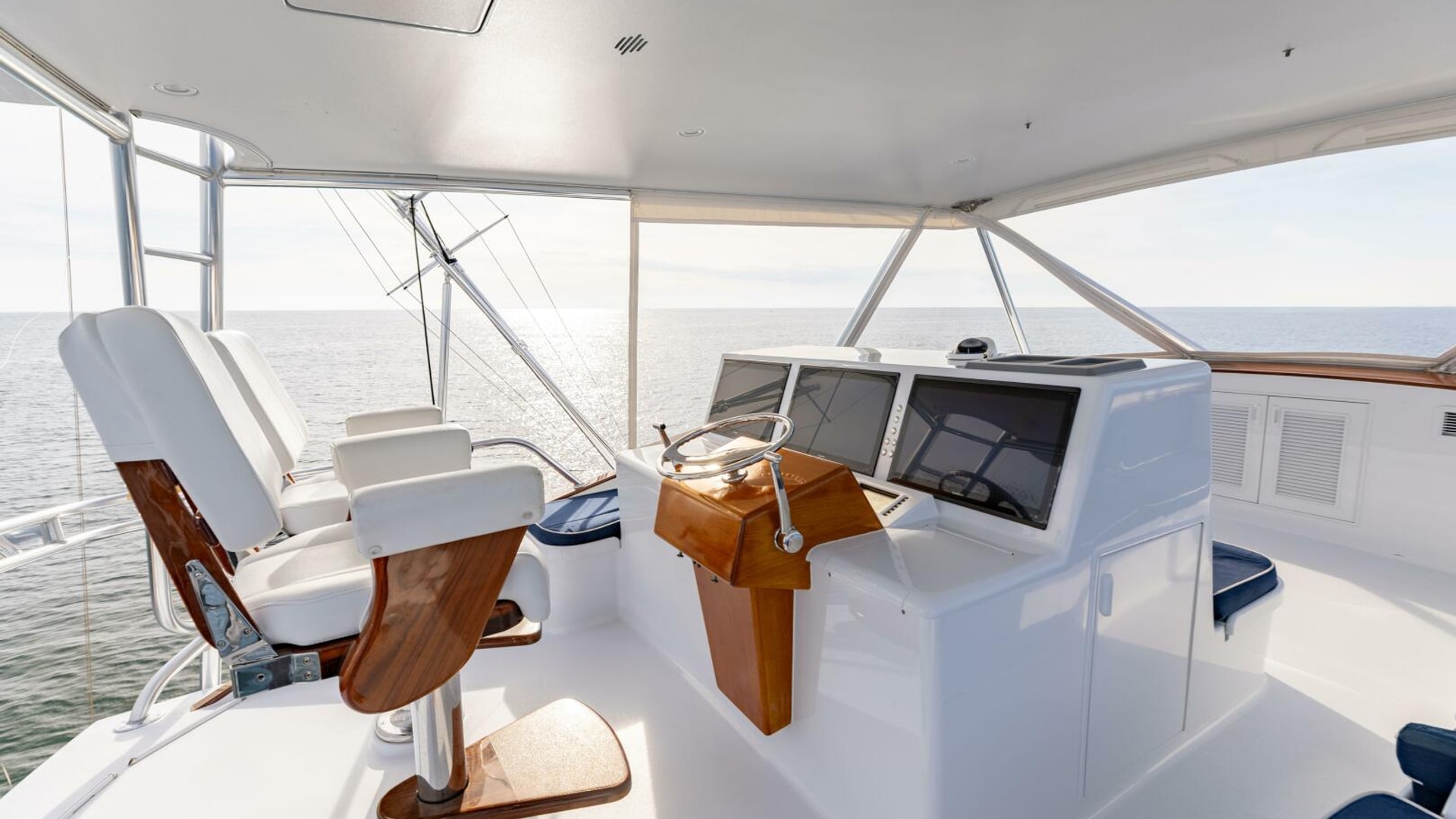 The Bridge layout is quite impressive, with its completely redesigned, updated custom helm area, with all recently updated electronics as well. This area is fully air-conditioned and offers seating for 10 people. EZ2CY enclosure, Full PB Tower With Hardtop, RUPP riggers, and Faux Teak by Monique.