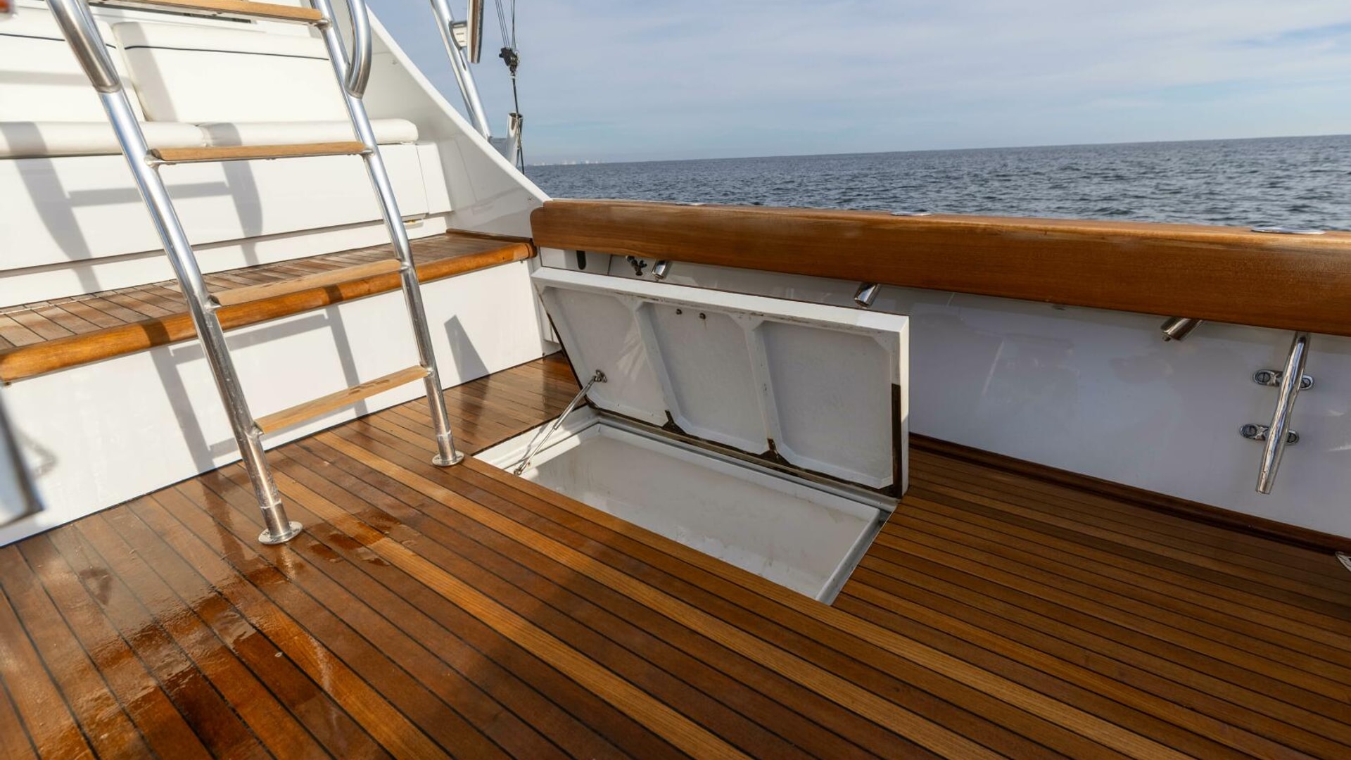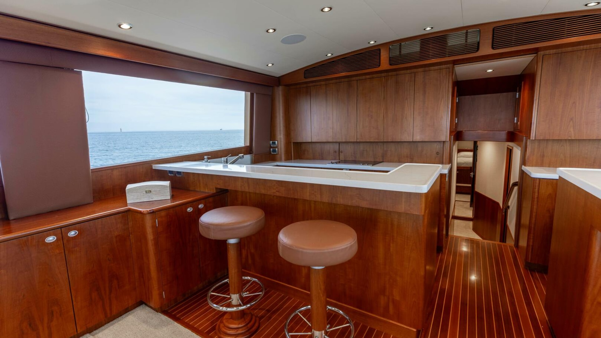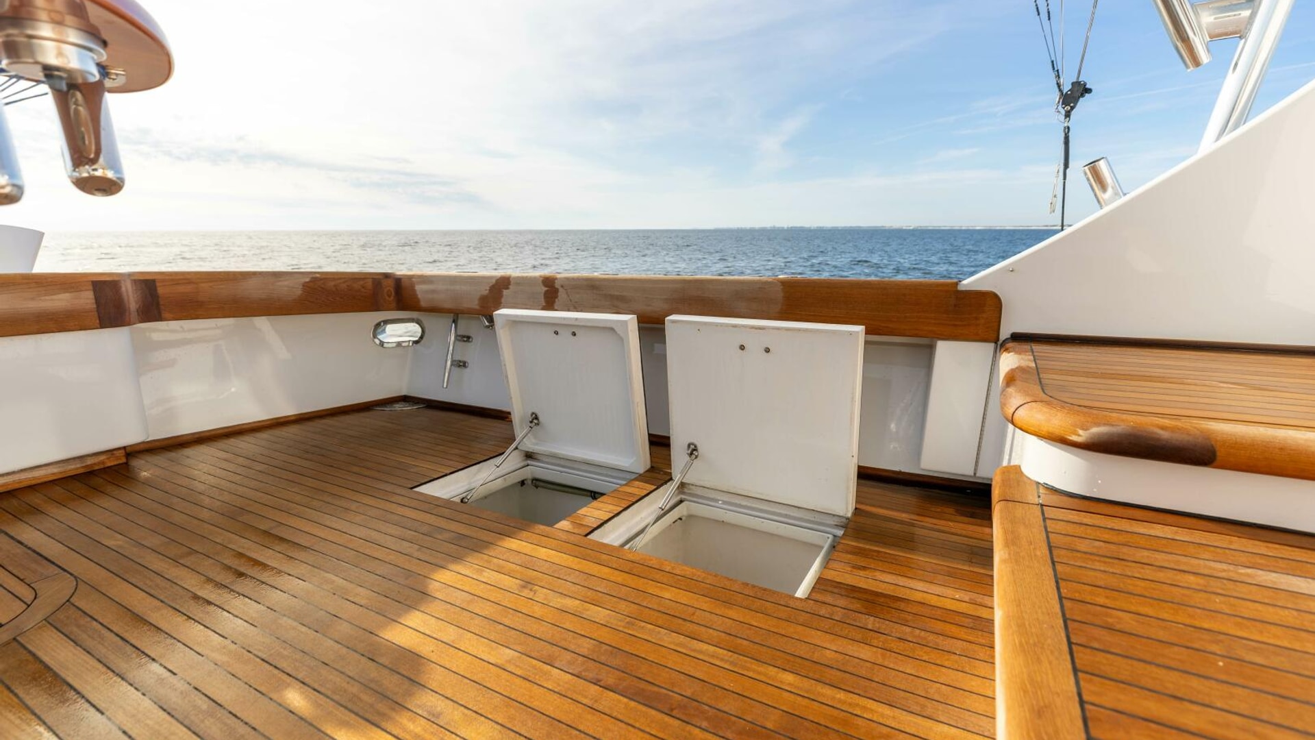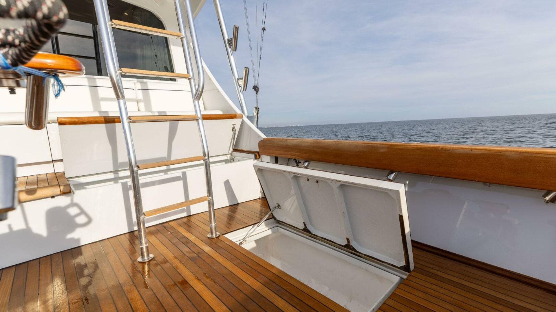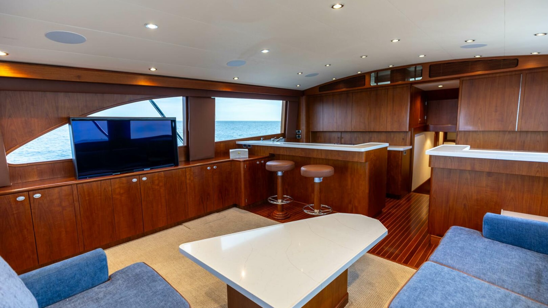 The Bridge layout is quite impressive, with its completely redesigned, updated custom helm area, with all recently updated electronics as well. This area is fully air-conditioned and offers seating for 10 people. EZ2CY enclosure, Full PB Tower With Hardtop, RUPP riggers, and Faux Teak by Monique.