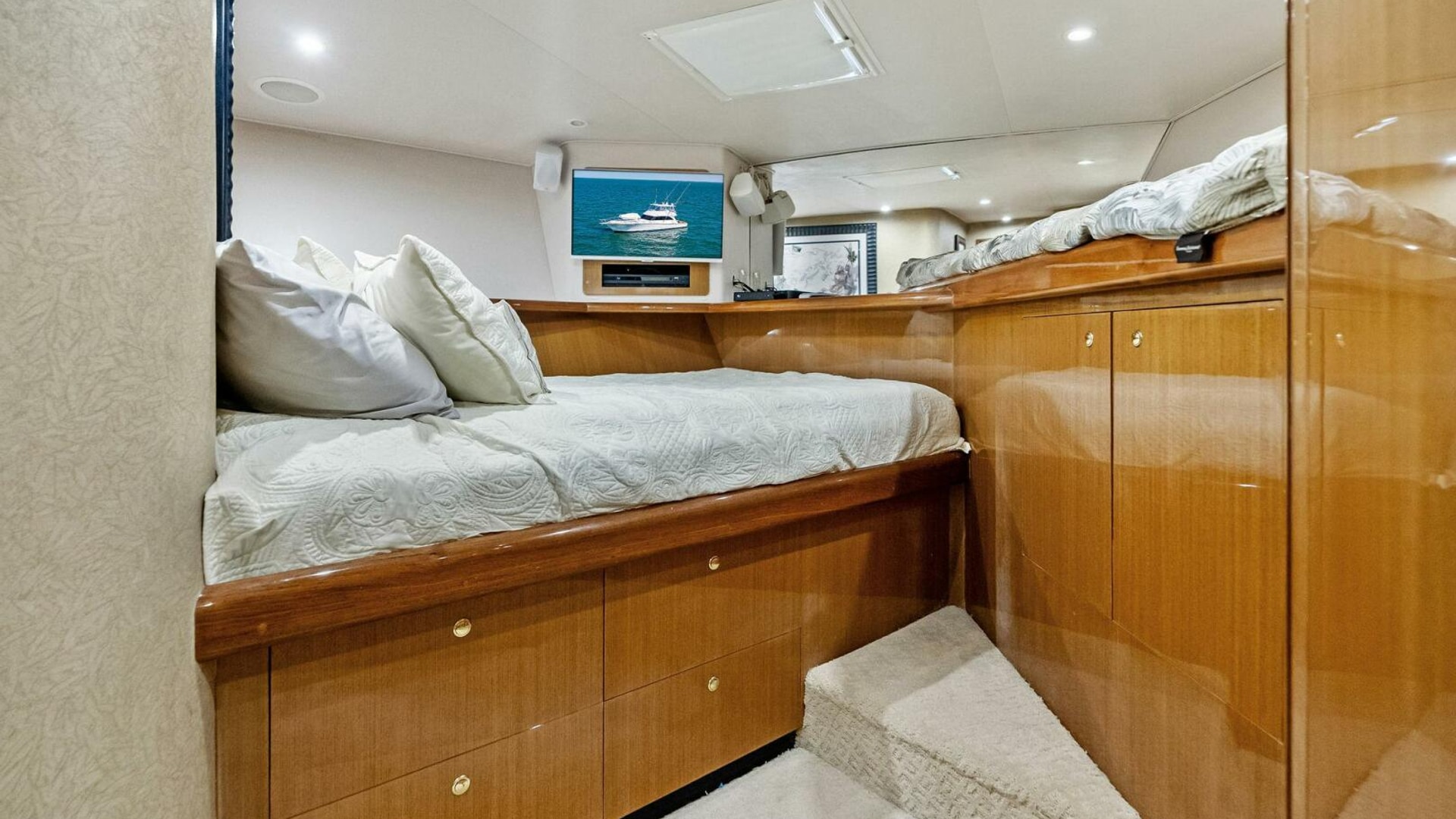 - Custom Layout with Double Bed to Port and Single Upper Berth to Starboard