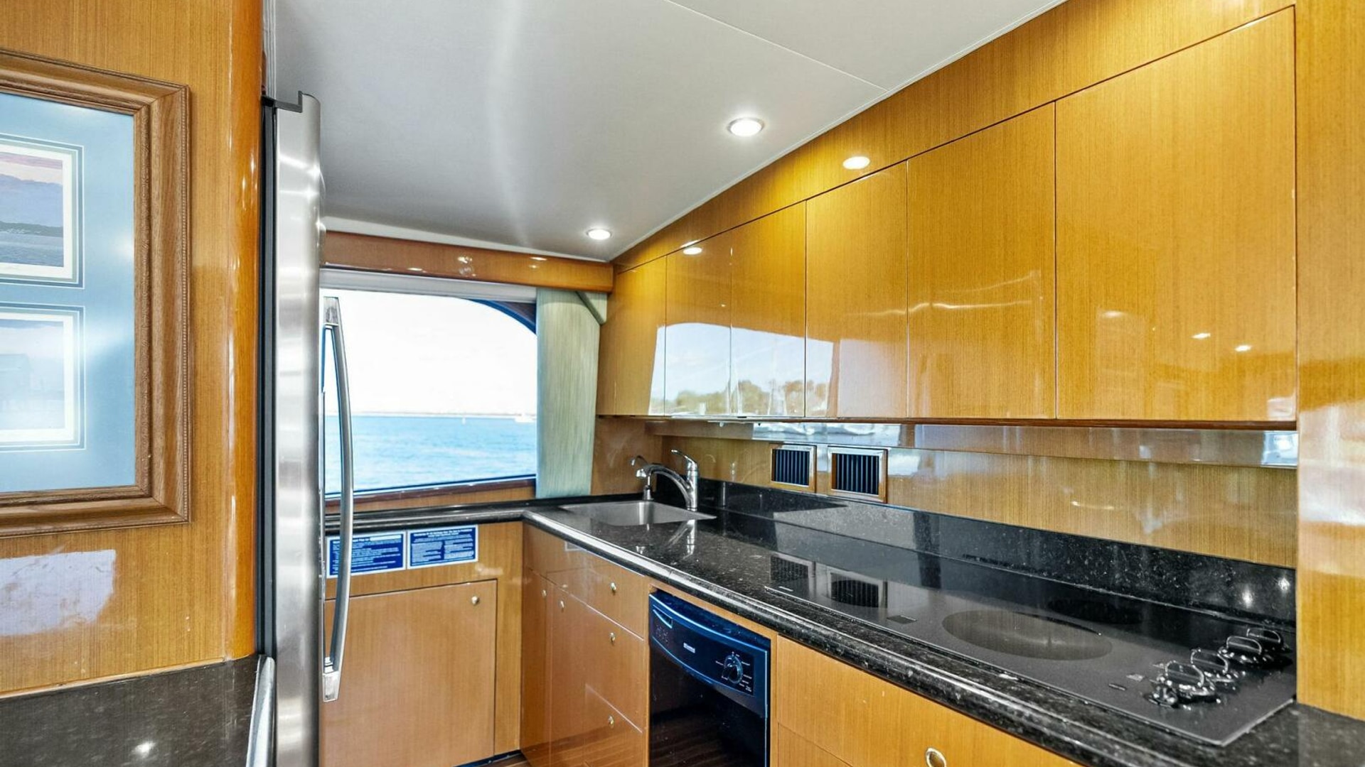 - High-gloss Wood Cabinetry with Roll-out Shelving