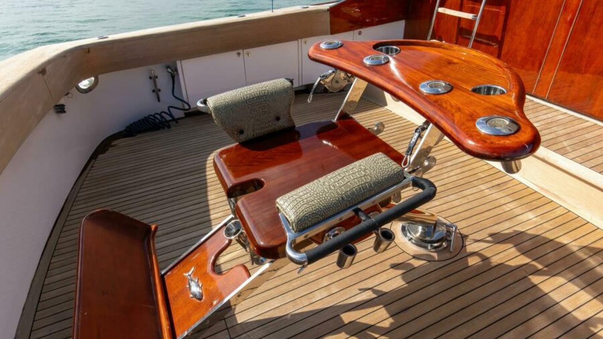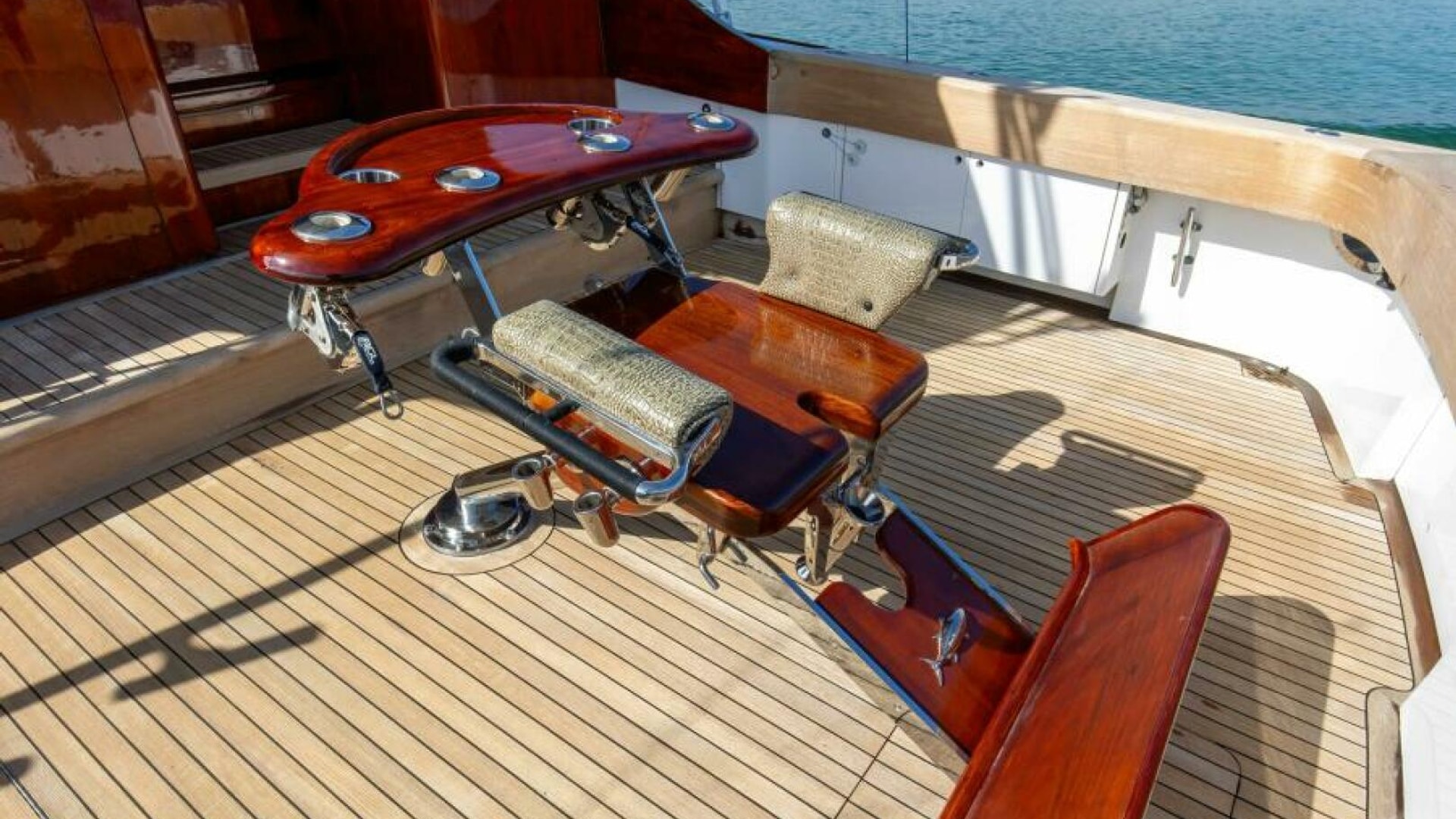 - Fighting Chairs - The Blue Water chairs with a footrest and a (4) rod holder launcher on backrest, well mounted on centerline in cockpit