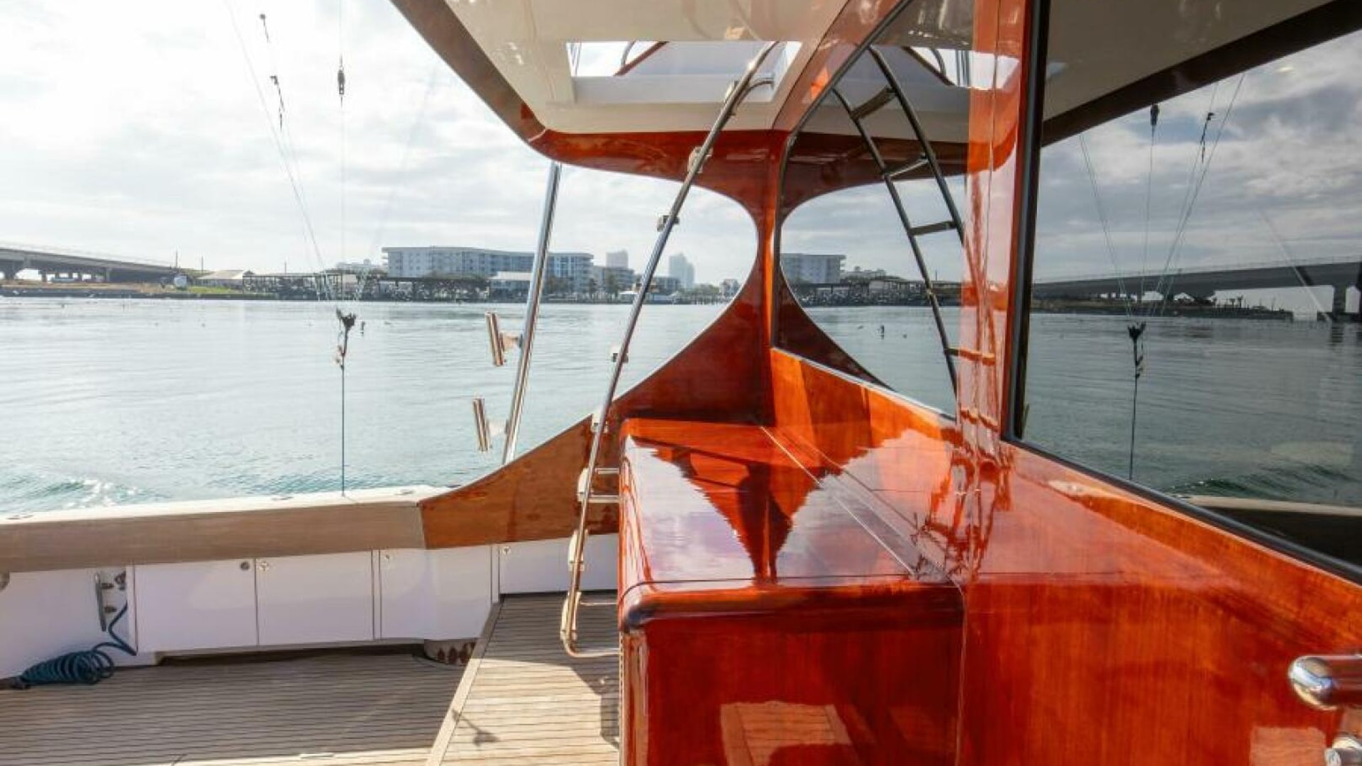 - Hull constructed of laminating techniques using triaxial and quad-axial fiberglass over cold molded Western Red Cedar Wood