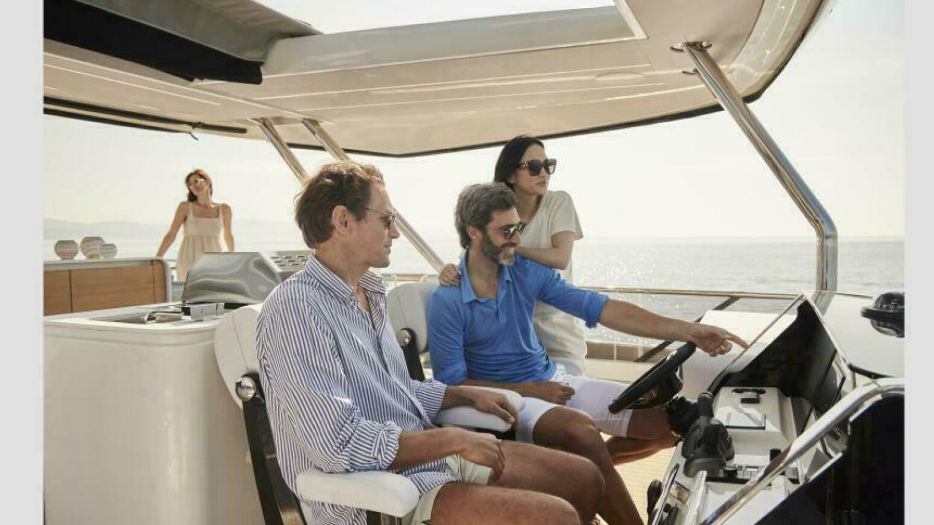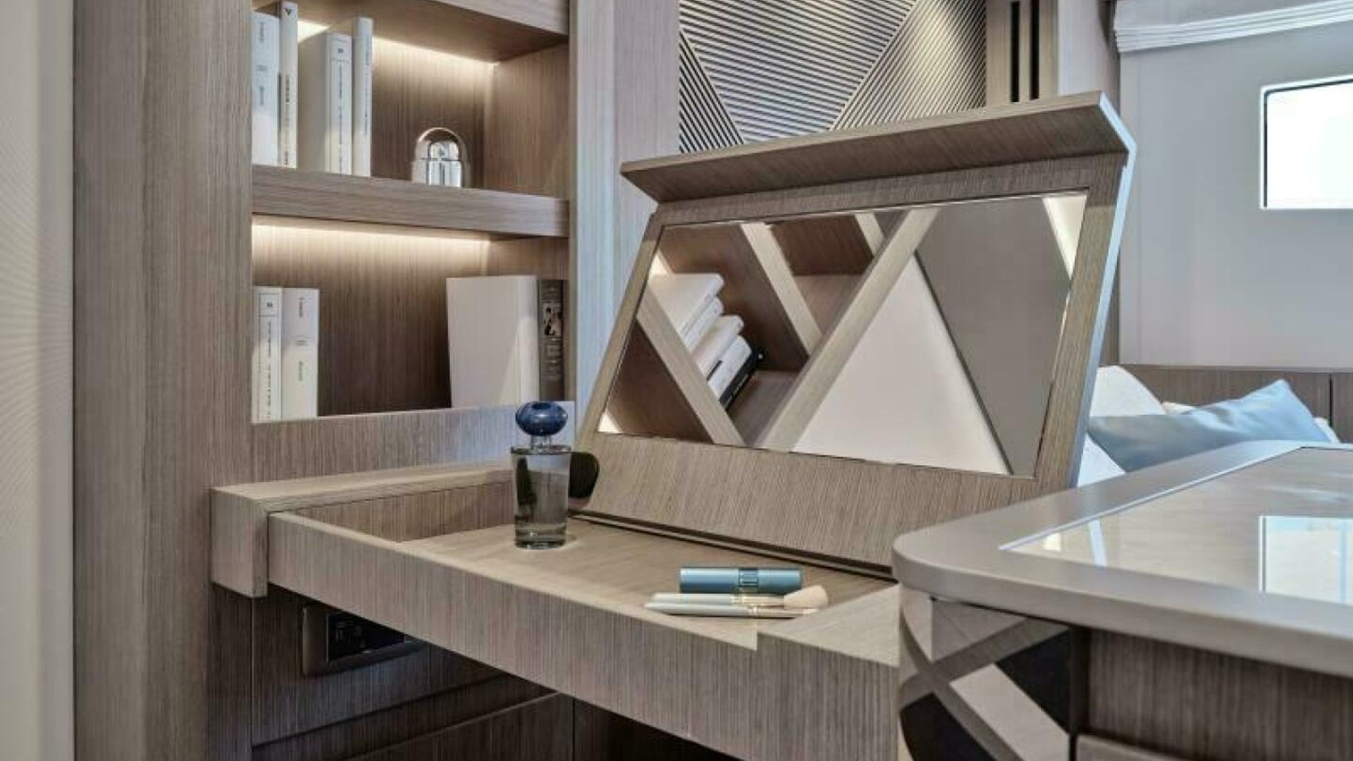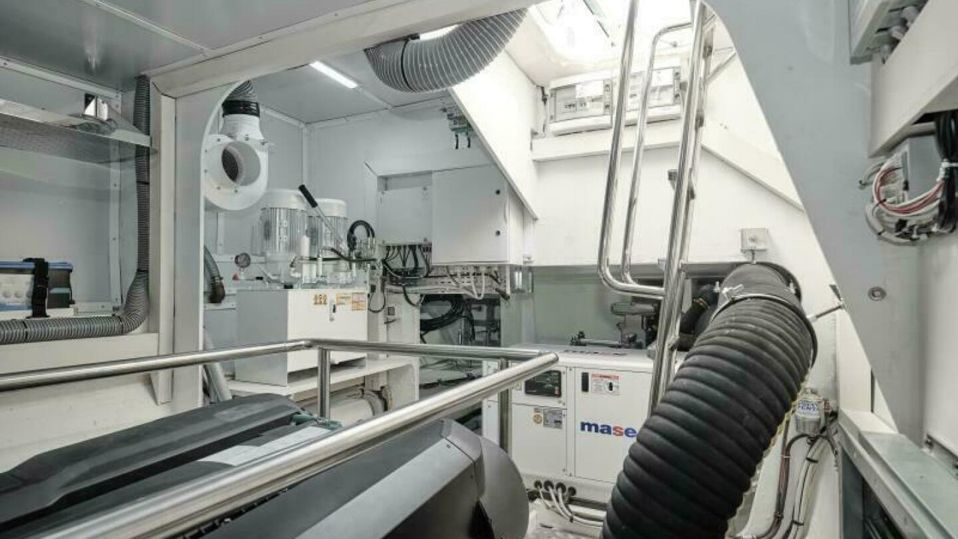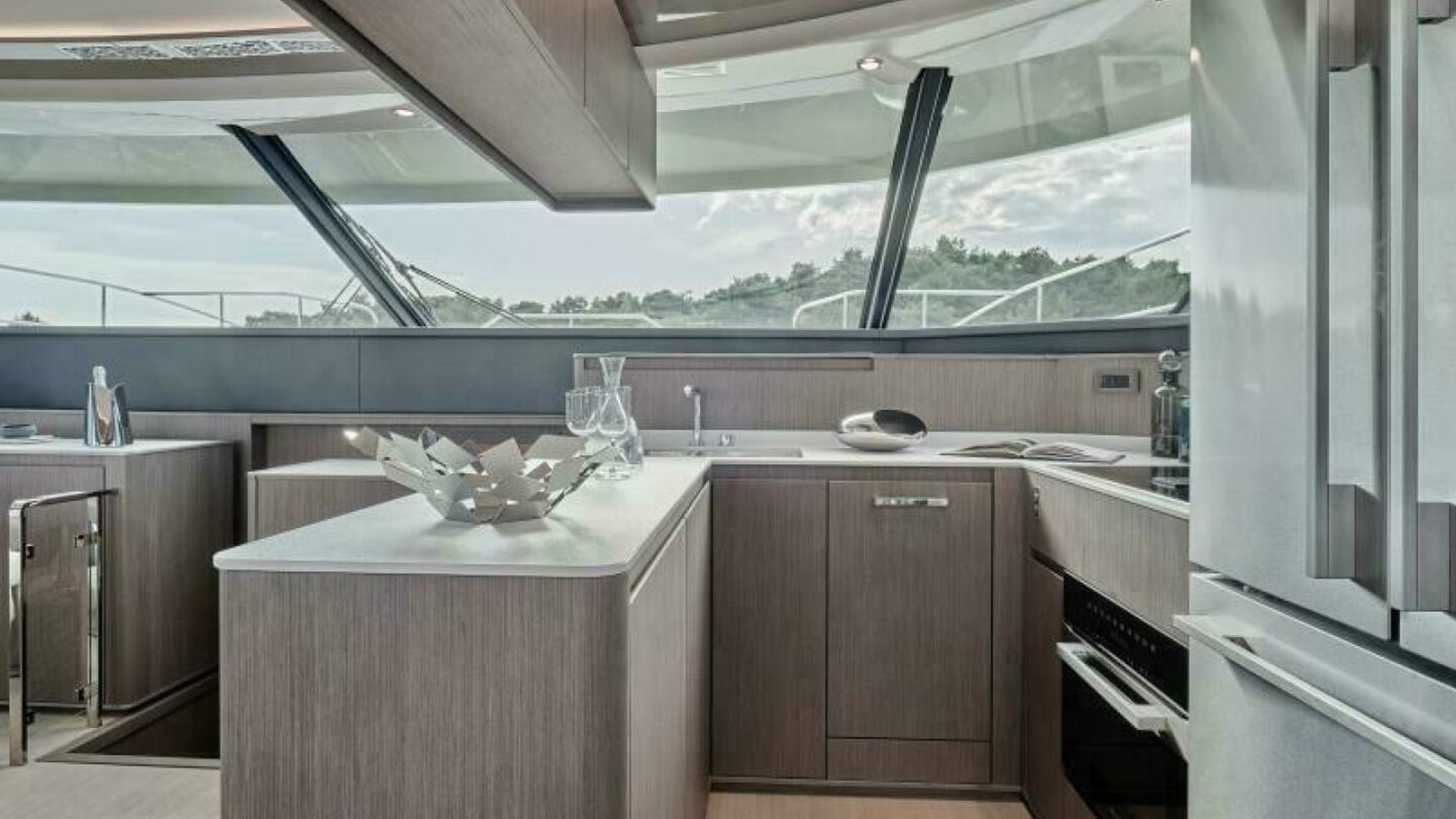 North American Package: Maindeck protective covers: Cockpit sofa and forward lounge cushions, Flybridge protective covers: sofa, helm console and seats, table, fly searchlight and rear docking lights, Ice maker in cockpit, Kenyon grill XXL at the flybridge galley, Dual fuel/water separators with alarm.