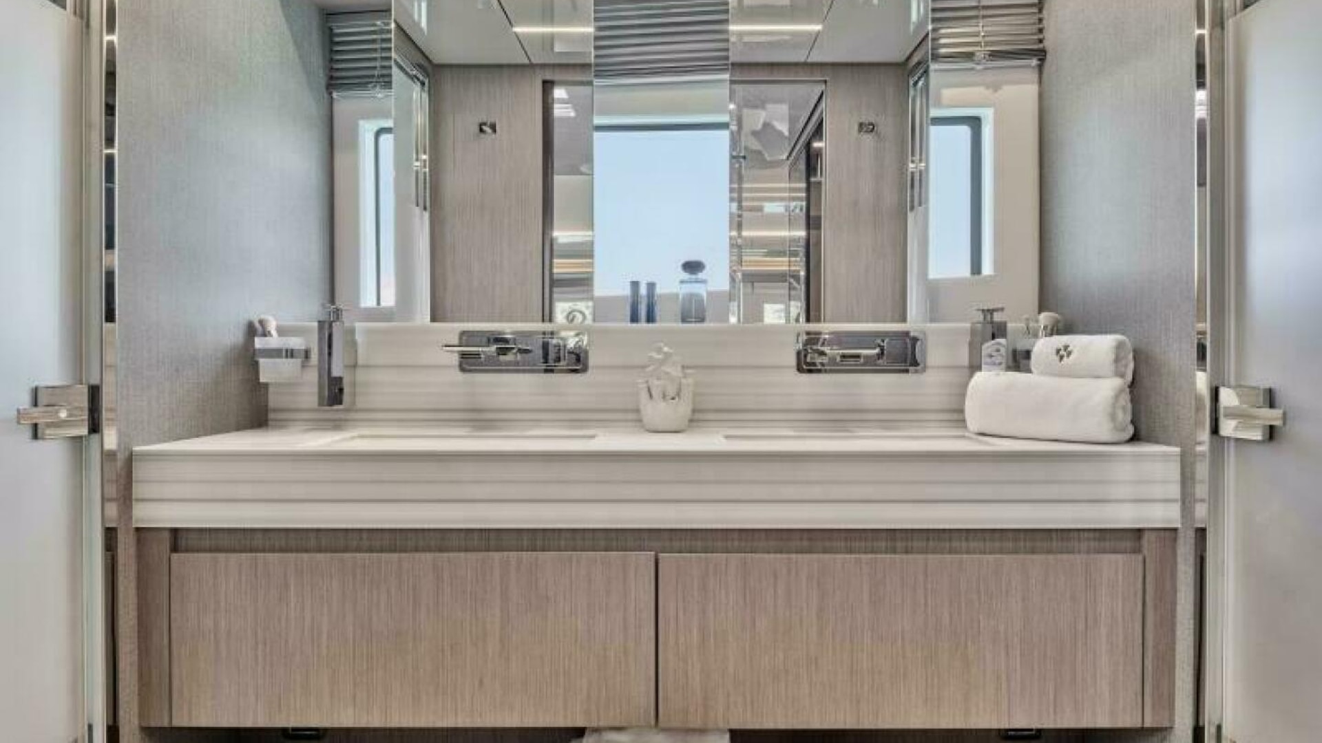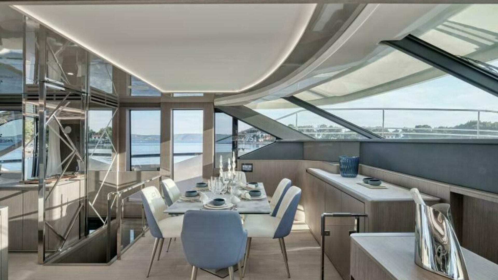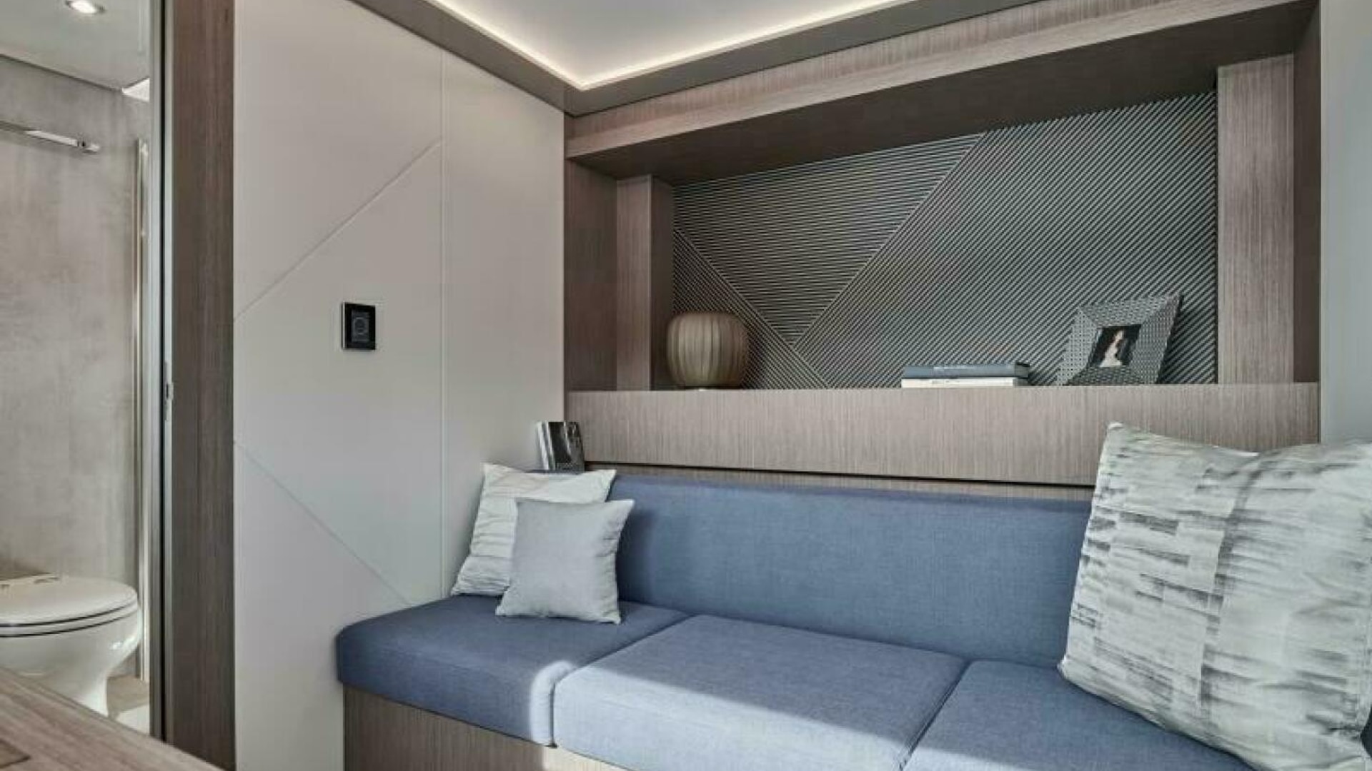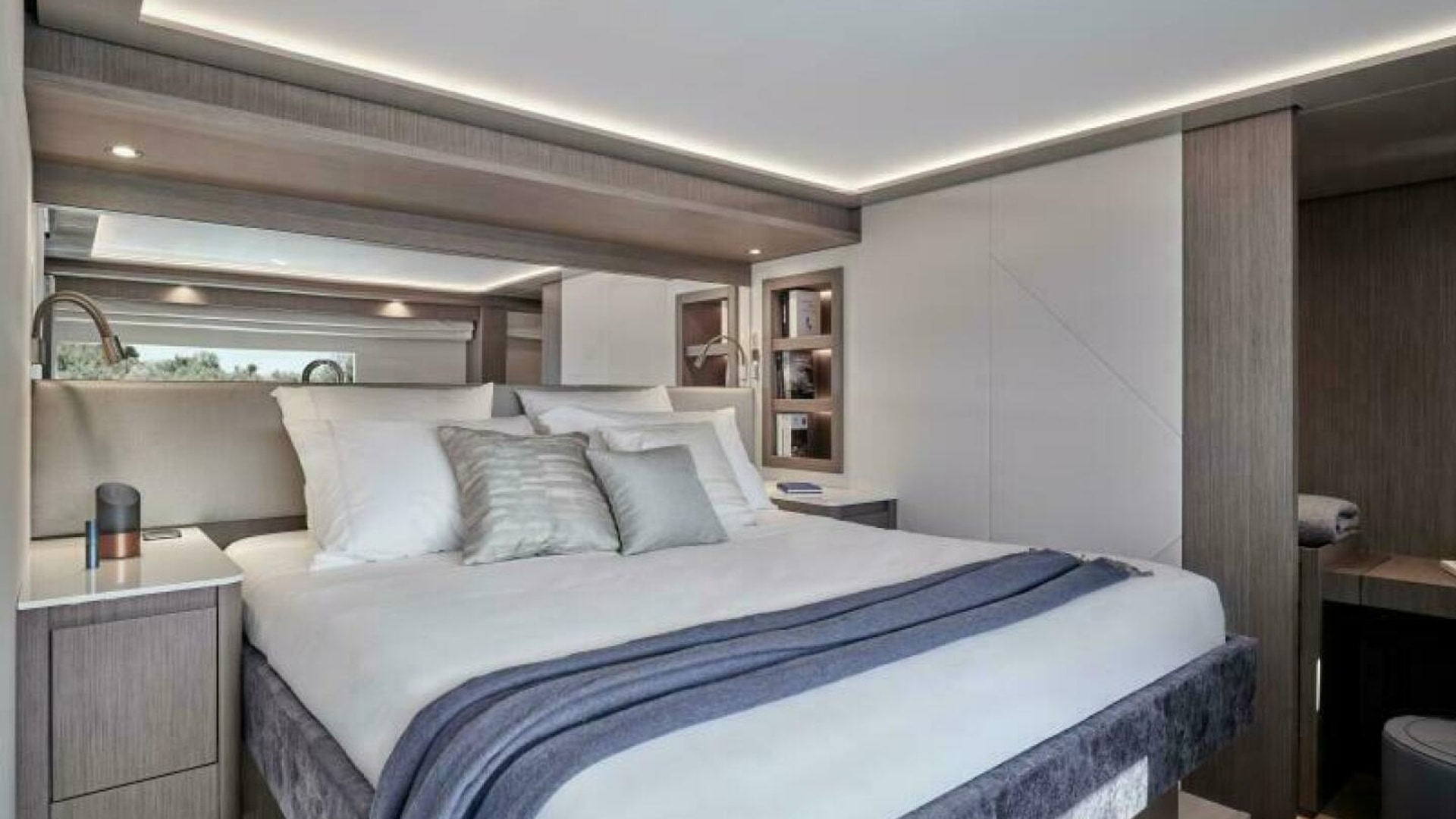 North American Package: Maindeck protective covers: Cockpit sofa and forward lounge cushions, Flybridge protective covers: sofa, helm console and seats, table, fly searchlight and rear docking lights, Ice maker in cockpit, Kenyon grill XXL at the flybridge galley, Dual fuel/water separators with alarm.