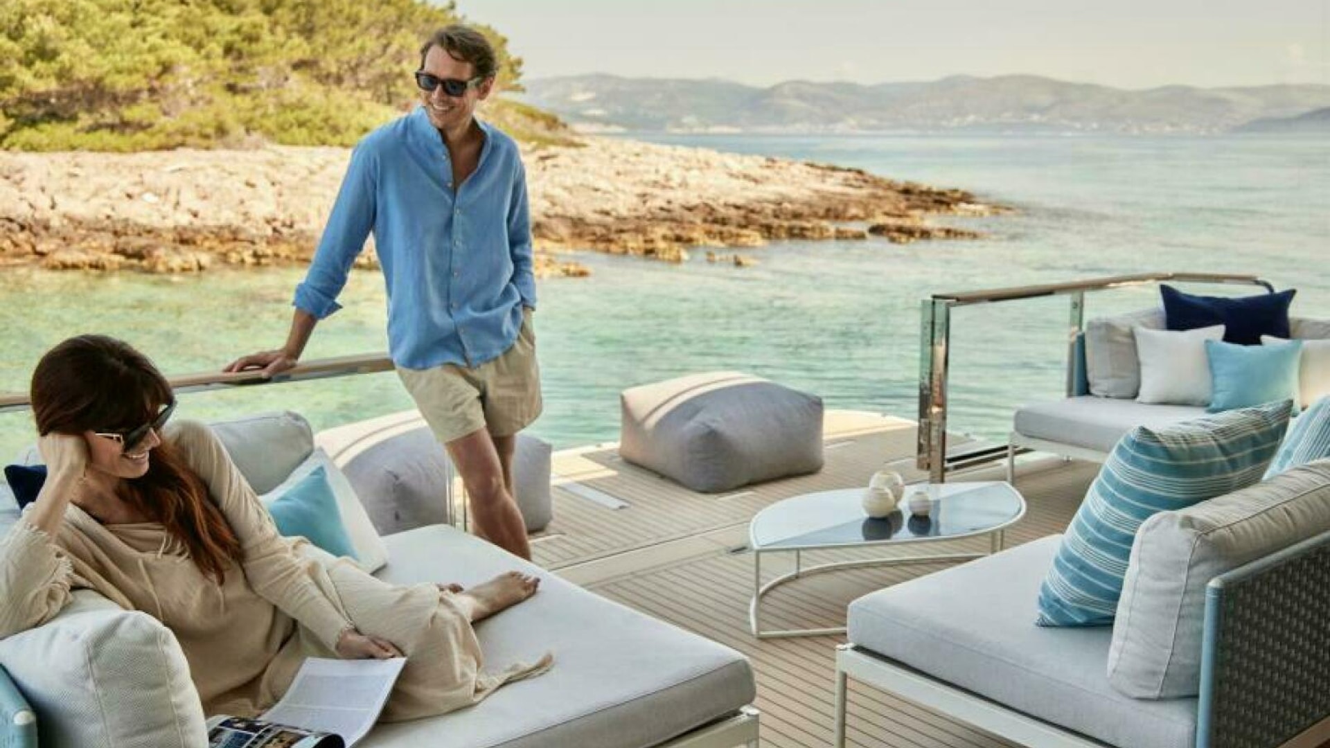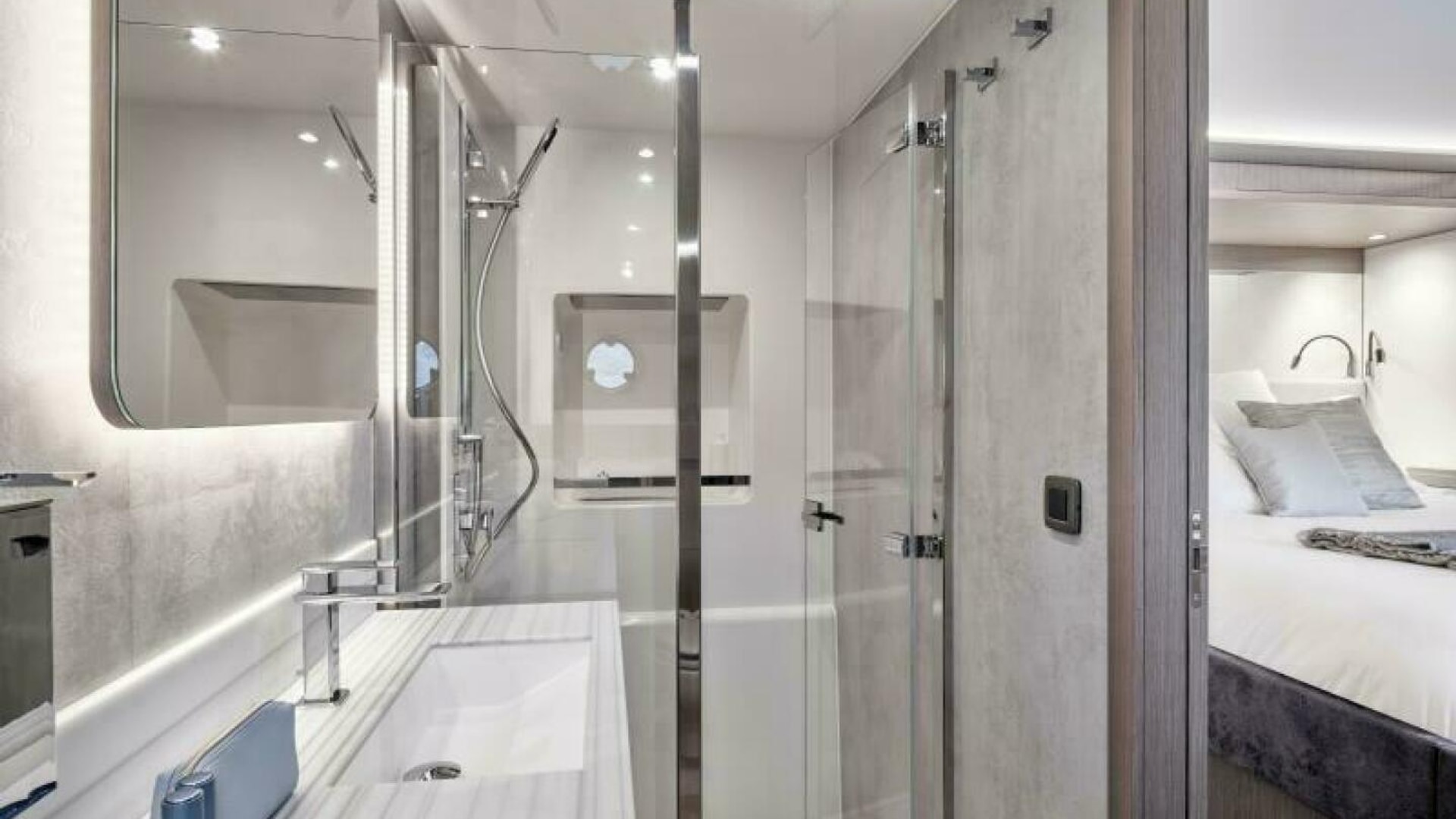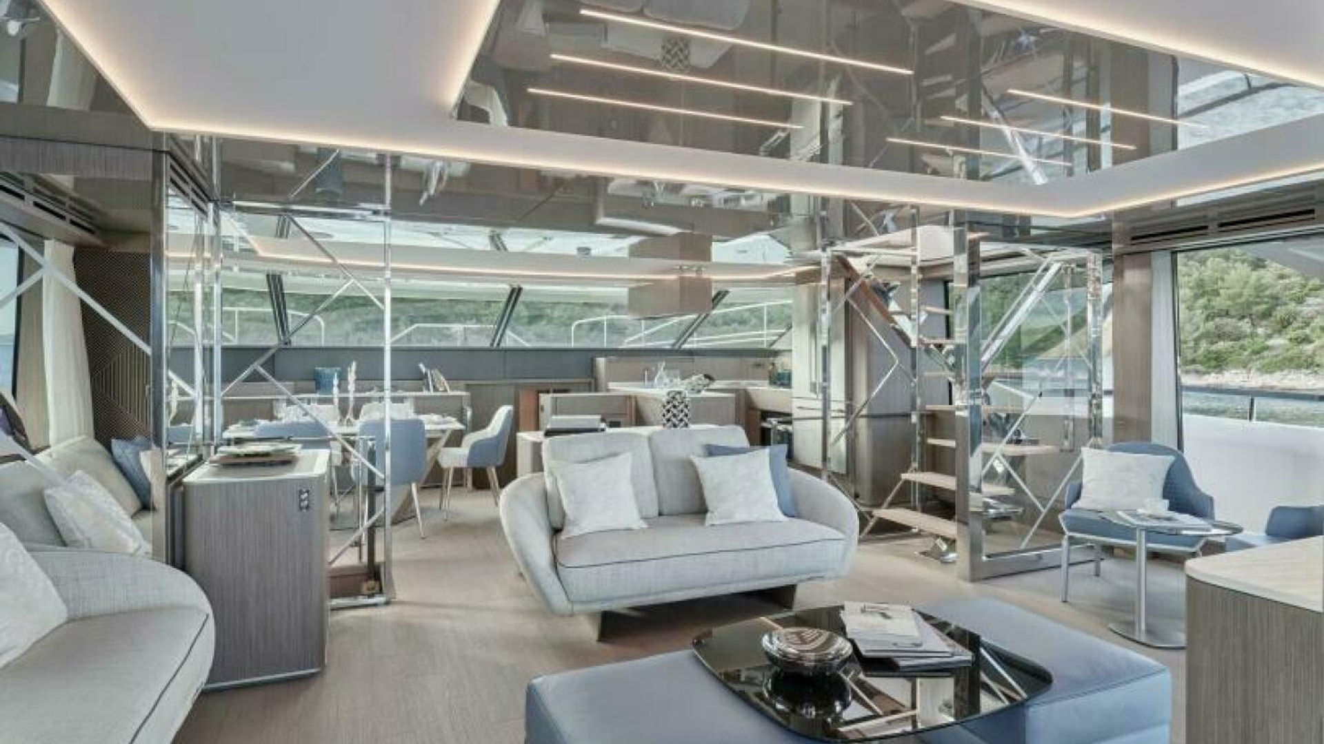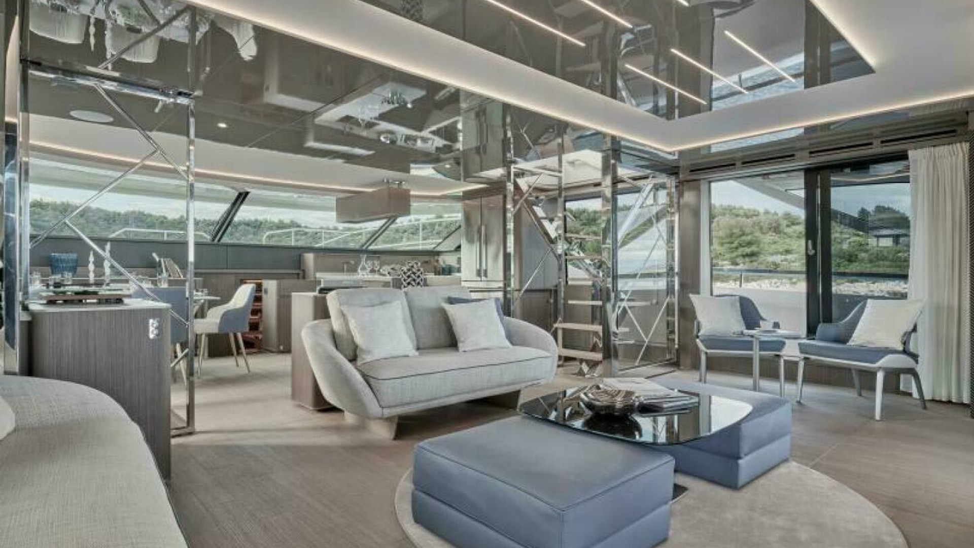 North American Package: Maindeck protective covers: Cockpit sofa and forward lounge cushions, Flybridge protective covers: sofa, helm console and seats, table, fly searchlight and rear docking lights, Ice maker in cockpit, Kenyon grill XXL at the flybridge galley, Dual fuel/water separators with alarm.