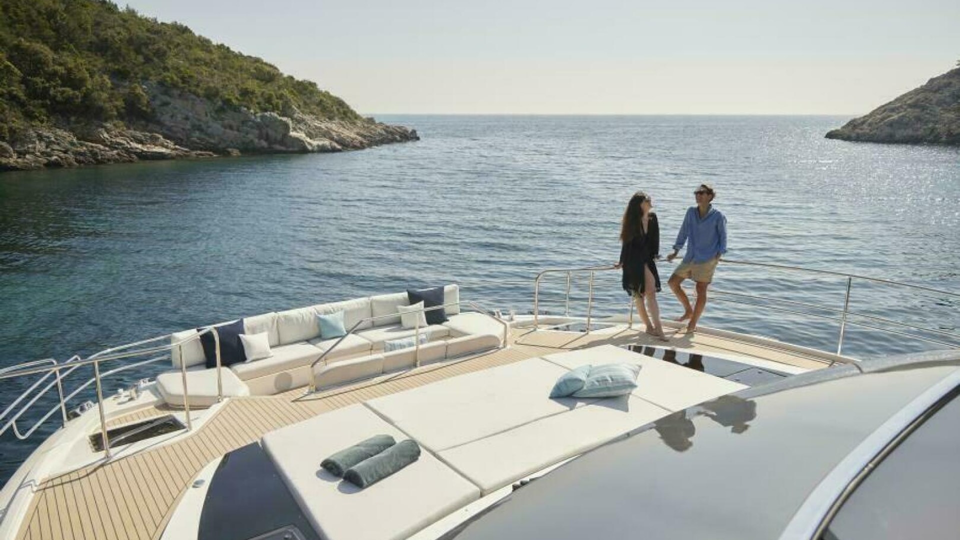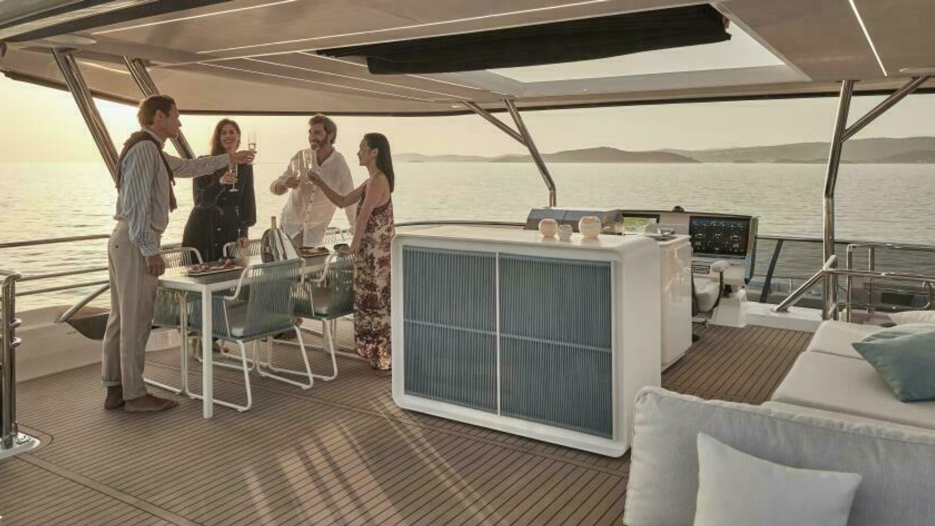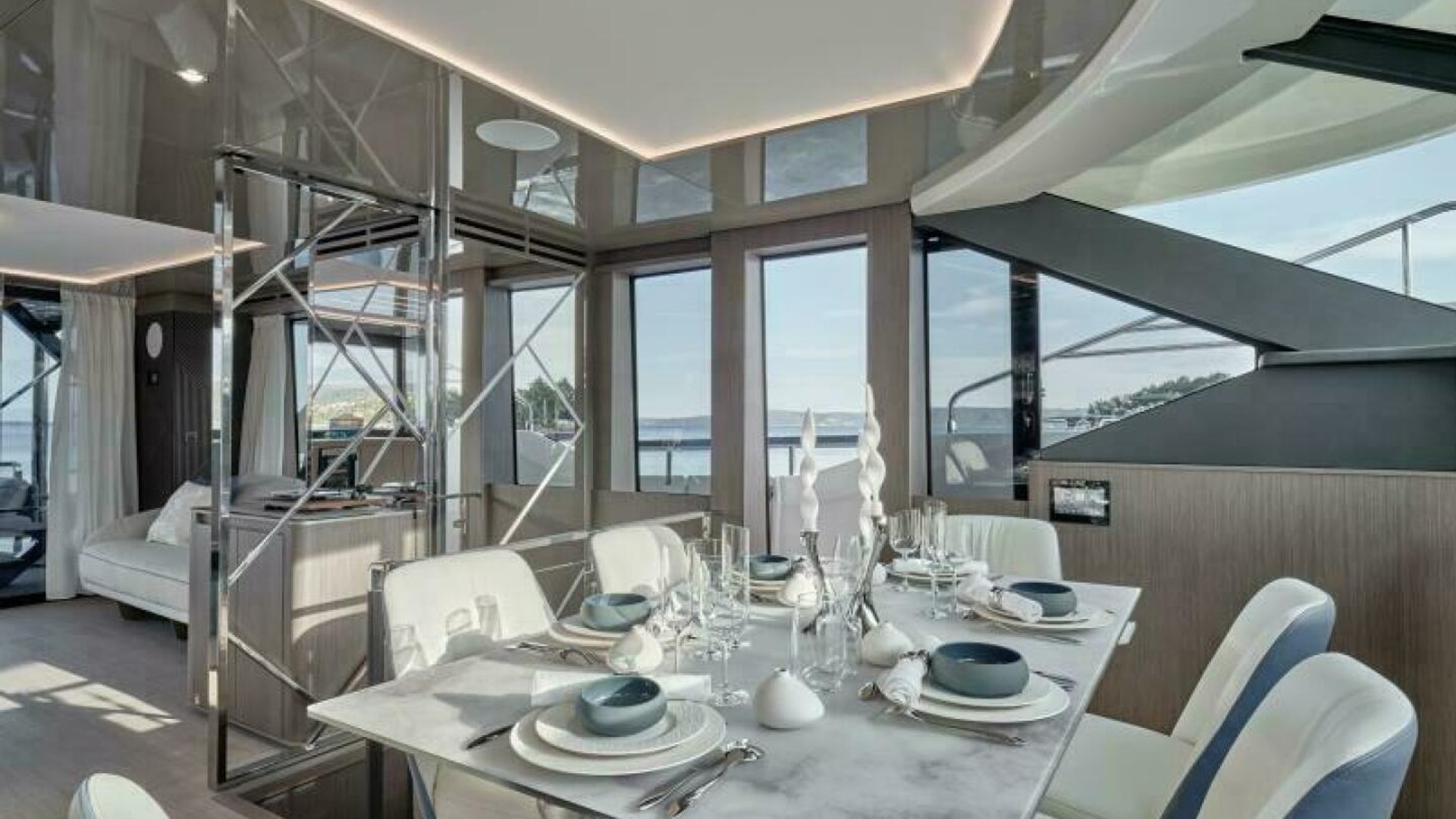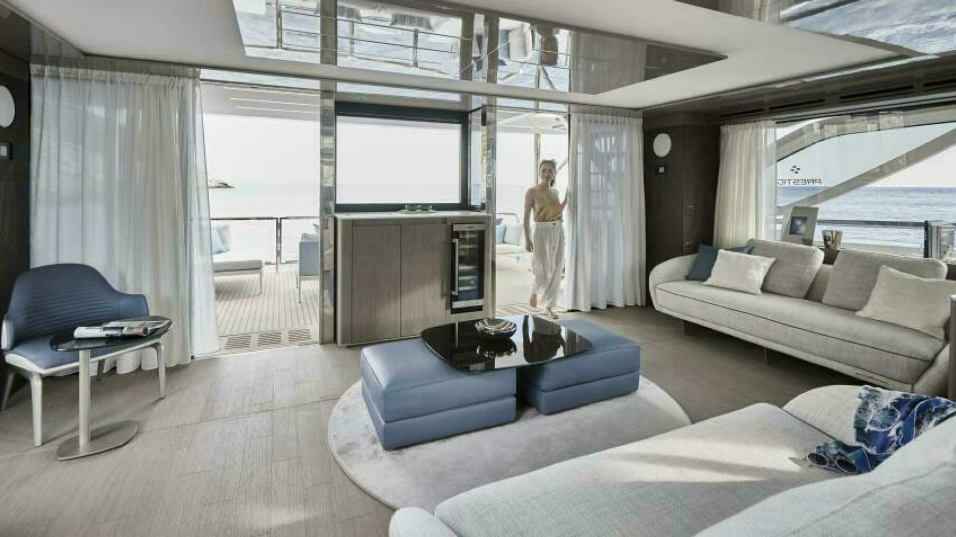 2025 65 Prestige M8 Multi-Hull yacht for sale (C/PR25WN-005). The M8 promises an unprecedented experience and precious moments on the water to be savored with those you love while being respectful of the environment, with reduced energy consumption. You'll be able to reconnect with nature while enjoying your friends and family on this spacious Prestige M8 Multi-Hull that offers 1561 sq ft of exterior space and 1399 sq ft of interior for total relaxation and entertainment while onboard.