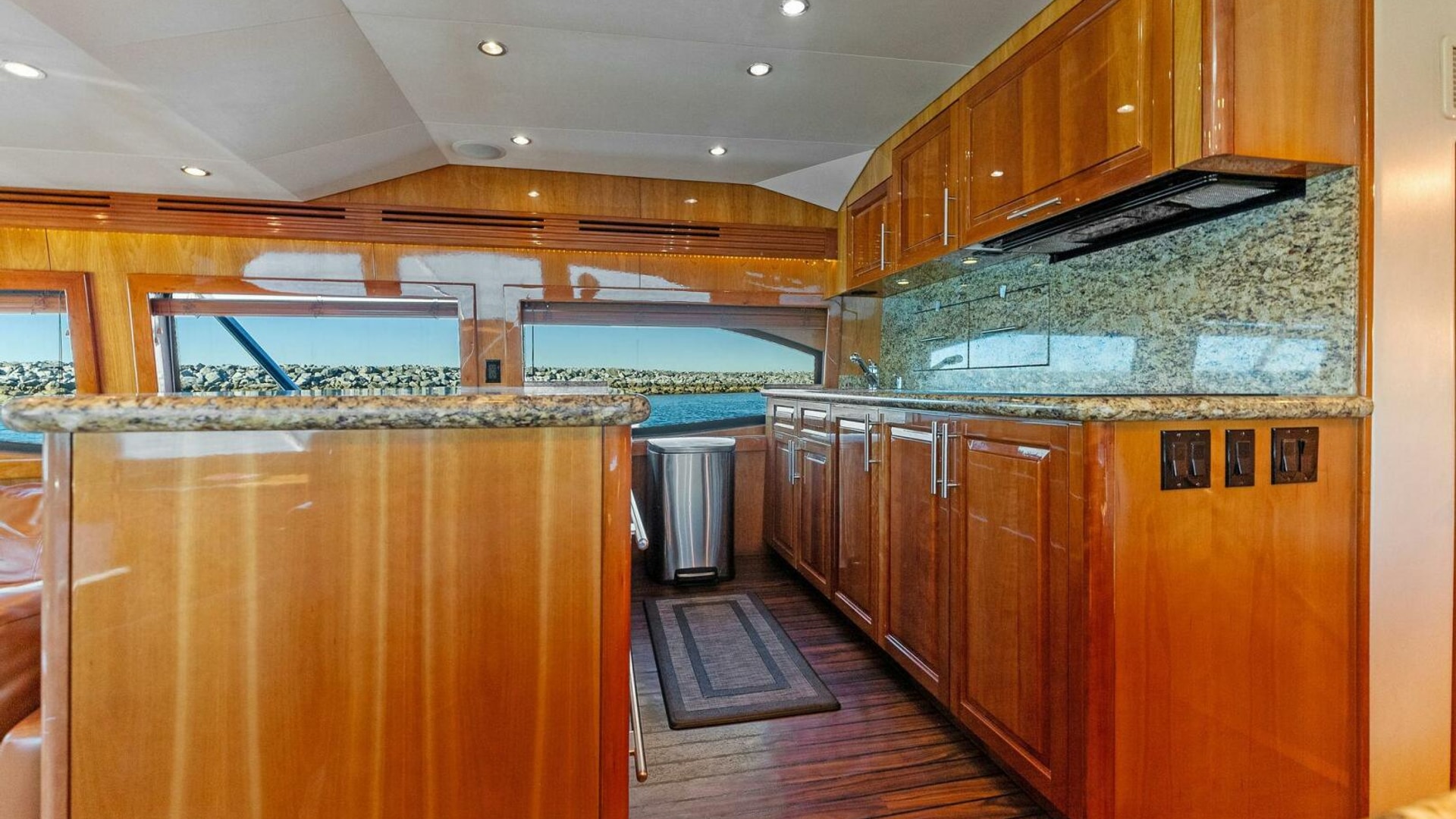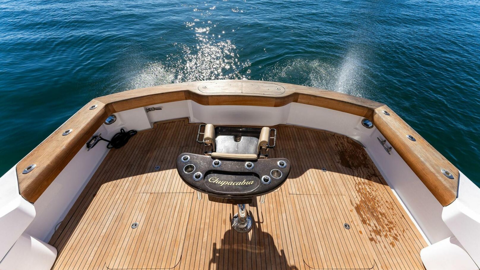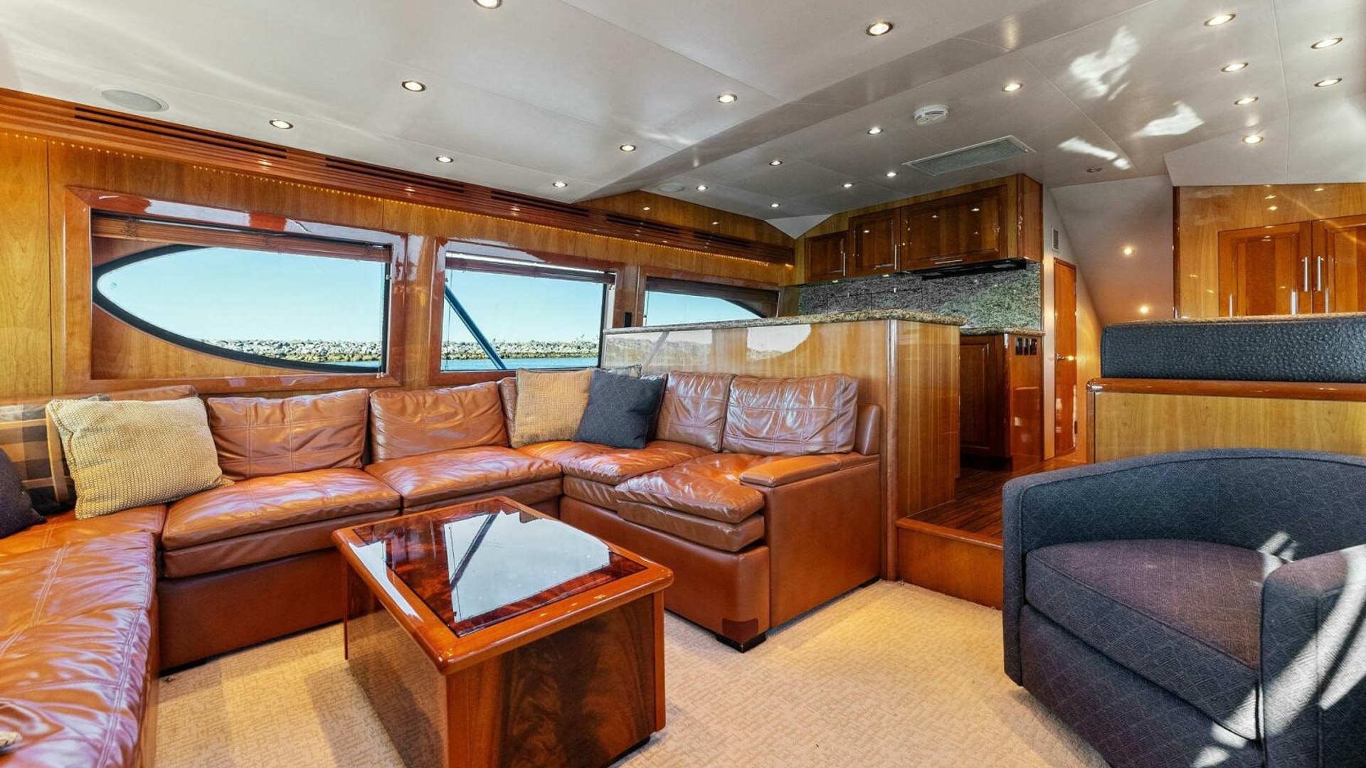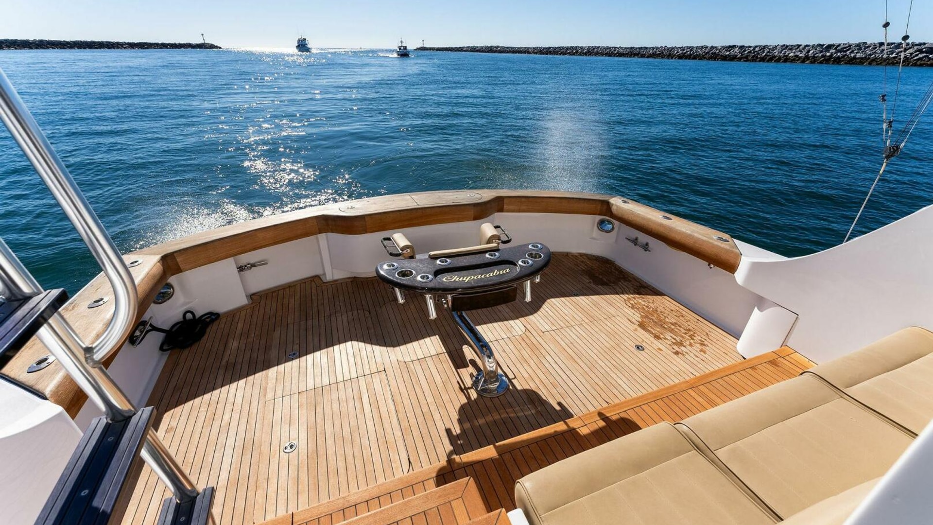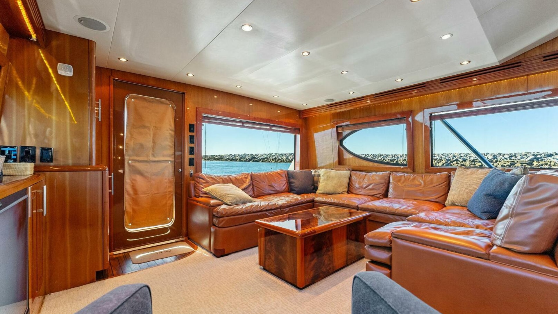 The "CHUPACABRA" has a very comfortable layout and features a 19' 6" beam and provides generous accommodations and unsurpassed for luxurious comfort. This 64’s 3/3 arrangement consists of three staterooms and three heads, with the only full beam master stateroom in its size range. Throughout, the emphasis is on spacious and luxurious accommodations ideal for relaxation or entertaining. With more than 150 square feet of area the salon exudes the warmth of genuine American black cherry paneling, pre-filled and finished in high gloss. To port, a custom U shaped sofa provides ample storage underneath. To starboard, a 42 inch plasma TV with surround sound can fill the salon with entertainment. Linear valences distribute cooled air evenly throughout salon and galley, without the hot and cold spots associated with overhead vents. One step up from the salon, the 64's galley features solid surface granite countertops, under counter refrigeration including freezer, a four burner ceramic cook top, and garbage disposal and microwave convection oven. Opposite is a large dinette with granite tabletop. Down below, the full beam configuration of the master suite is more than just best in class. It offers an unparalleled 166 square feet of floor space virtually identical to that of the 68 Convertible! Accessed through a private foyer flanked by a full 92 inch hanging locker, the master suite has more than enough room for a king sized berth, twin nightstands, and dressers port and starboard plus a 20 inch LCD TV. Two oversized port lights admit light and provide a water level view to either side. At 74 square feet, the bow stateroom on the 64 Convertible is virtually identical to its counterpart on the 68. It has a queen sized berth with storage underneath. Two cedar lined hanging lockers are included along with ample drawer and cabinet space along the hull sides. The port stateroom is fitted with twin berths, along with a hanging locker, hull side storage and nightstand. The wide beam creates a generously sized flybridge with ample space for all your guests. Equipped with electronics in a pop up console, a tuna tower, 3-sided enclosure, freezer and plenty of storage and seating, the flybridge is the place to be while running. The cockpit, spacious in its own right, is rigged for the serious angler. The mezzanine offers plenty of storage and seating, freezer, 4 drawer tackle station, modular storage and refrigeration. The cockpit has an ice chipper, fish boxes, and livewell.