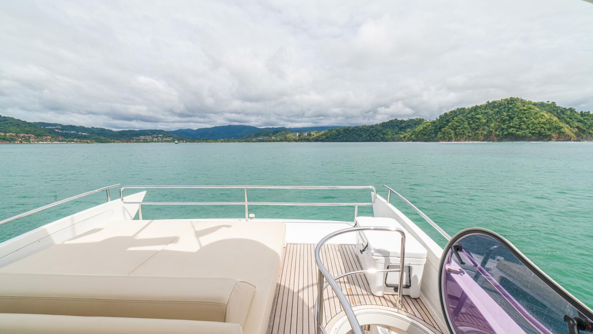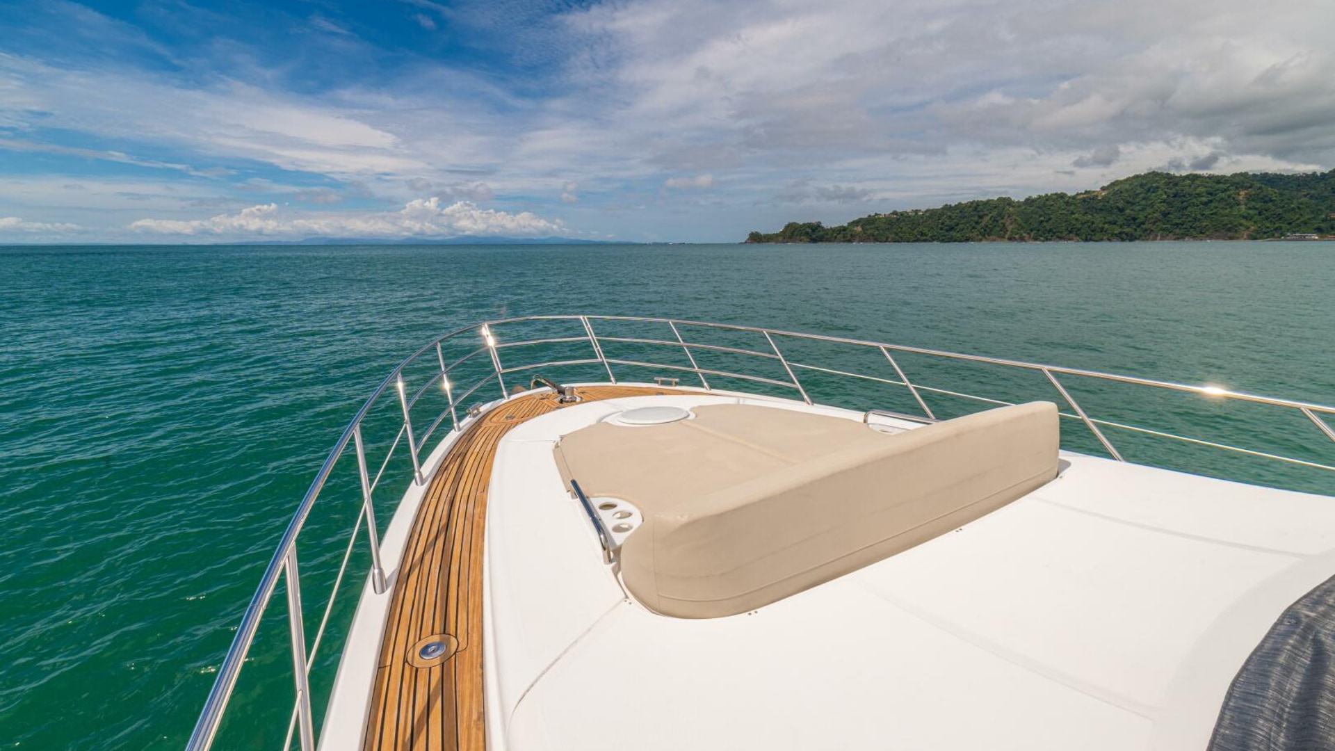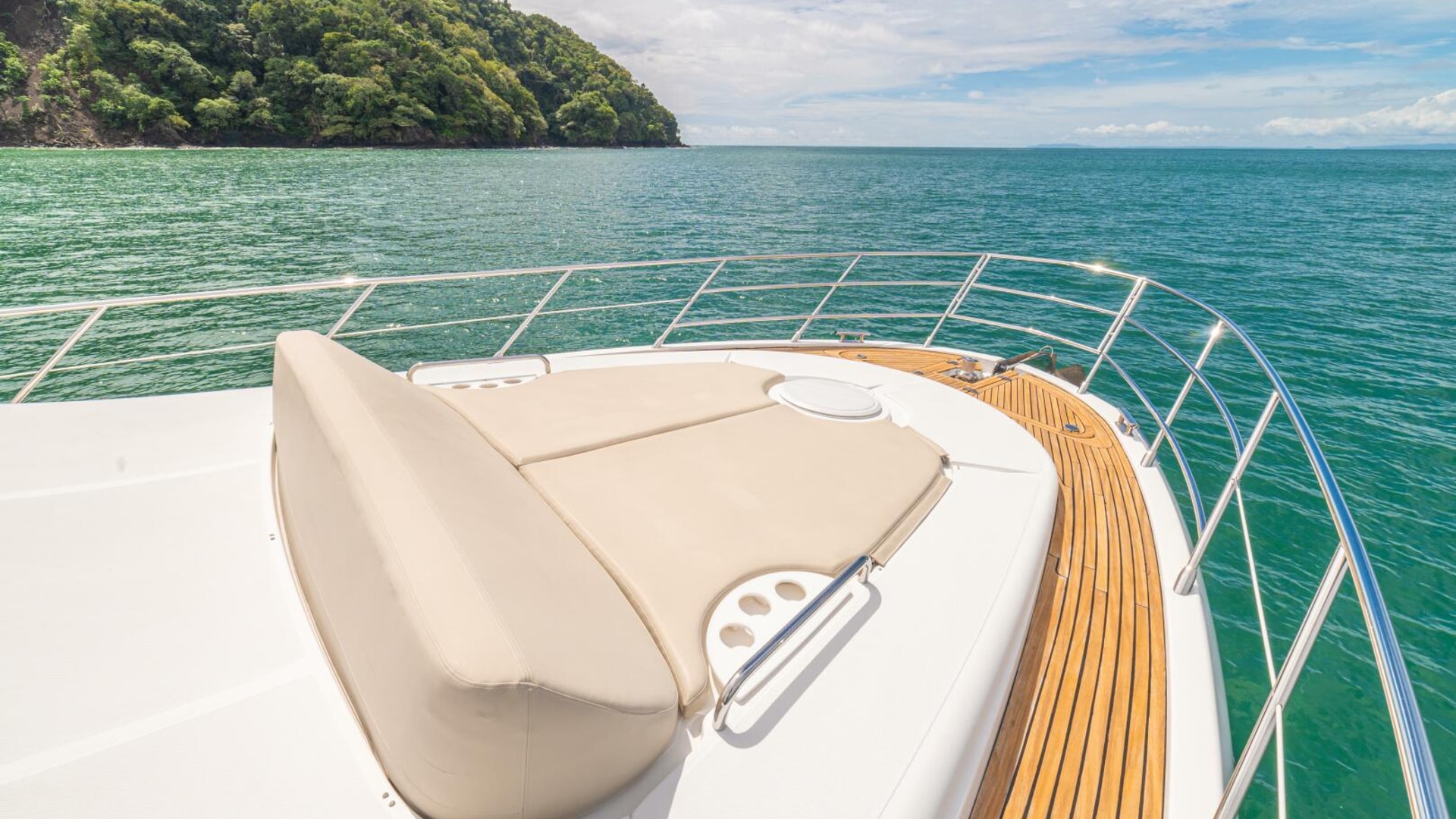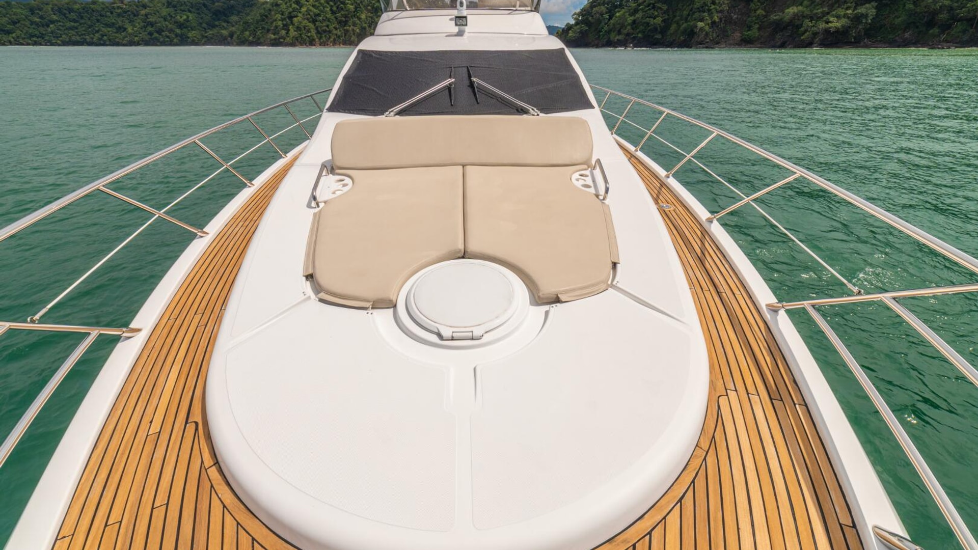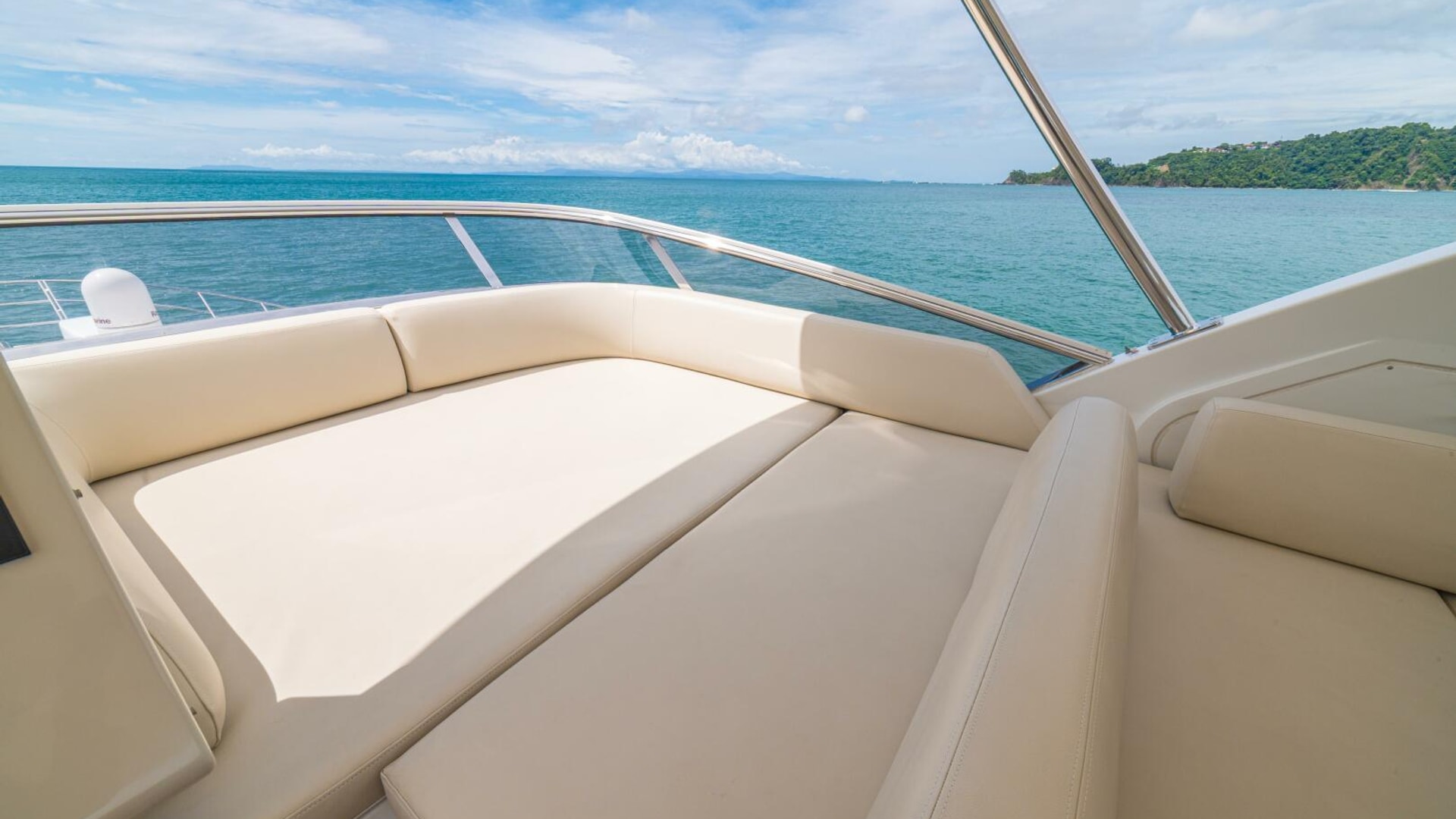 The cockpit area is spacious and well-appointed, featuring comfortable seating, quality finishes, and integrated entertainment and safety equipment. It provides ample space for relaxation, dining, and socializing, with easy access to the water and upper deck.