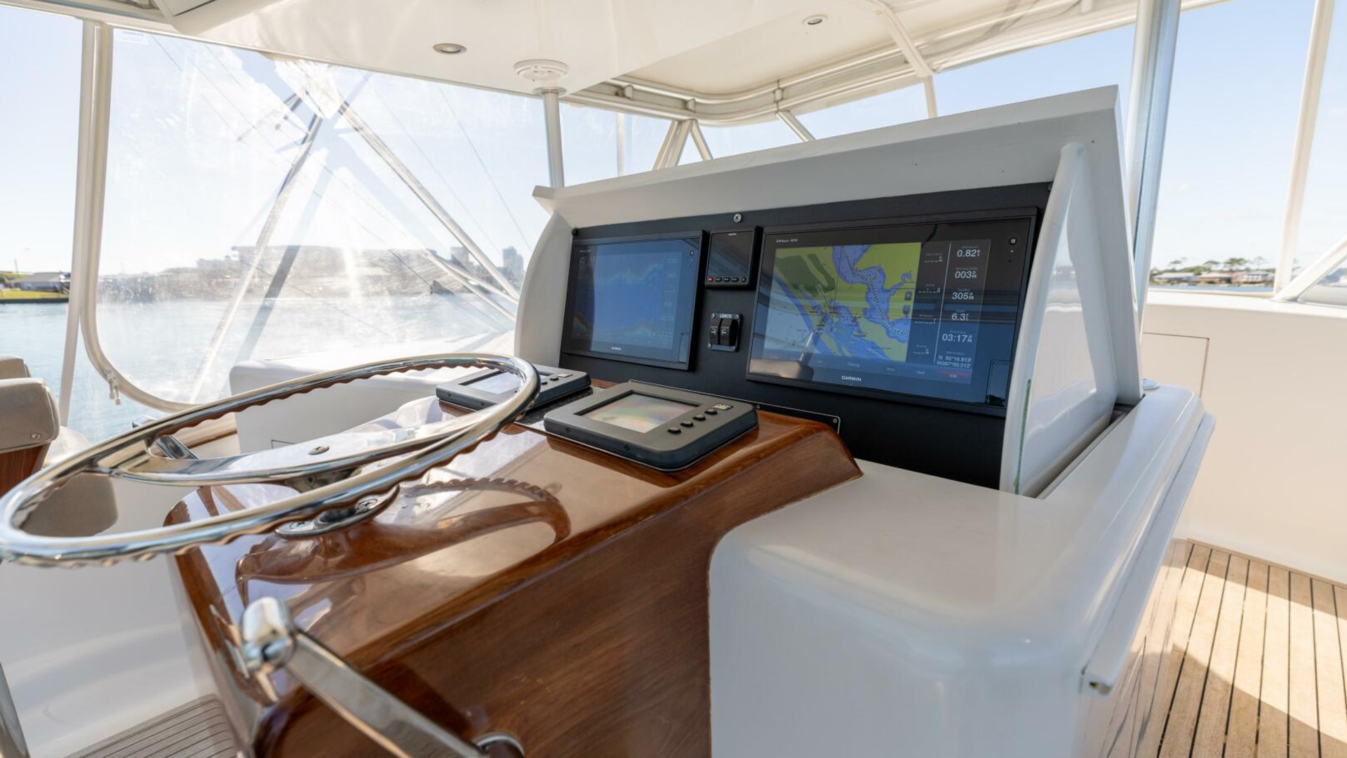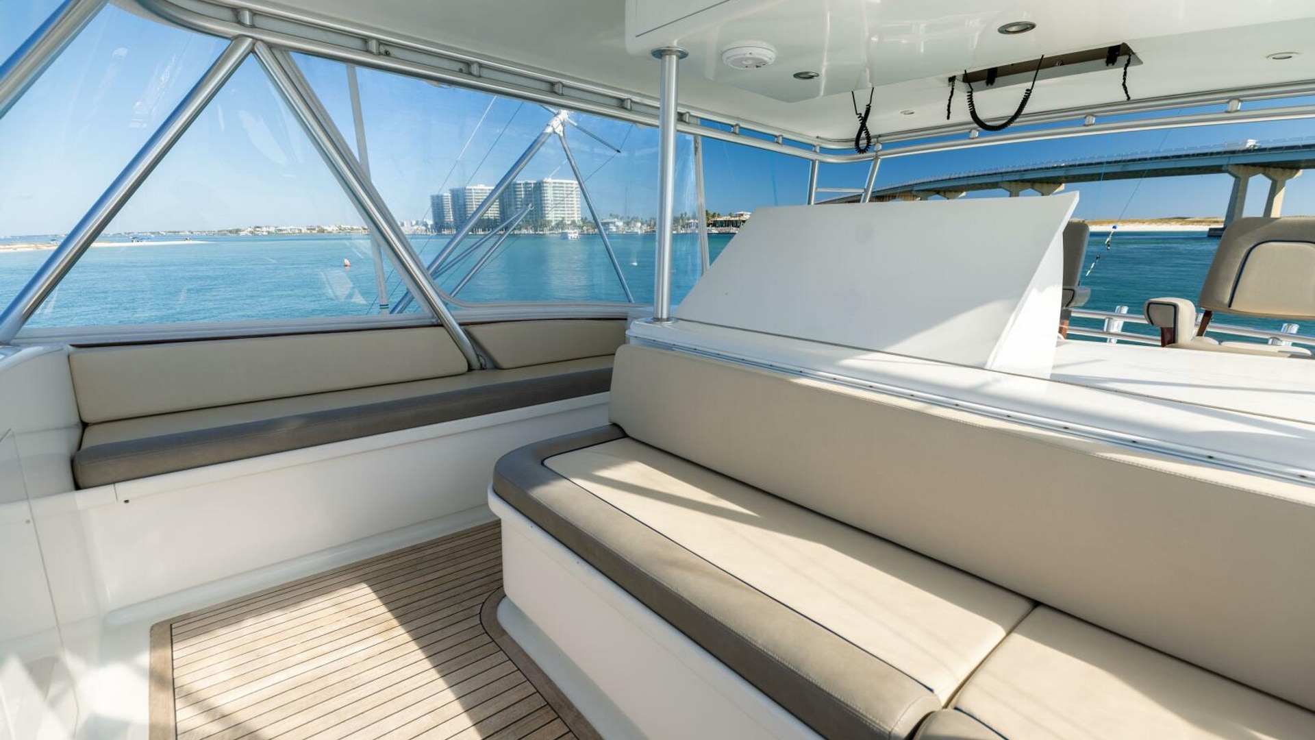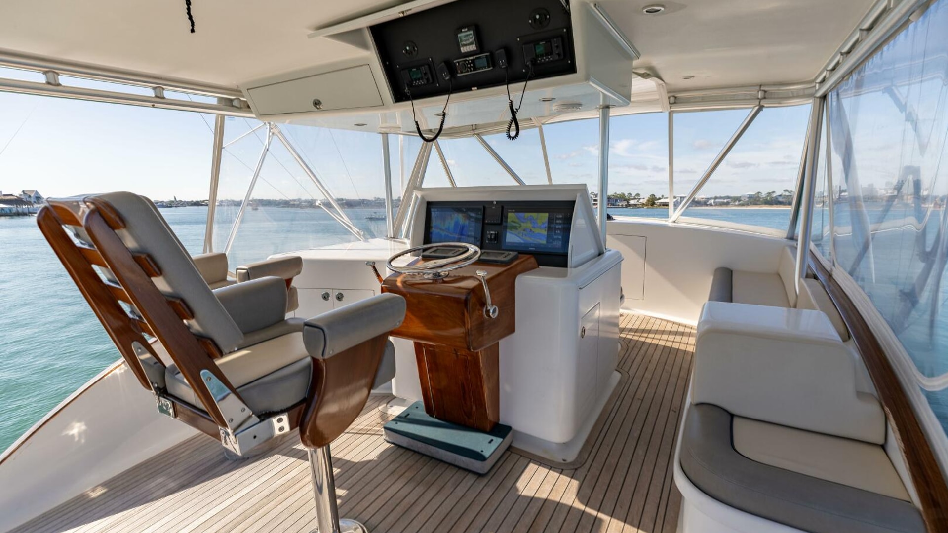 - Nicely laid out bridge deck with seating forward and to starboard Teak sole.