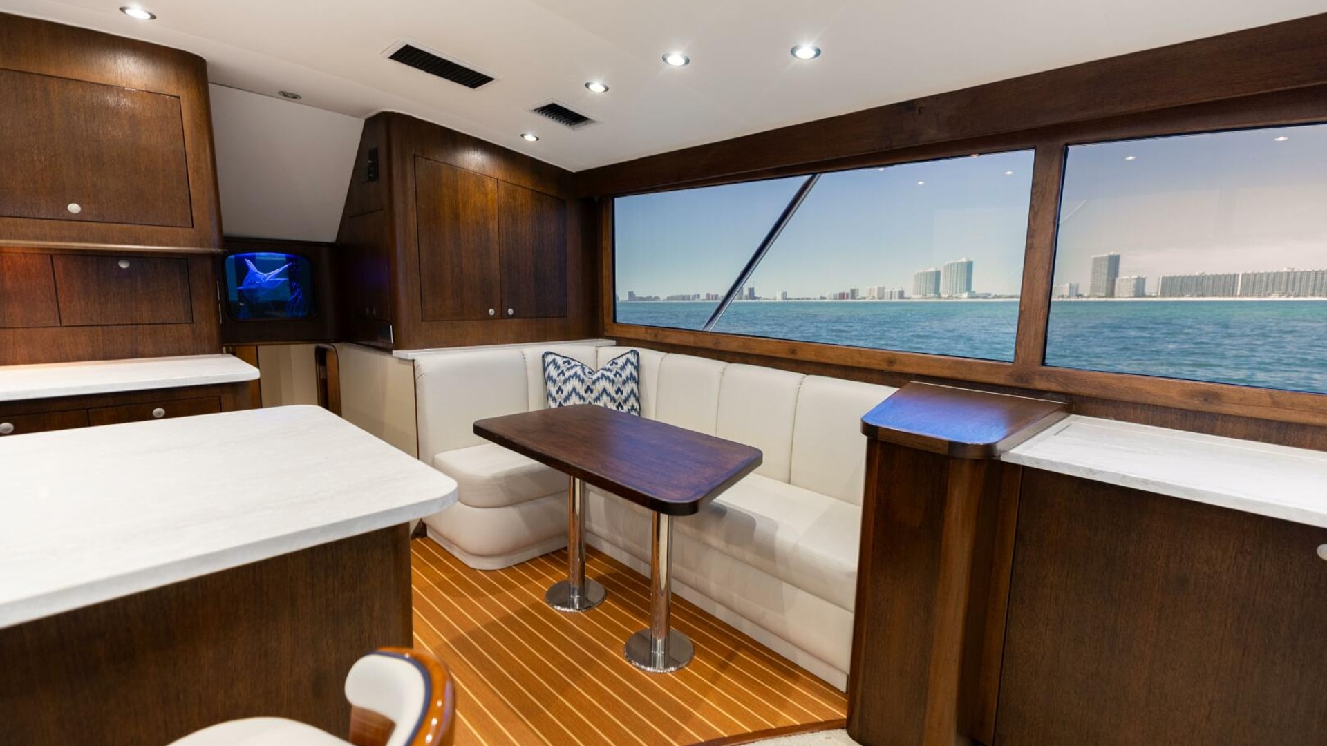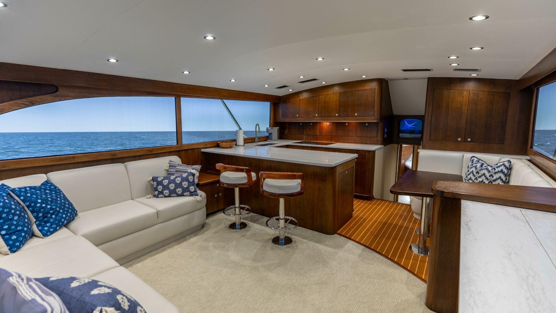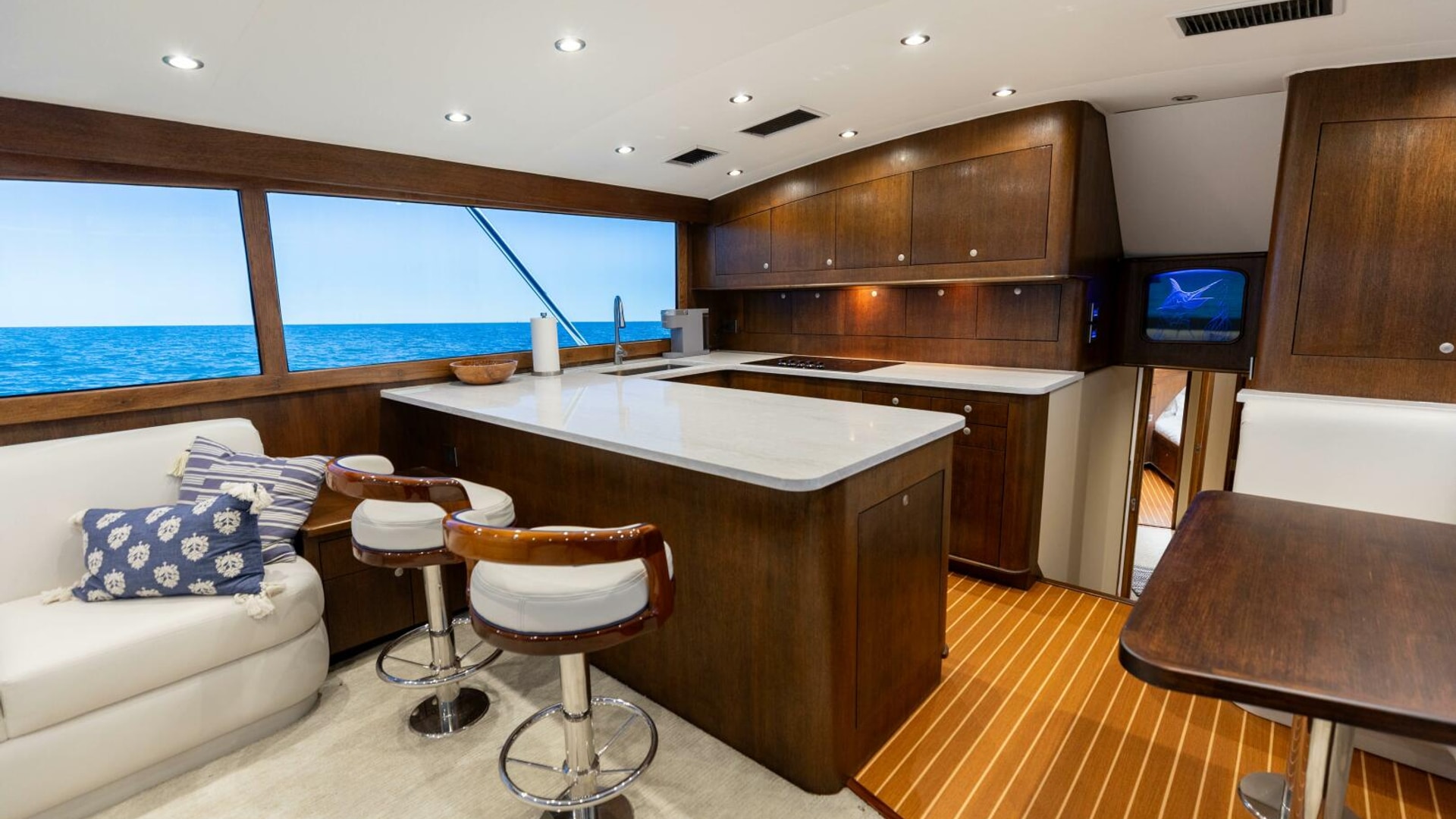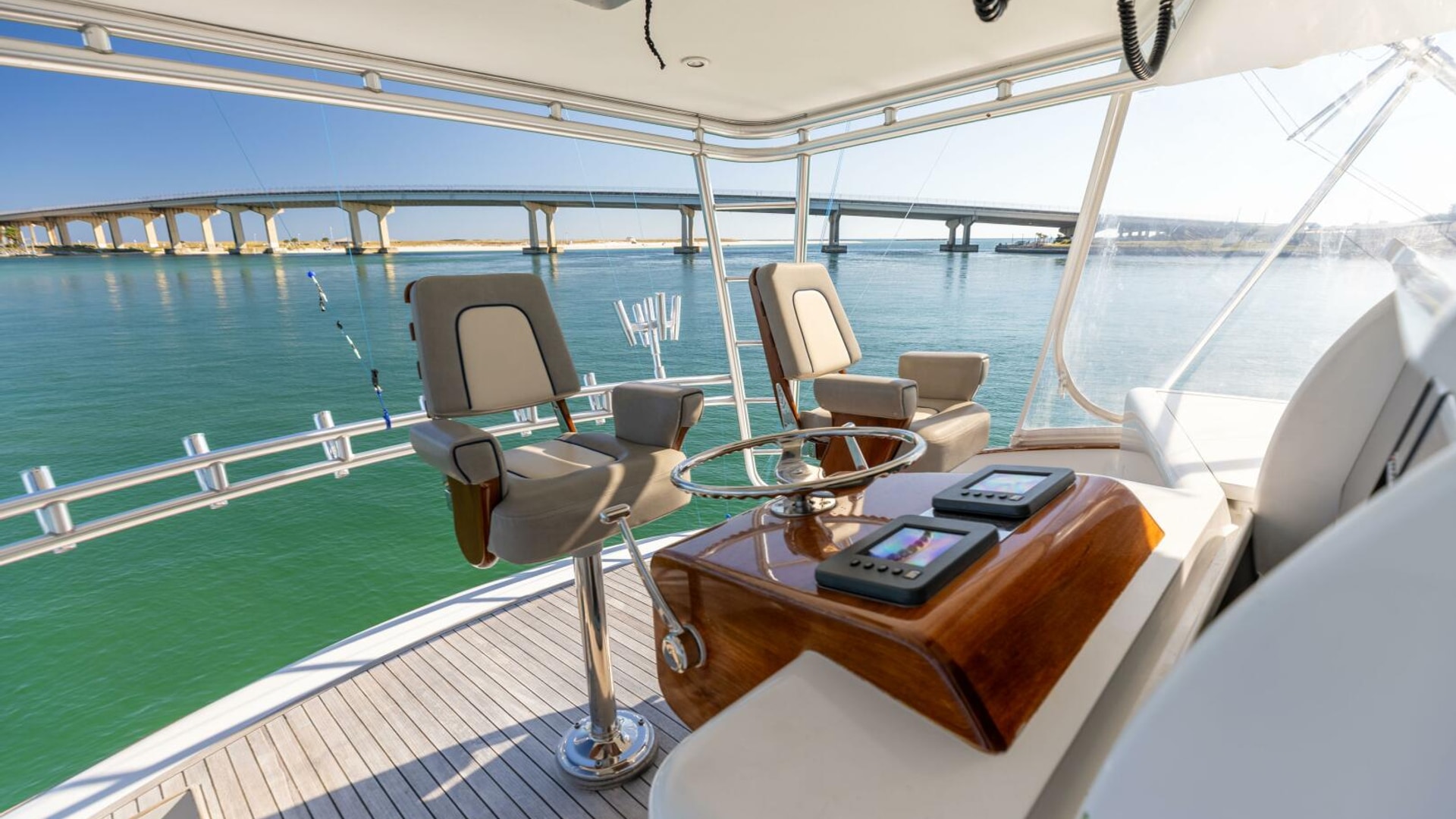 - Nicely laid out bridge deck with seating forward and to starboard Teak sole.