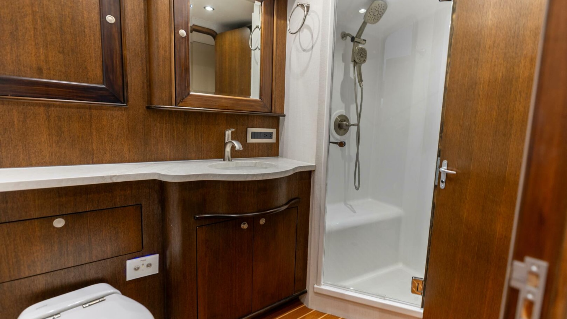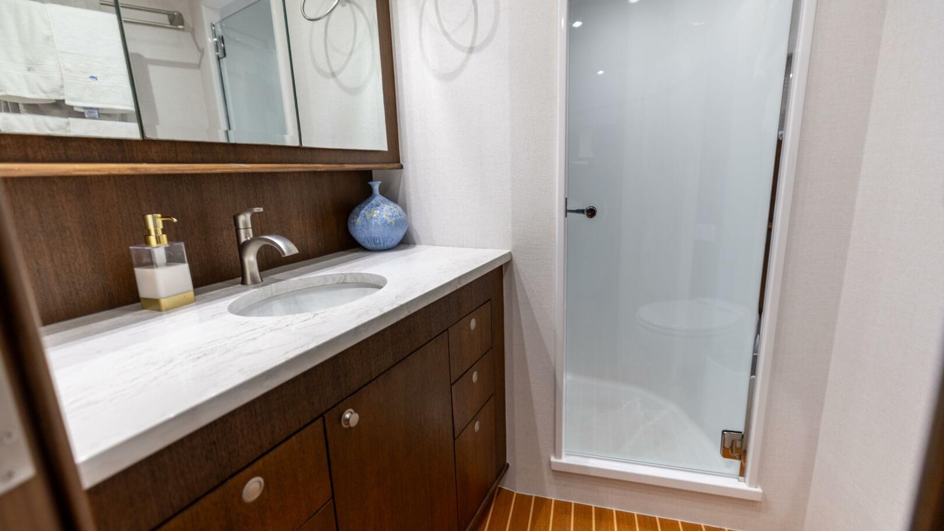 · Second Head: Accessible from both the VIP and the companionway.