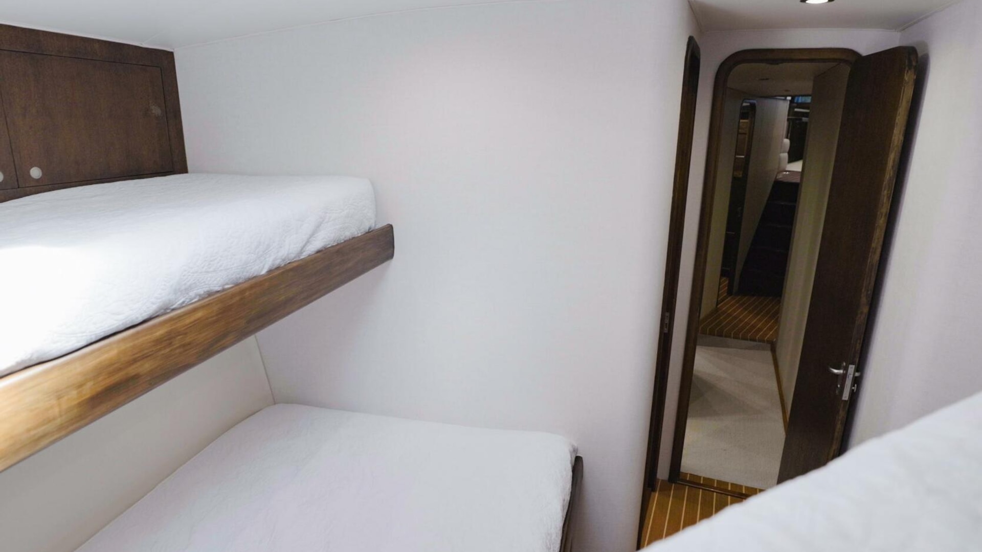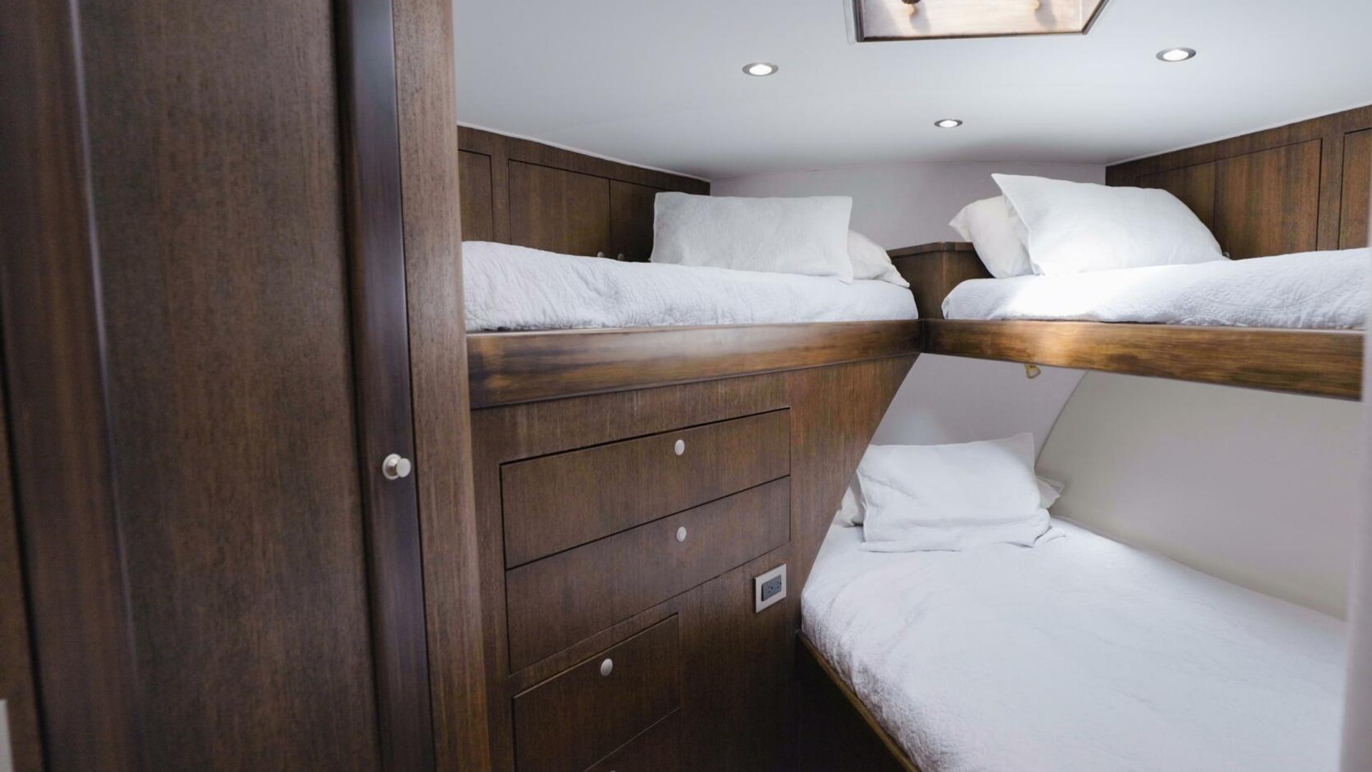 · Guest/Bunk Room: To starboard with oversized over-under bunks.