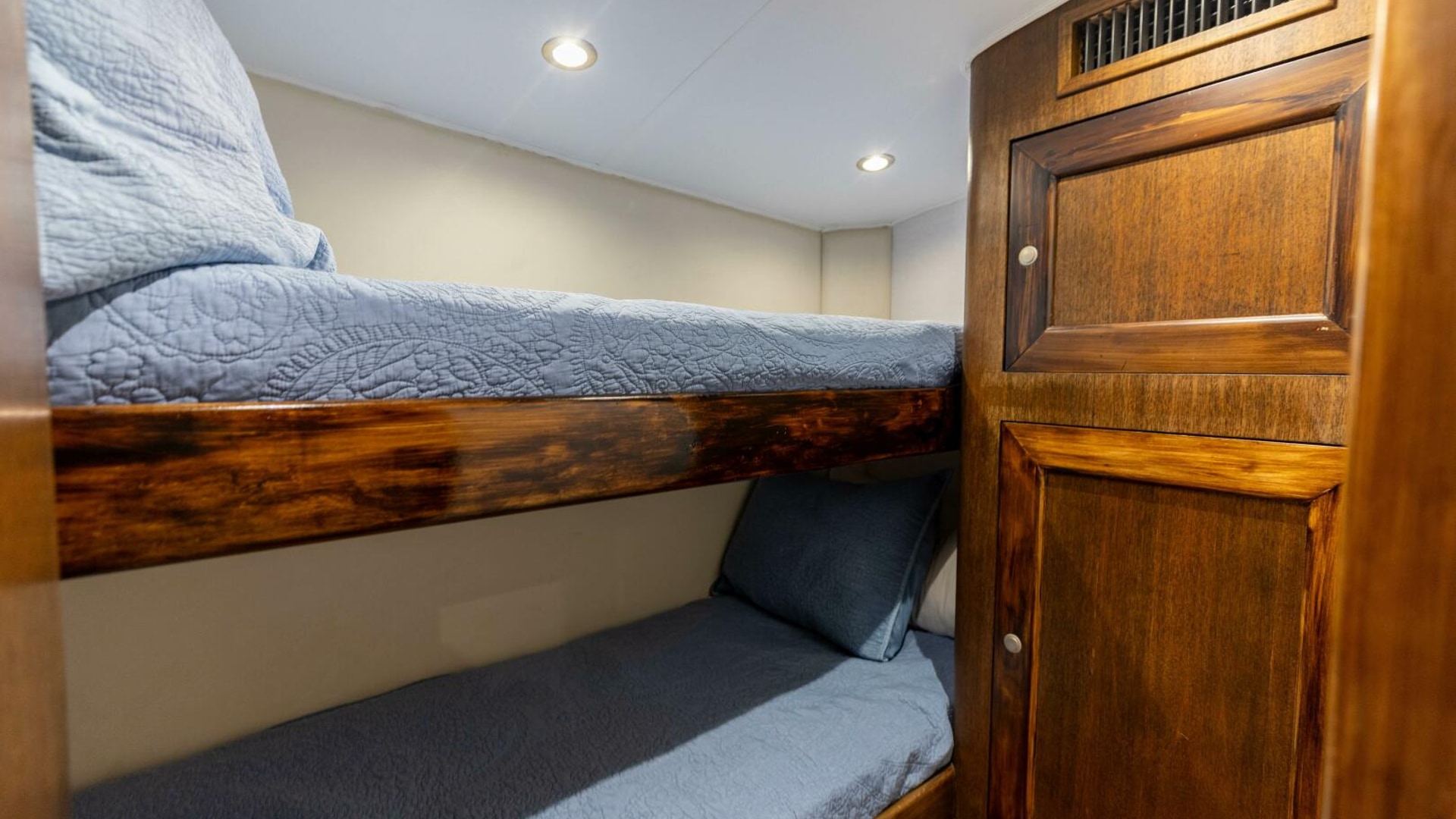 · VIP Stateroom: Forward with double side-by-side cross-over bunks and en-suite head access.