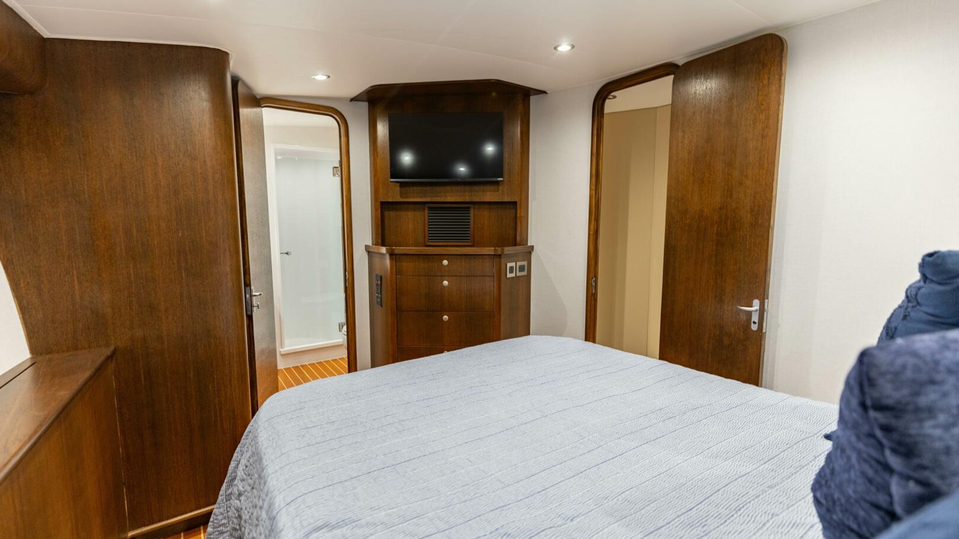 The comfortable master is located aft to port with spacious ensuite head.