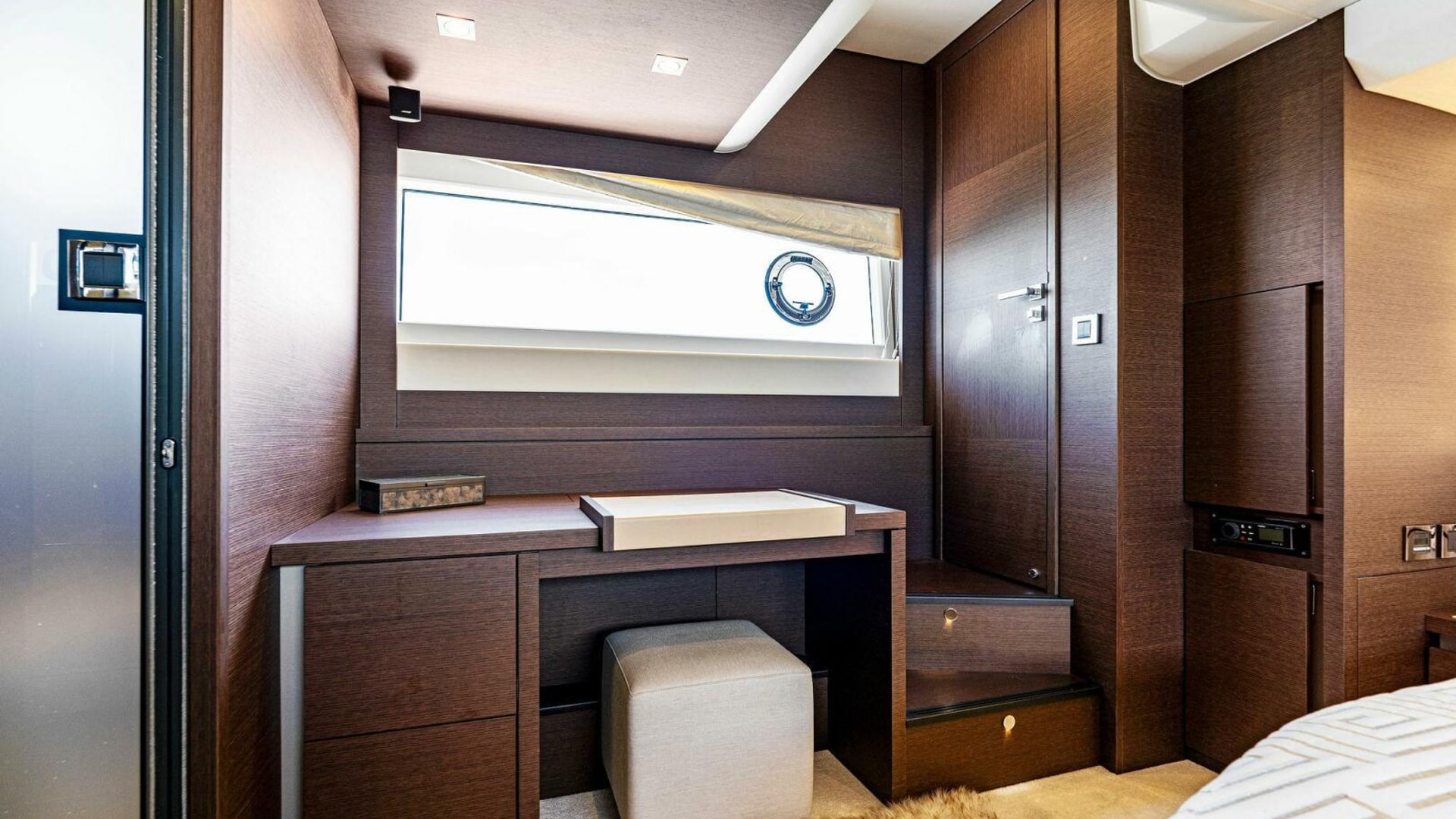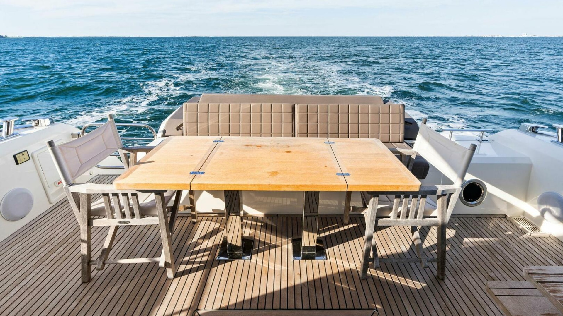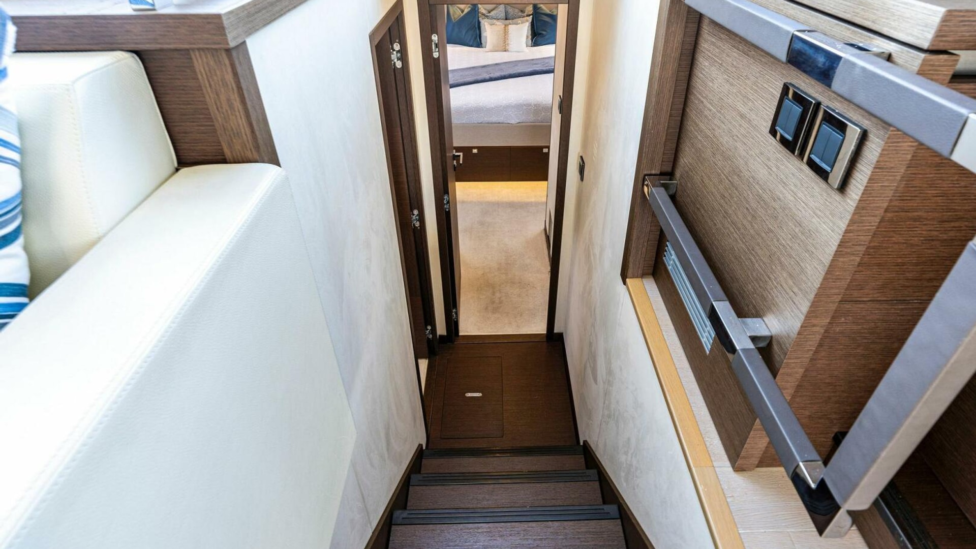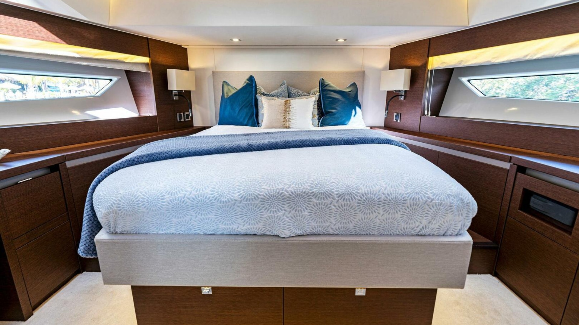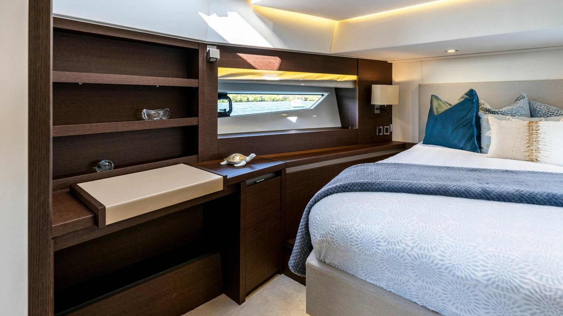 2019 63 Prestige Flybridge - "RT Time" is the only Prestige 630S currently listed for sale in the US. This model offers the best of both worlds with a spacious flybridge and a hydraulic removable bimini top and she transforms into a sleek-looking sport yacht with a large sunroof over the interior helm station.
