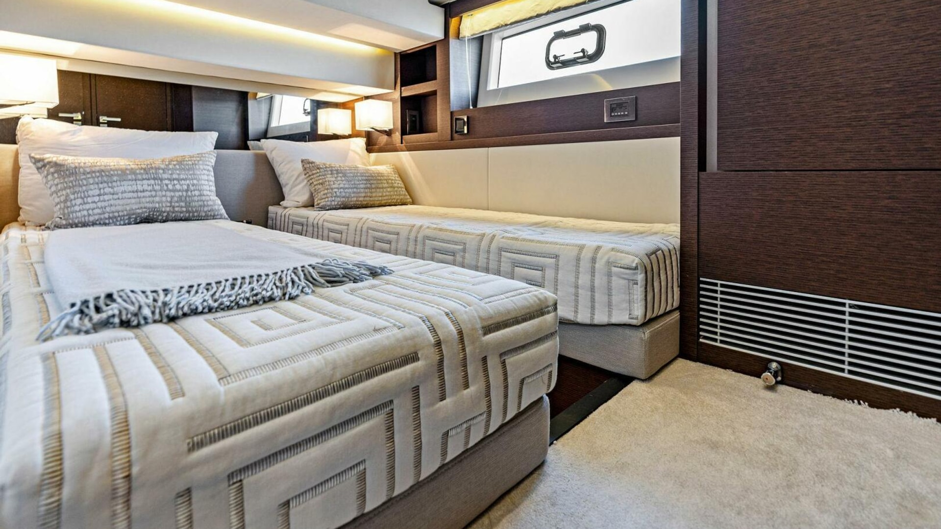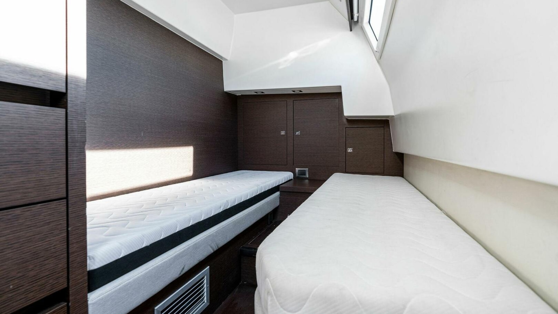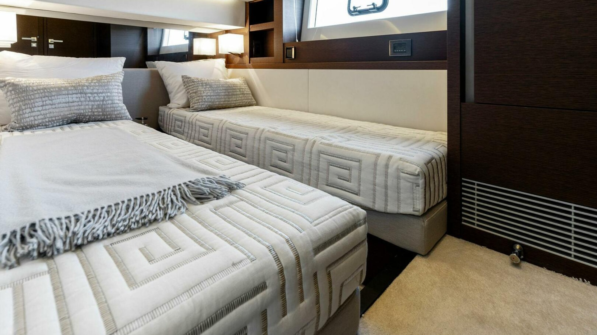 - Side-by-side twin beds on an electric slider to convert to a queen