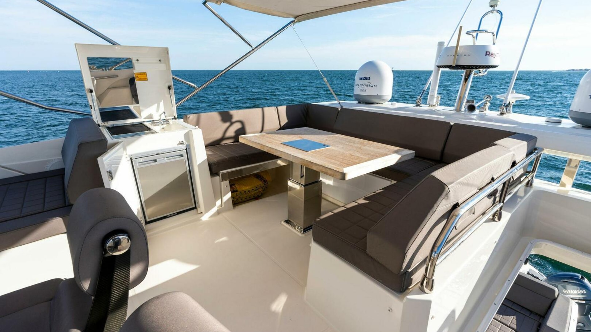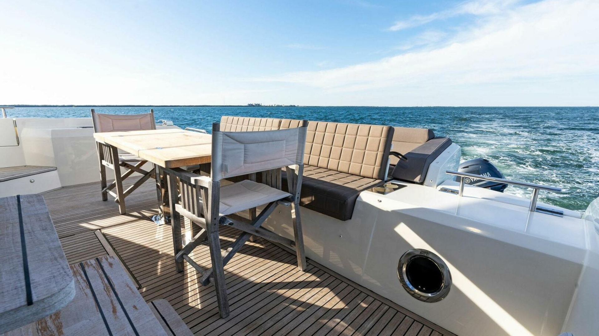 - Carbon fiber seating for helm and bench seating to starboard (seats 4 total)