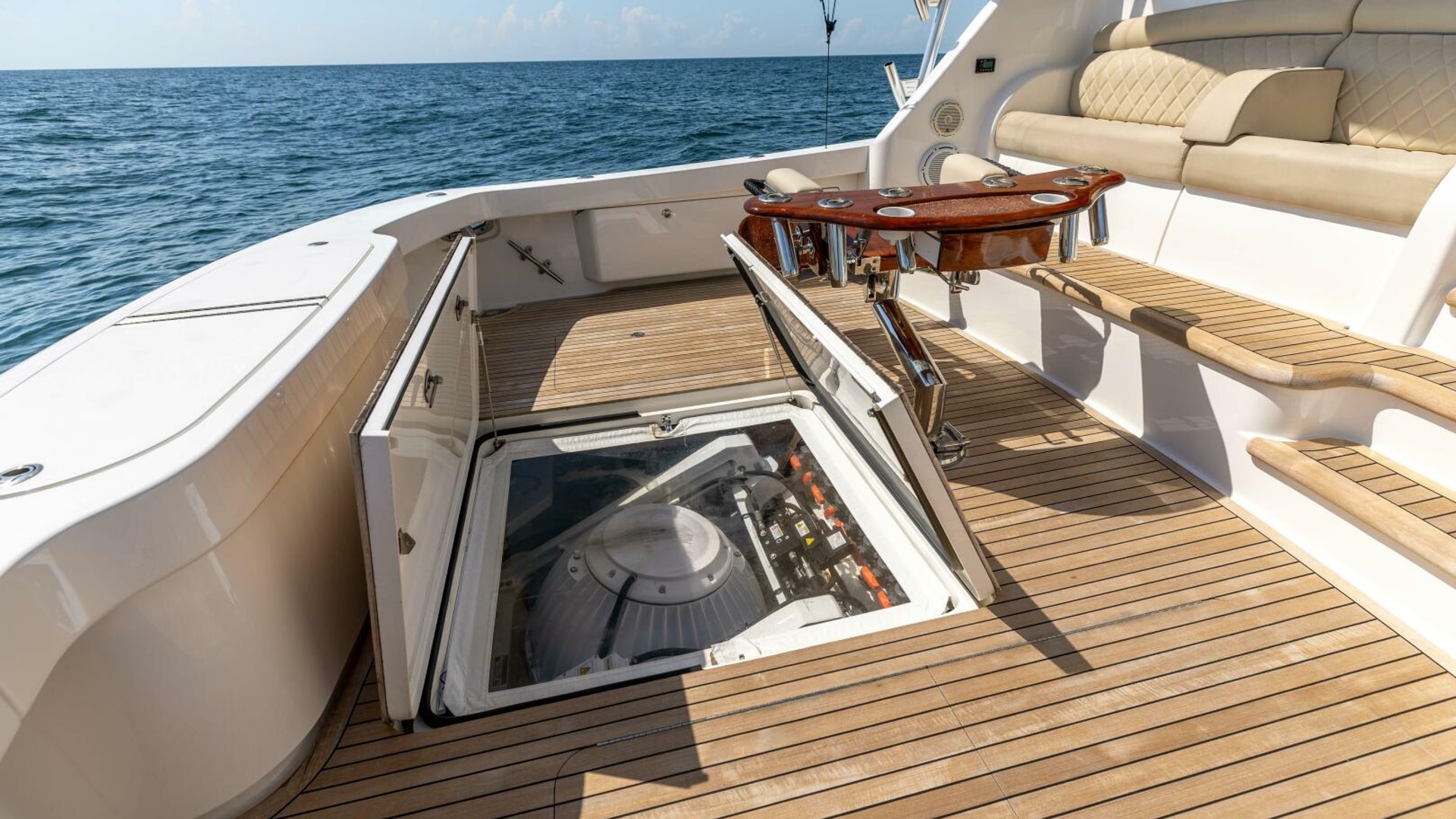 Utilizing advanced materials such as Kevlar, carbon fiber, and knitted fiberglass laminates, along with honeycomb coring in the interior stateroom hanging locker doors and cabinet fronts, “Da'Grits” is engineered for peak performance. As a one-owner yacht meticulously maintained by its captain, “Da'Grits” showcases an impressive commitment to quality in every detail, from the immaculate engine room to the carefully designed interior and exterior.