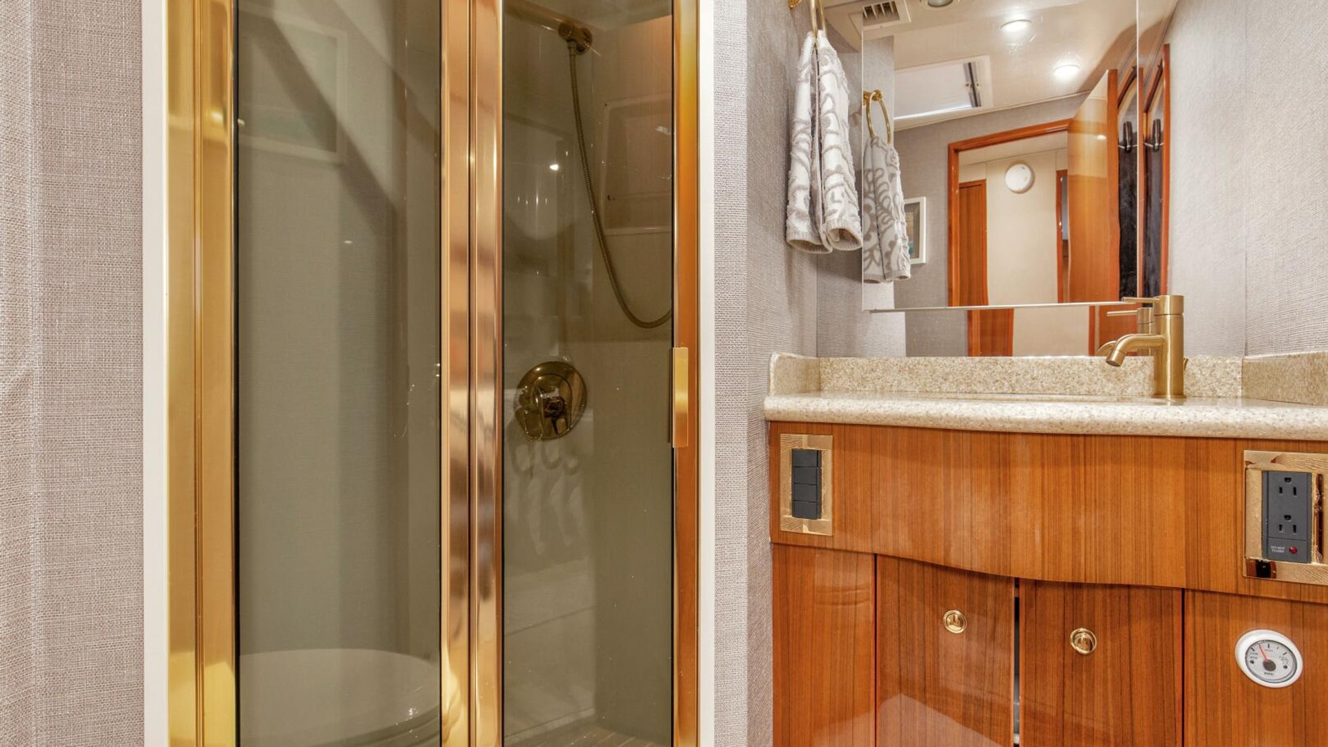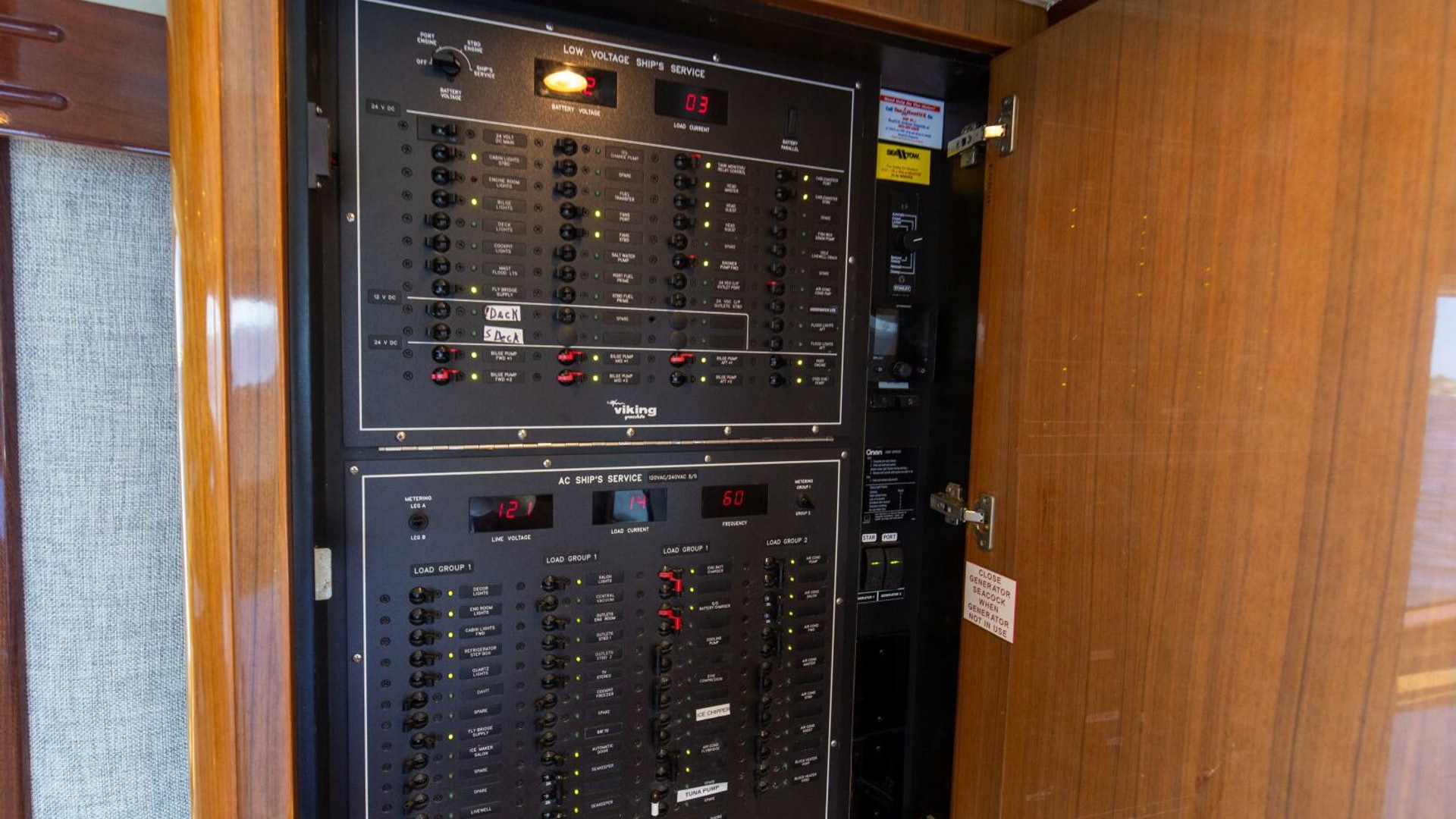 - Engine gauges and light/fan/raw water pump switches at entry