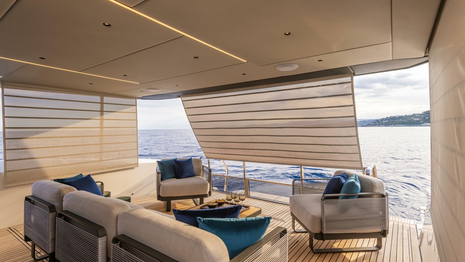 - Privacy electrical sunshade in the cockpit towards the aft