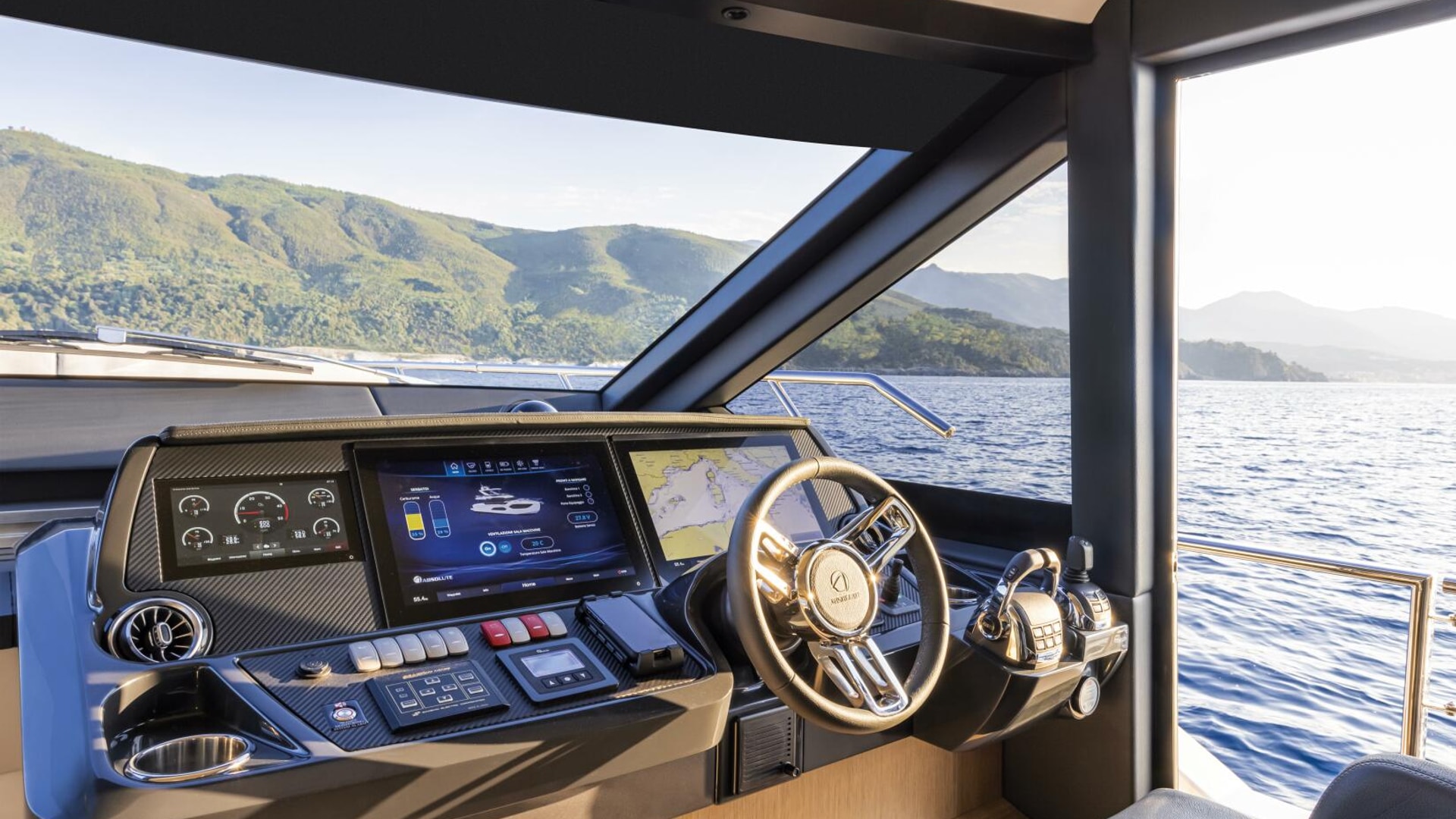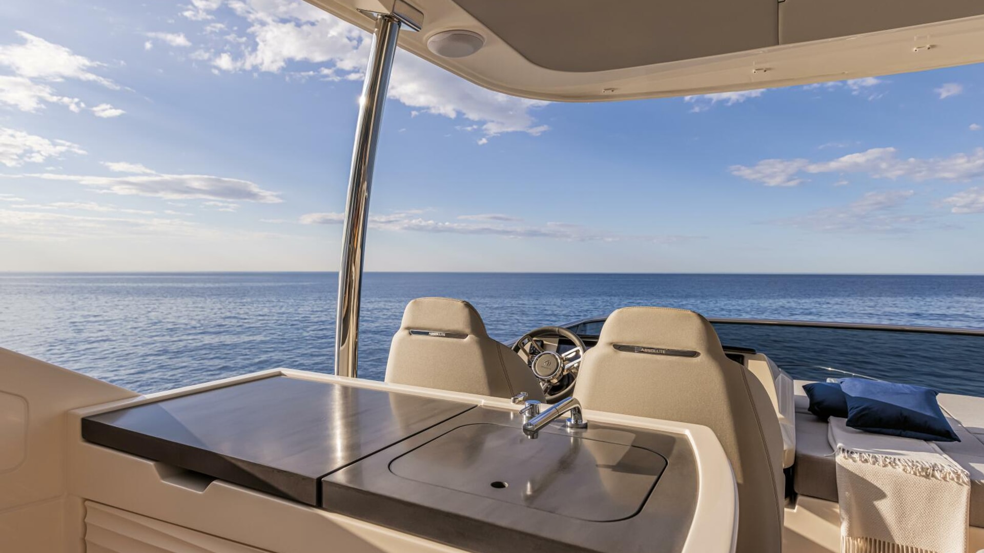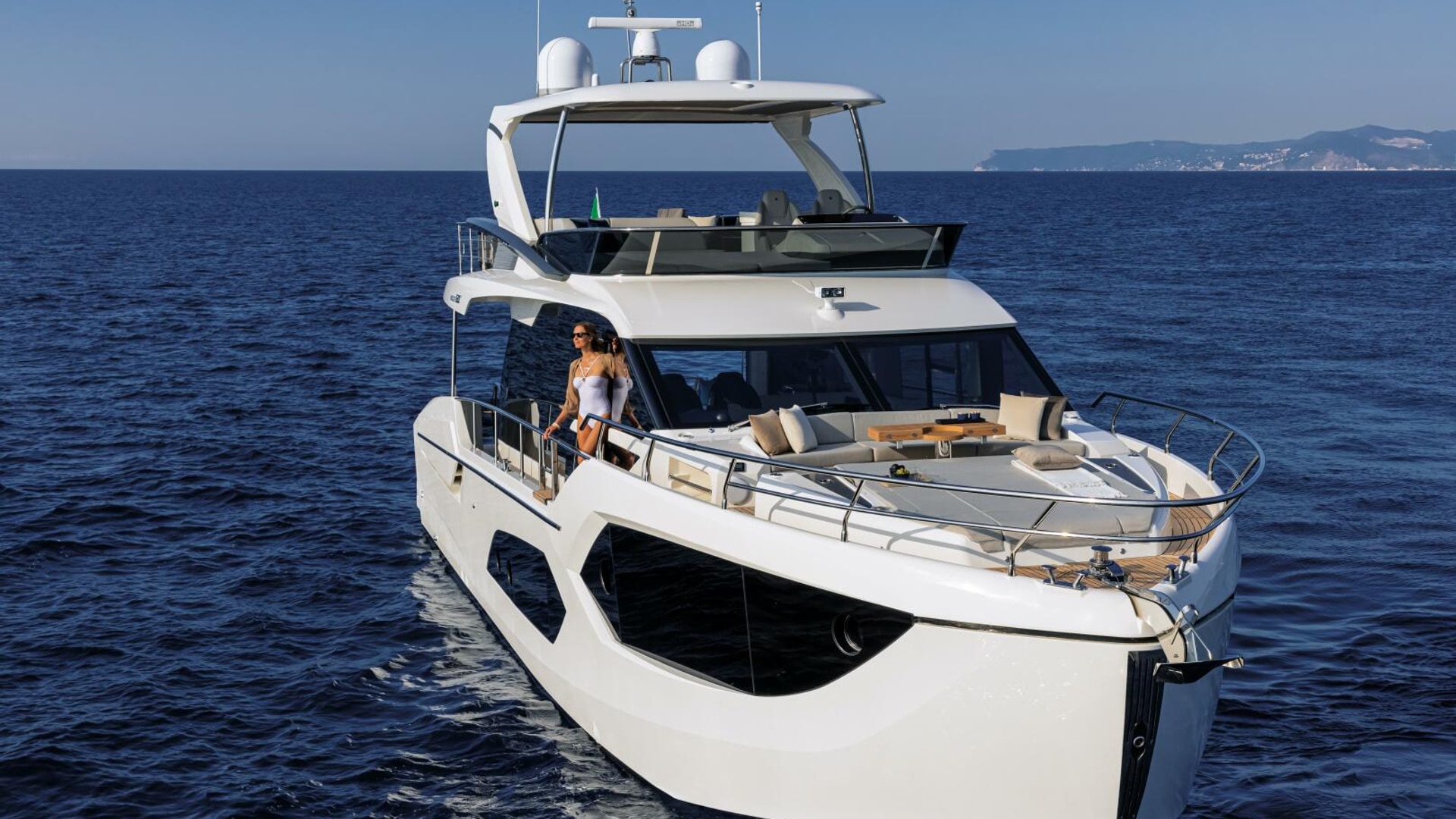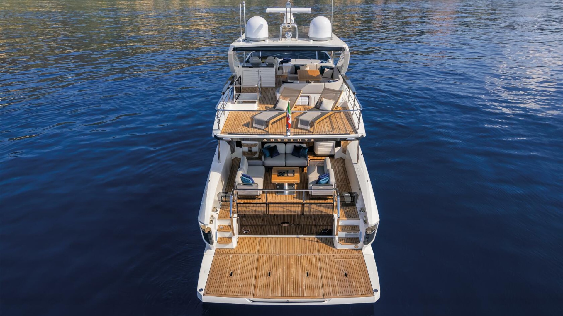 The Absolute 60 Fly redefines yacht design with unparalleled innovation and versatility. Its sleek lines are enhanced by new glazed parapet balustrades offering breathtaking views from the flybridge and aft cockpit. The customizable cockpit, with no fixed elements, features side stairwells for easy access to the swim platform and crew cabin.