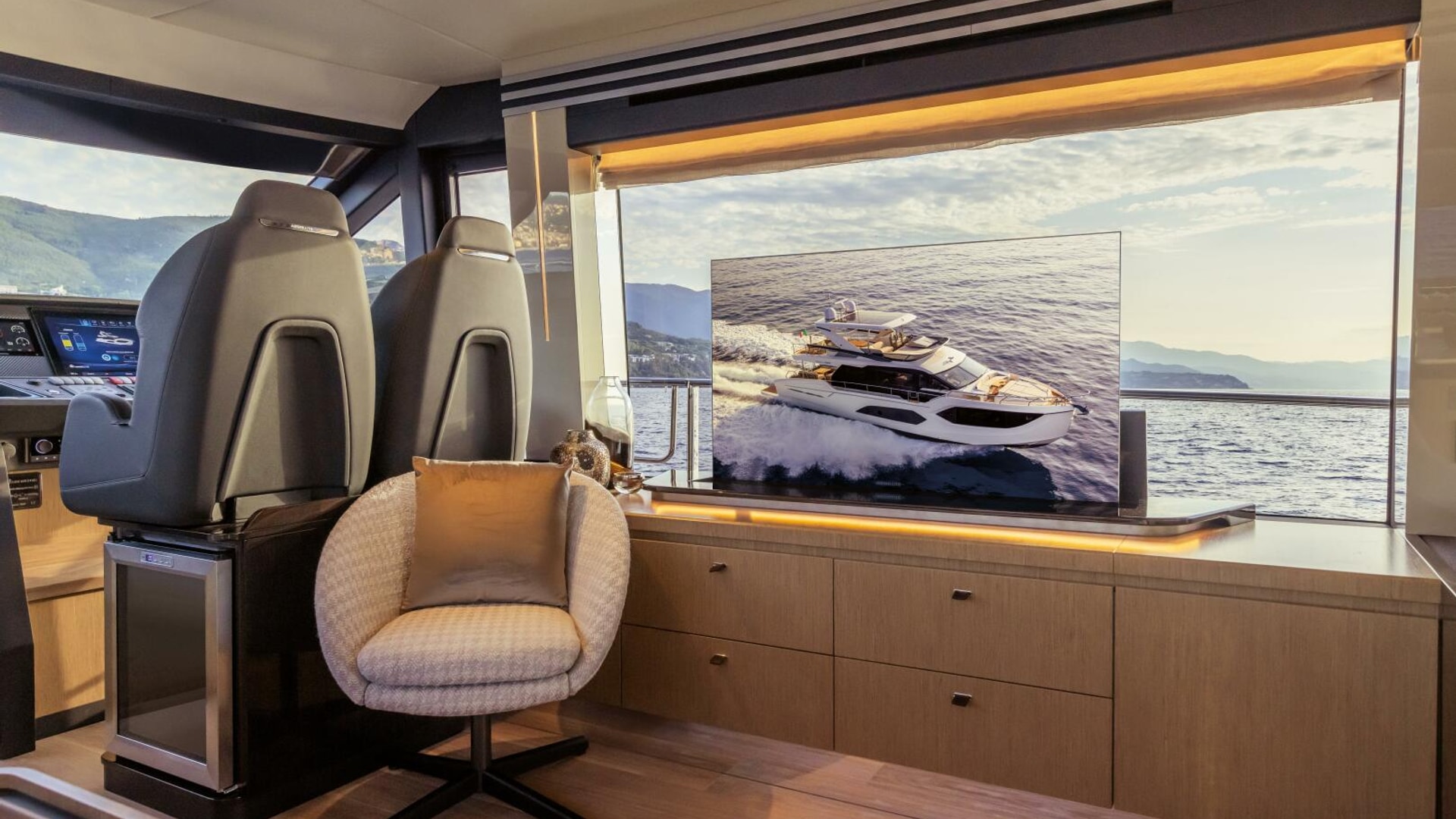 - GPS chart plotter 19" displays (2) in the main deck and 16" display (1) on the flybridge